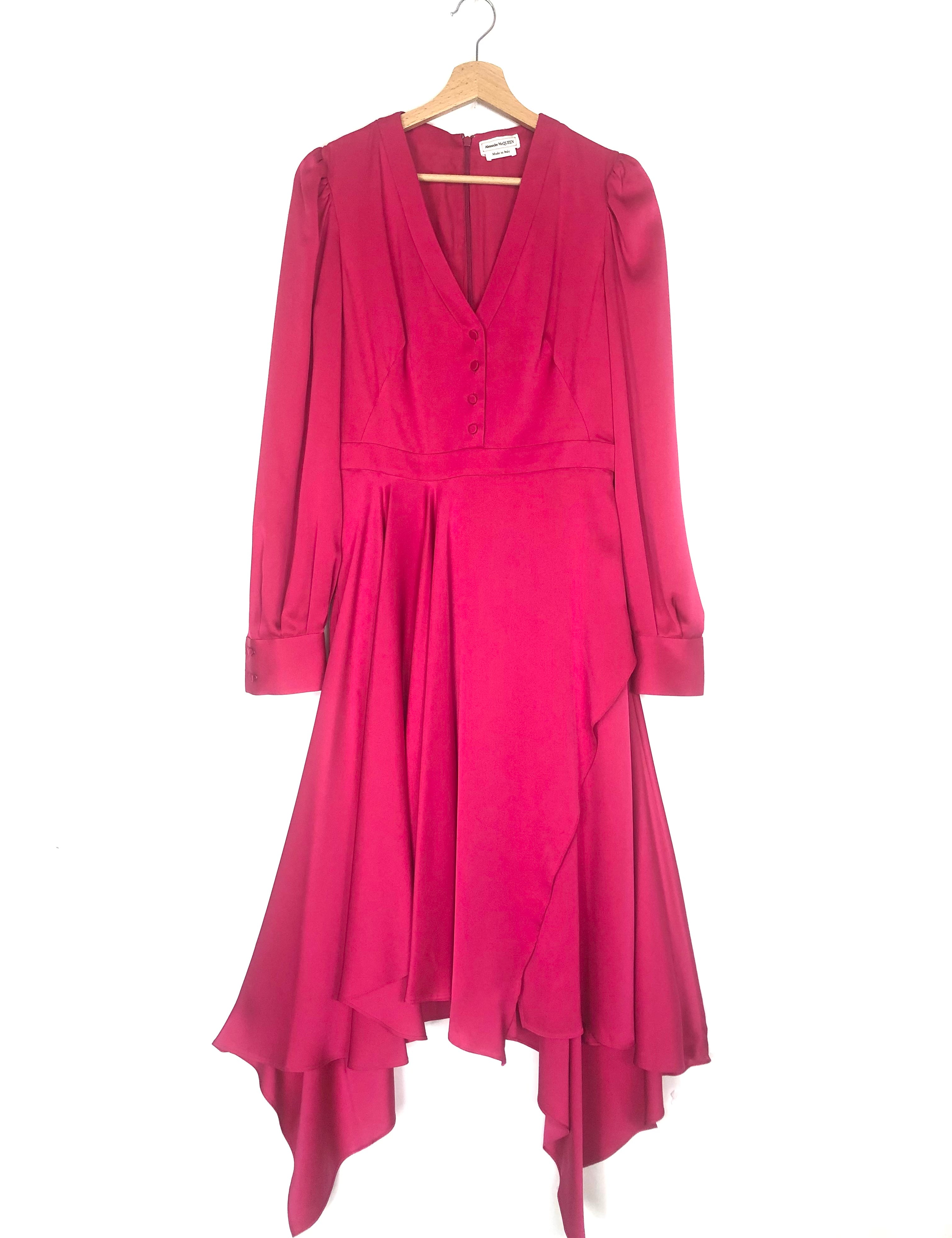 Fuchsia Silk Draped Cocktail Dress / ALEXANDER MCQUEEN - Size IT 42