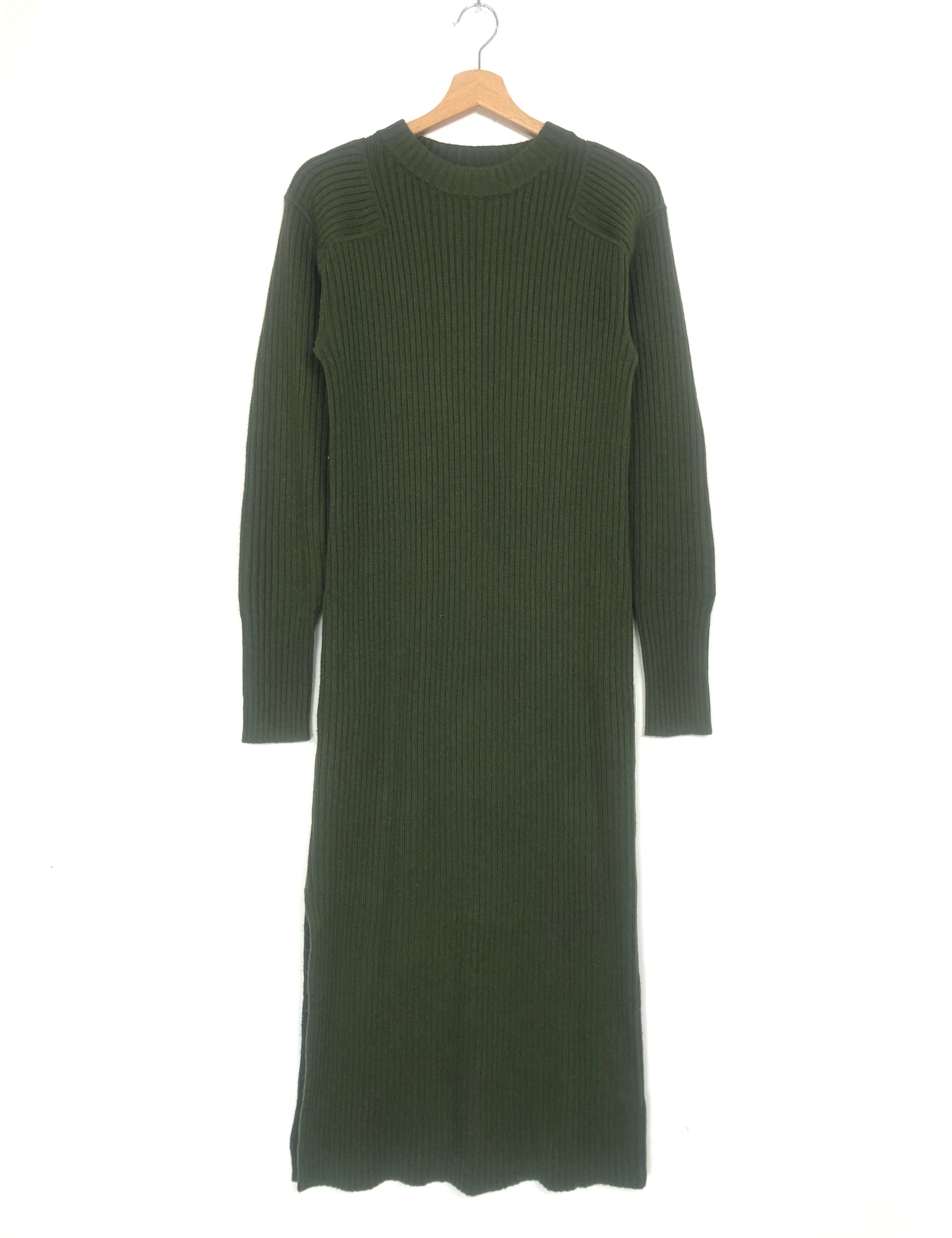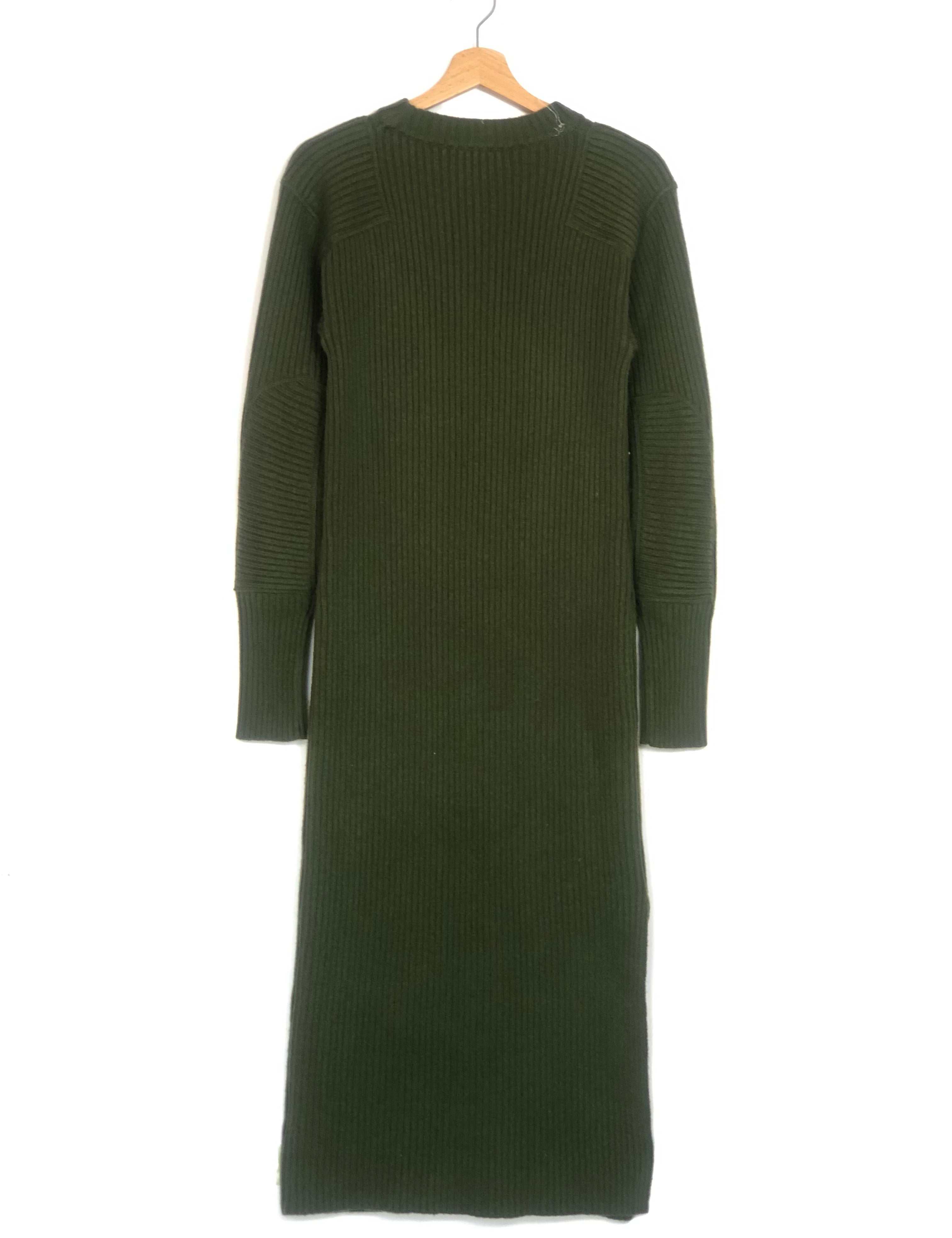 Khaki Wool Blend Knitted Long Sleeves Maxi Dress / ANINE BING - Size S