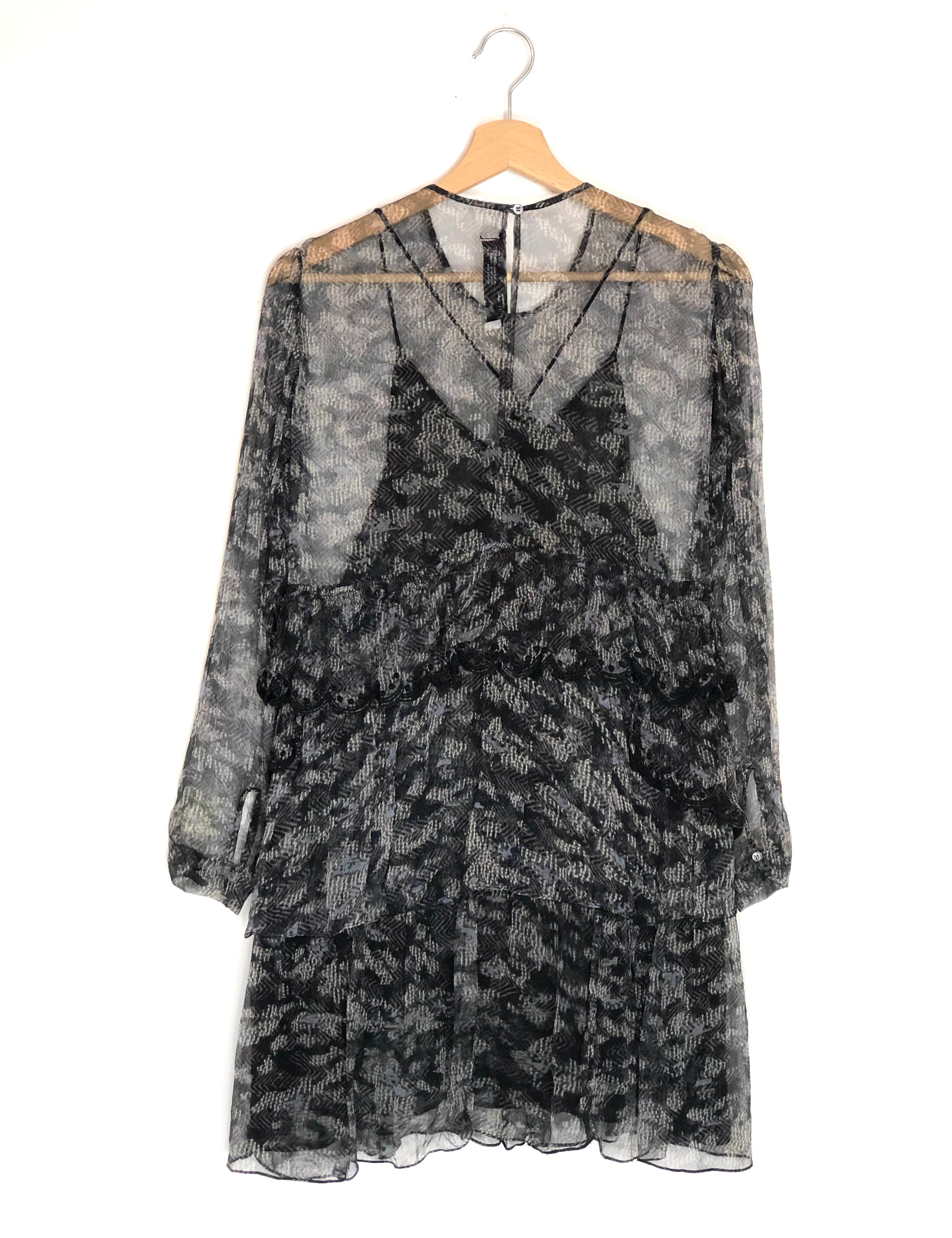 Midnight Blue SOCIETY Pattern Ruffled Mini Dress / IRO - Size 34