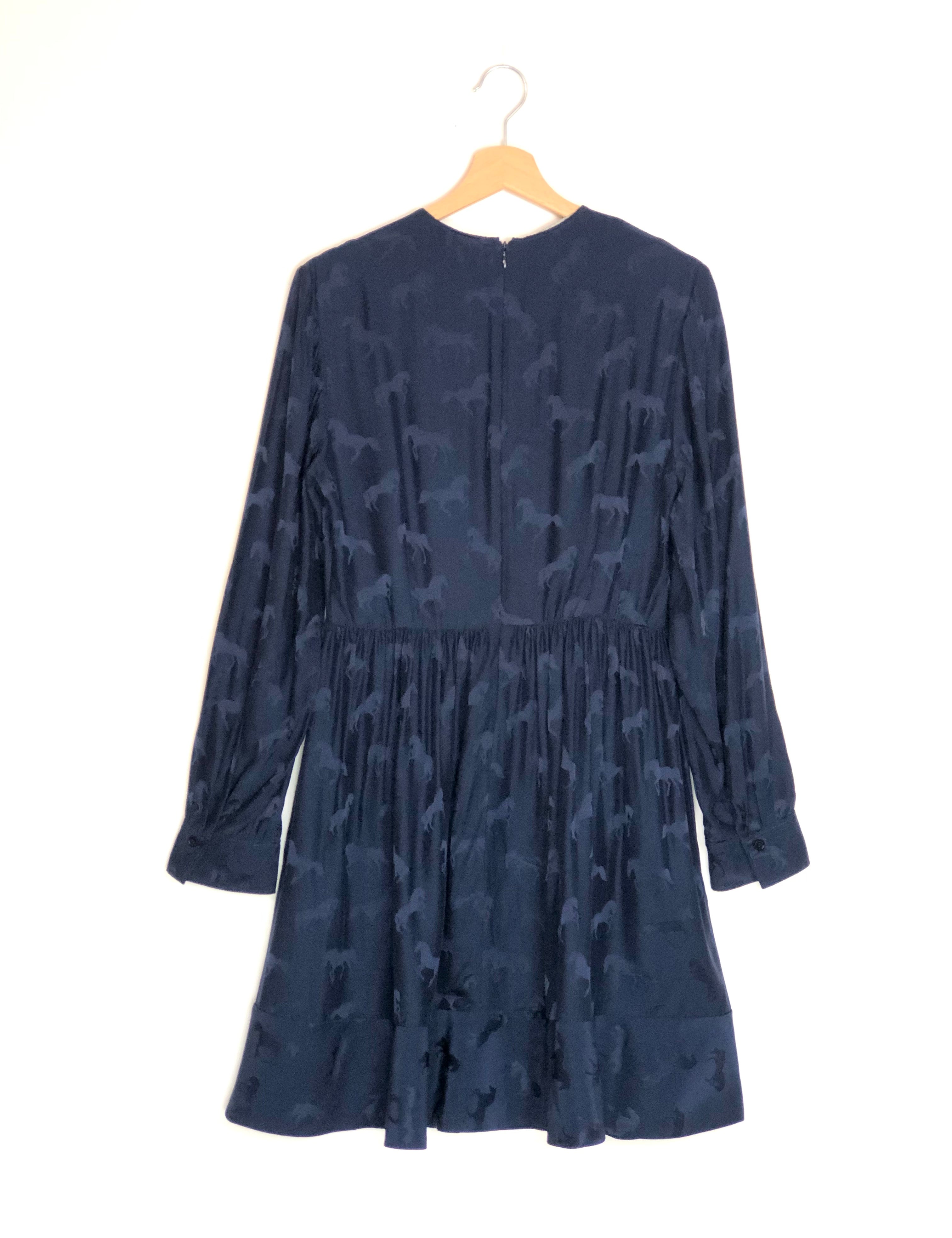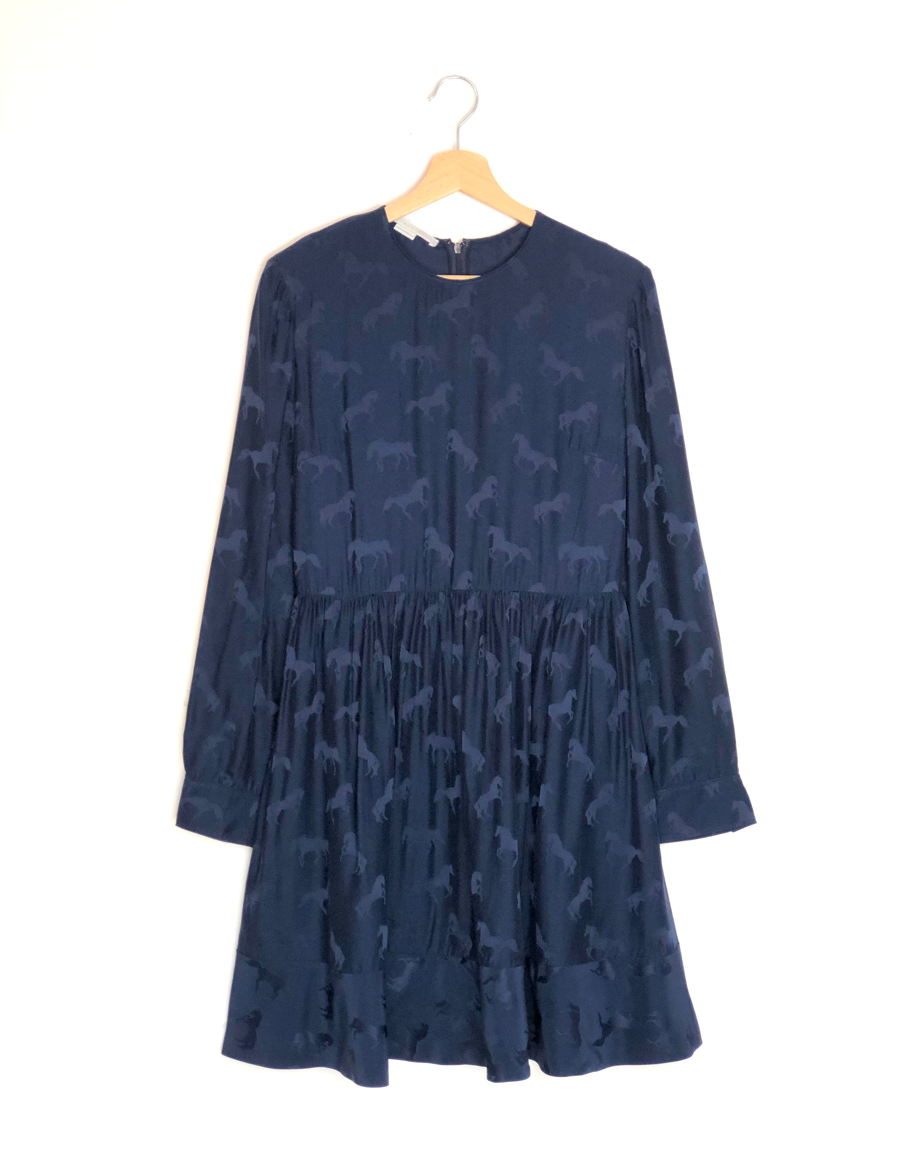 Navy Blue Horse Jacquard Silk Blend Dress / STELLA MCCARTNEY - Size 40