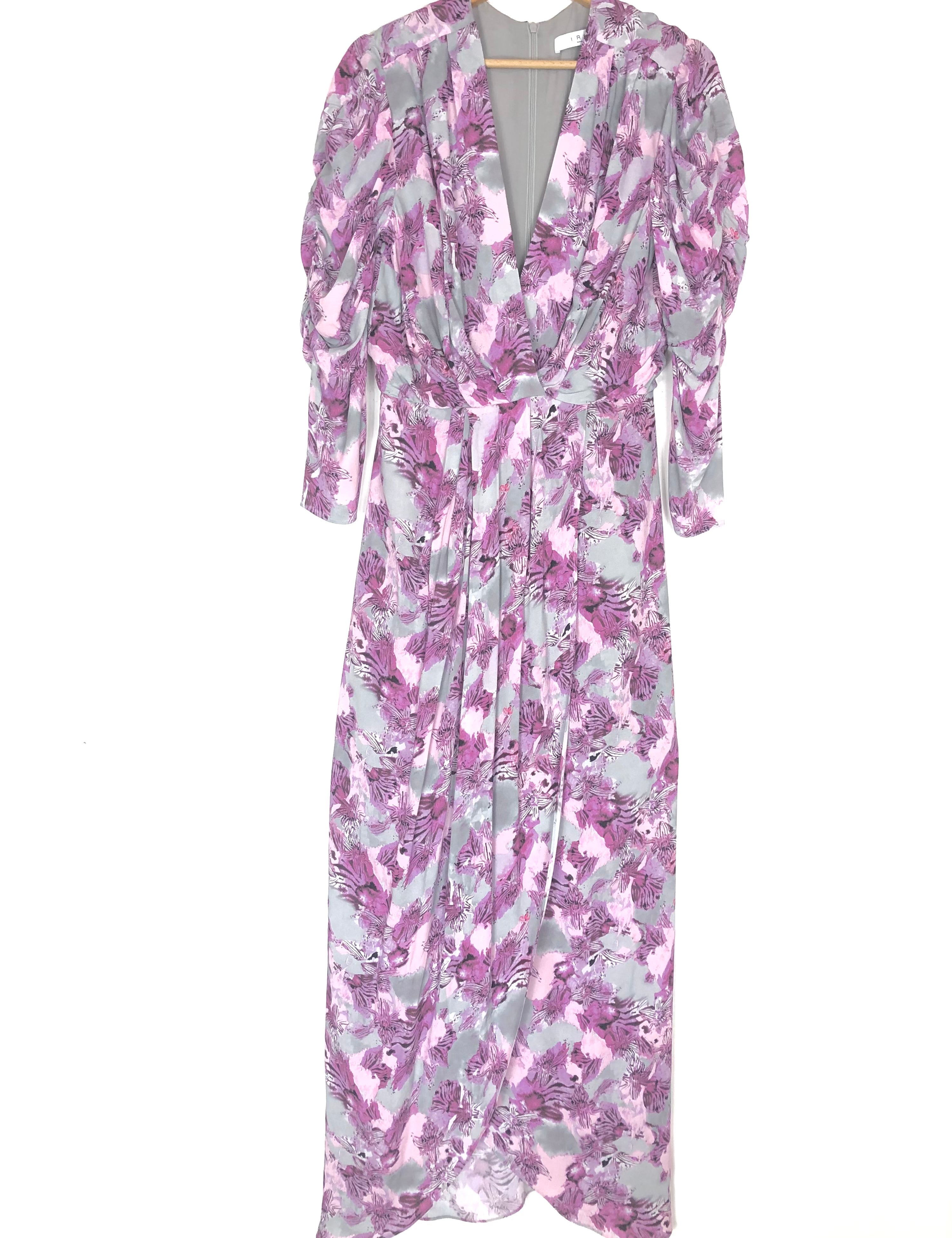 Purple/Grey Printed V-neck Crepe Maxi Dress / IRO - Size 36