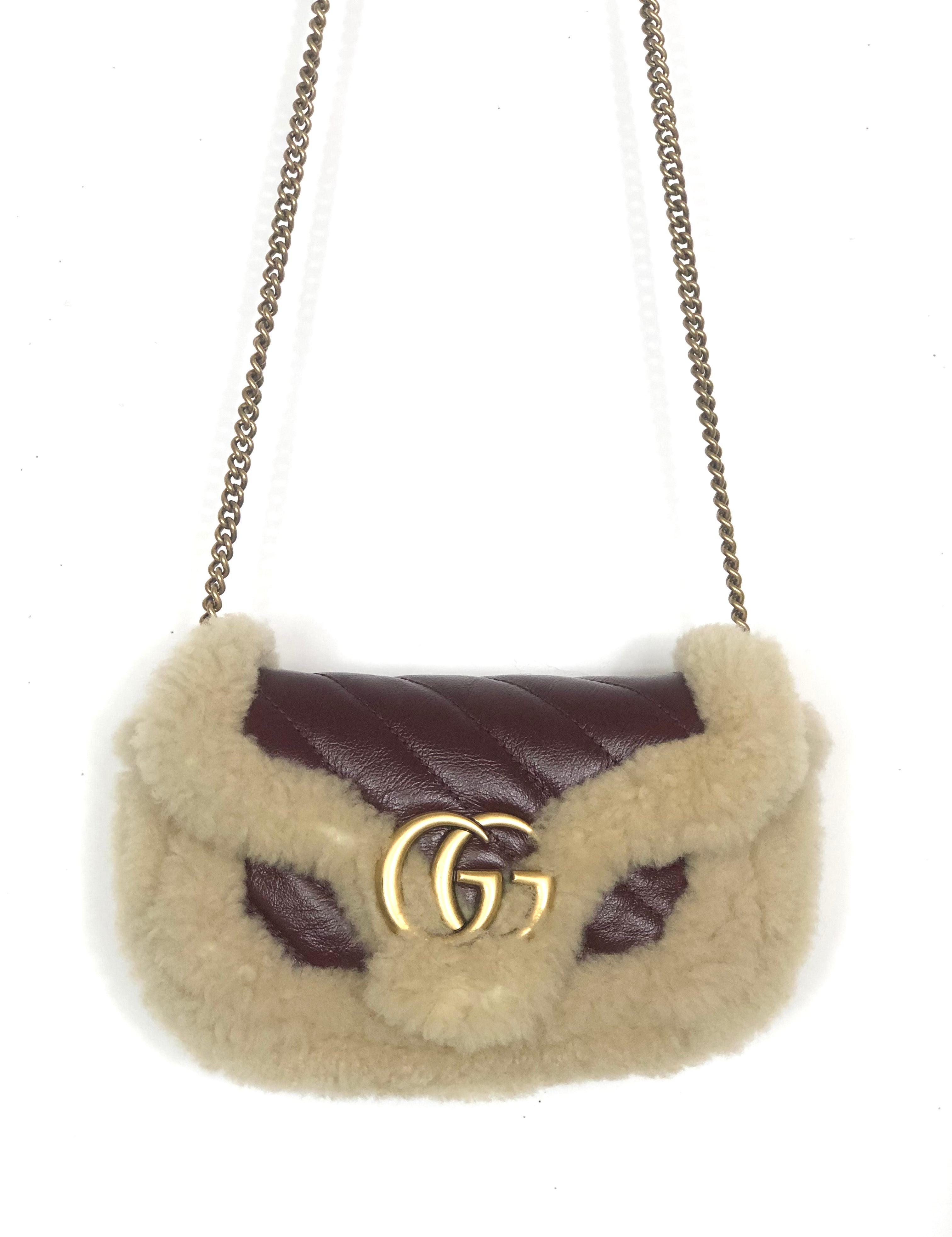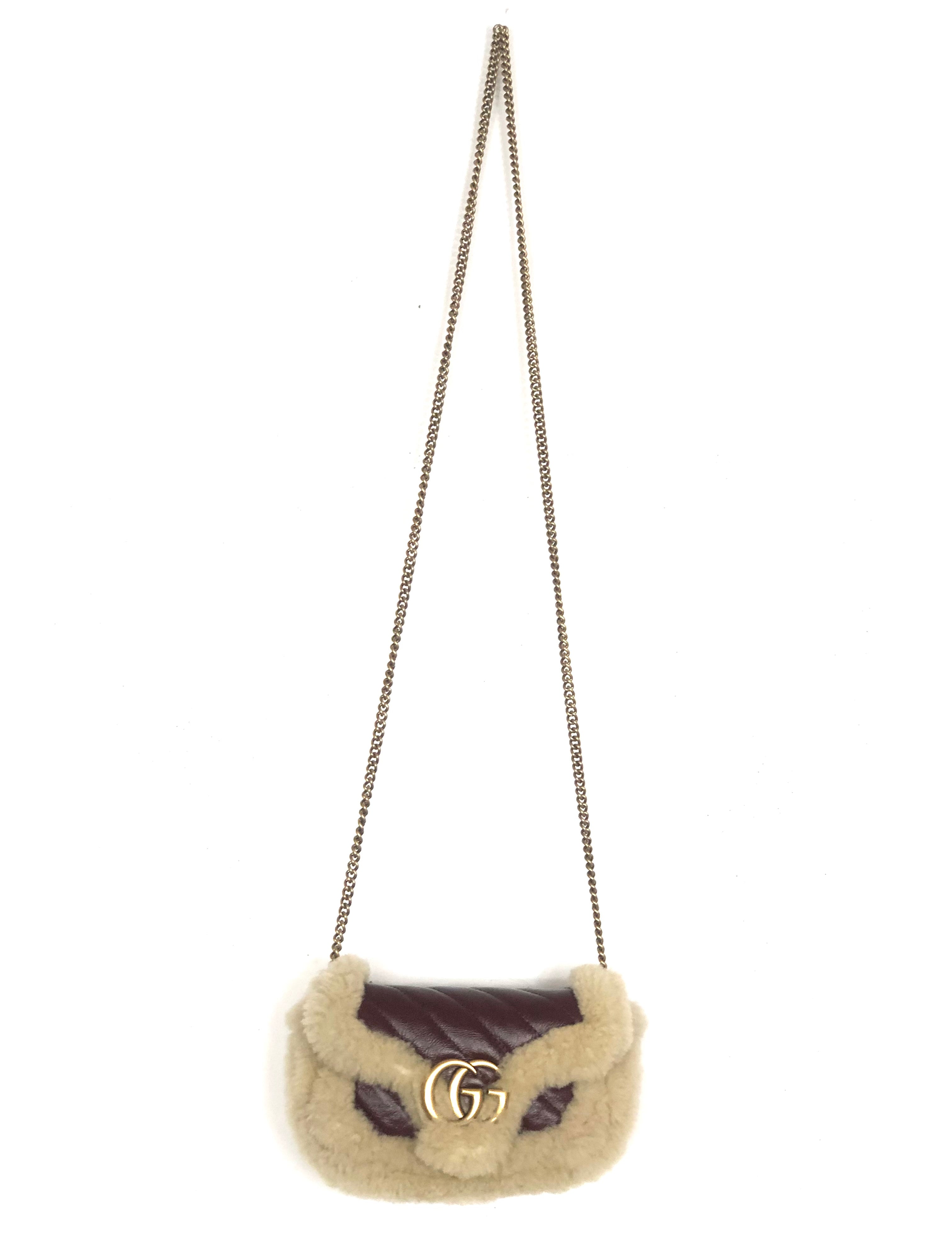 Burgundy GG MARMONT Shearling Leather Super Mini Bag / GUCCI - One Size
