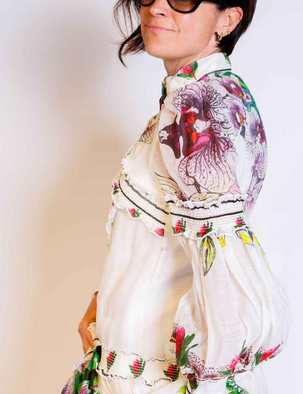 Pink and Blue Embroidered Shirt / MONOKI - One Size