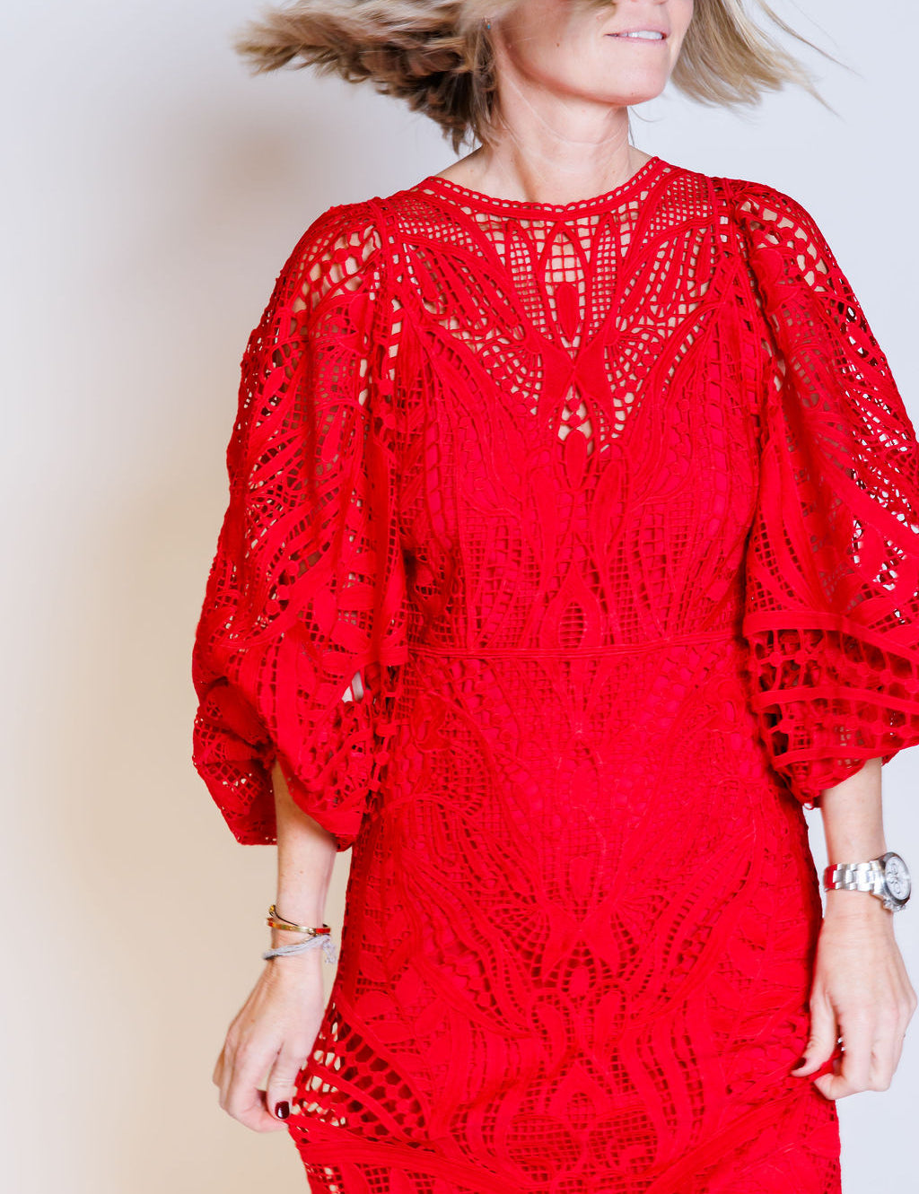 Nature Red Guipure Lace Maxi Dress / FARM RIO - Size XS