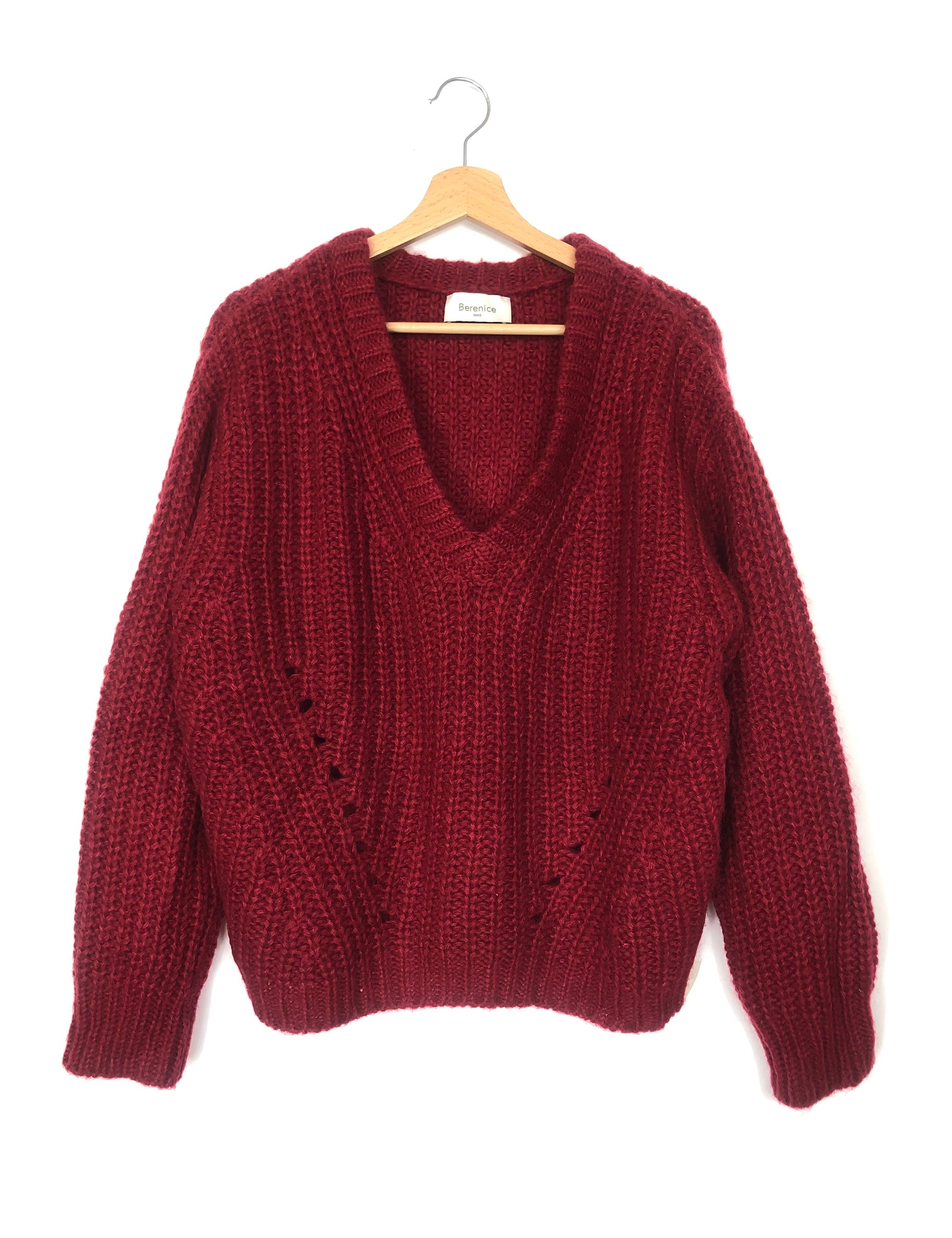 Red ALABAMA Wool-blend Knitted V-neck Jumper / BERENICE - Size 1
