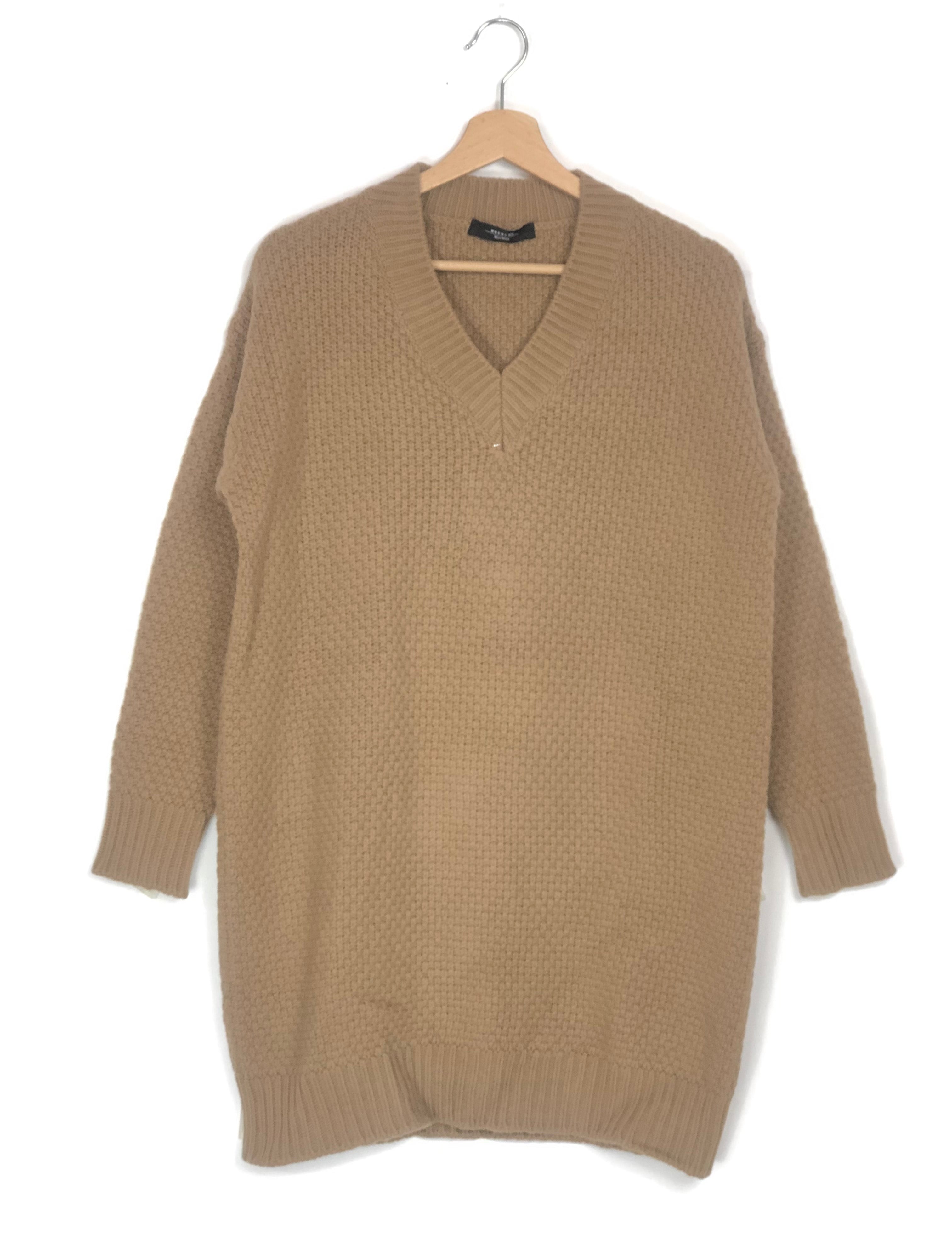 Sand PANIA Wool Knitted V-neck Jumper / WEEKEND MAX MARA - Size XS