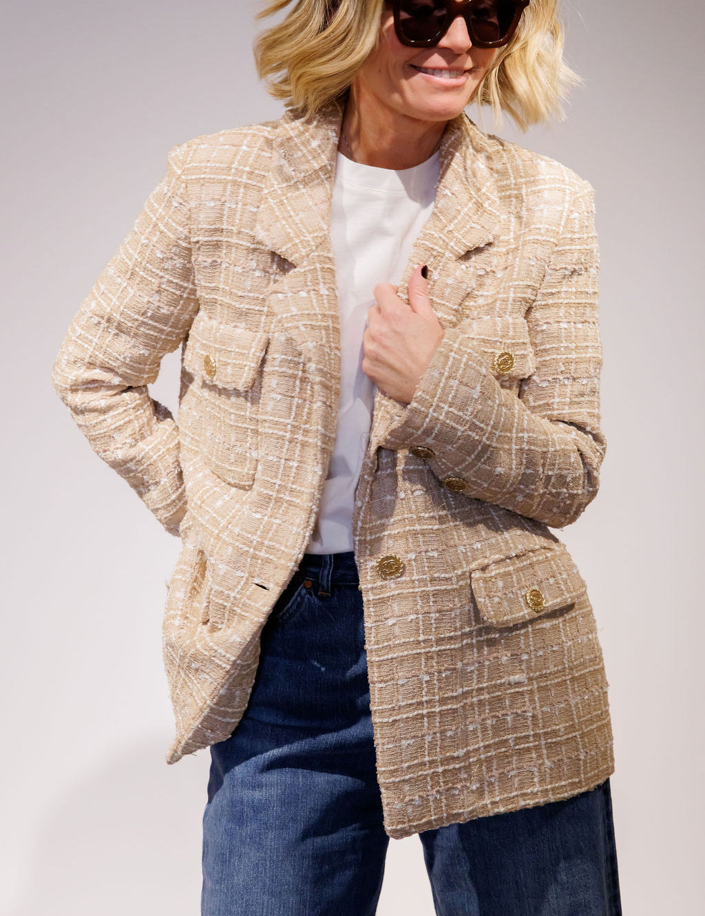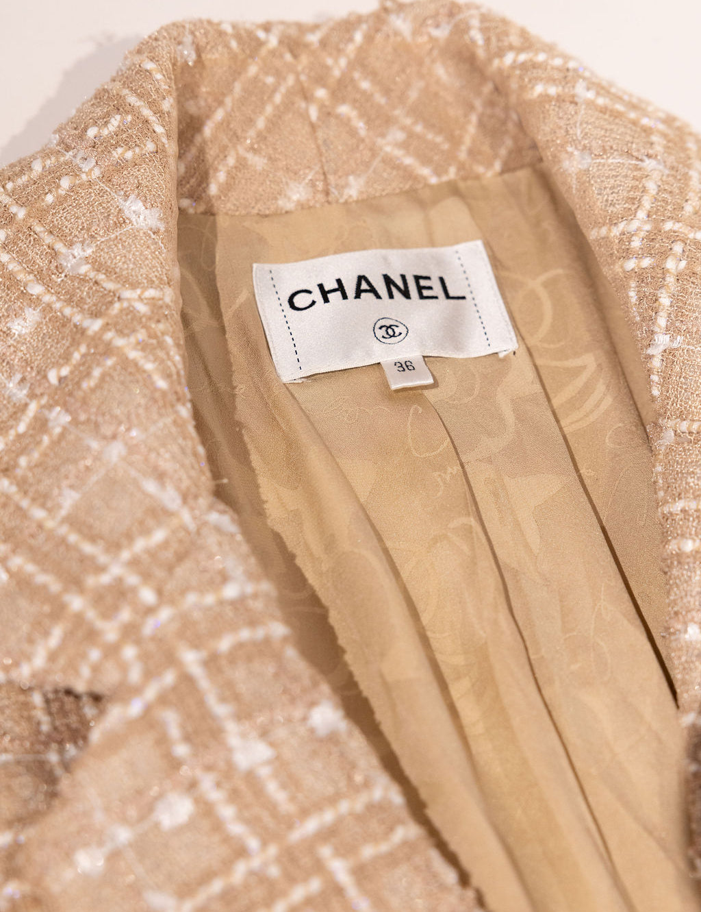 Beige and White BY THE SEA CC Logo Buttons Tweed Blazer / CHANEL - Size 36