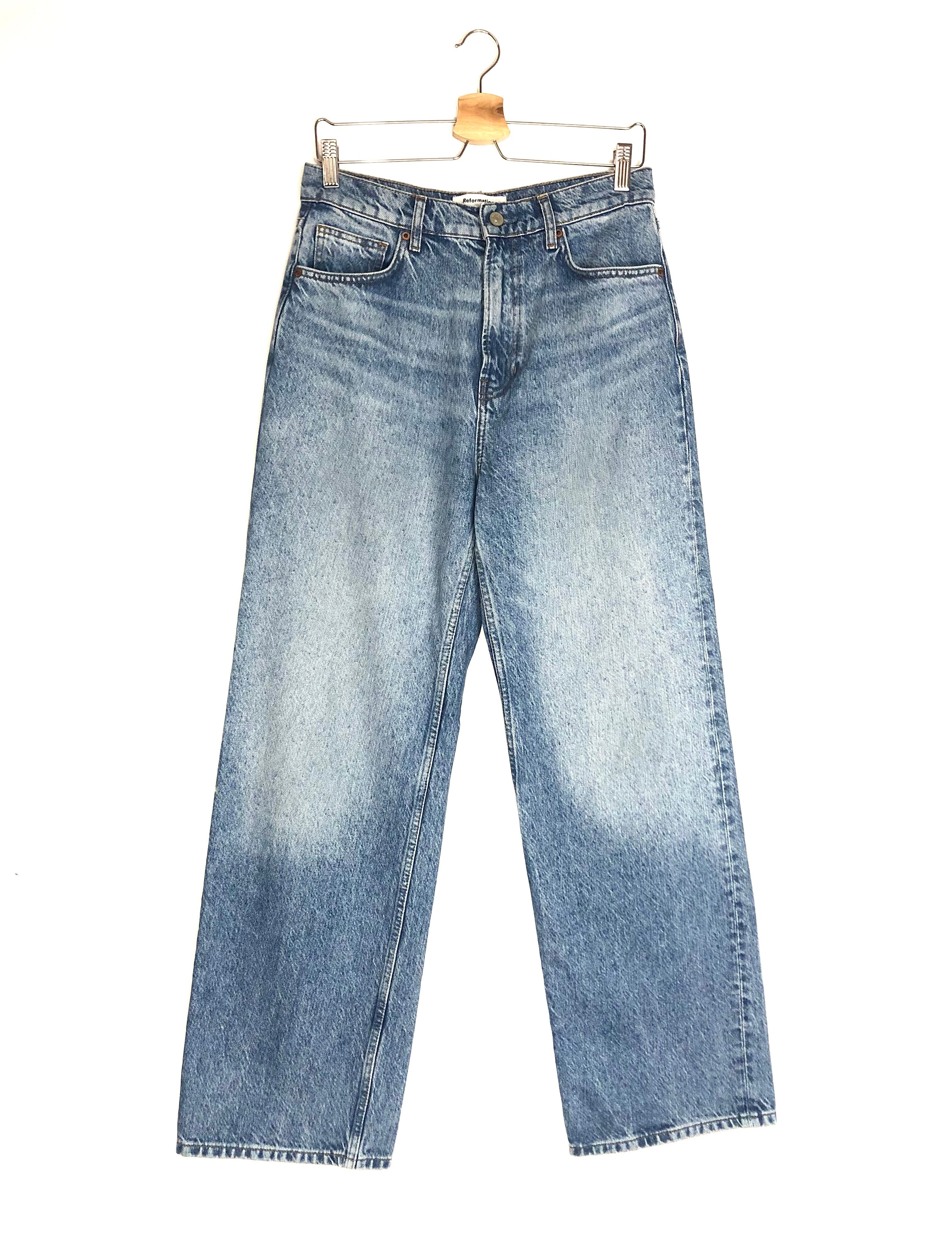 Blue Denim Cary High Rise Slouchy Wide Legs Jeans / REFORMATION - Size 28