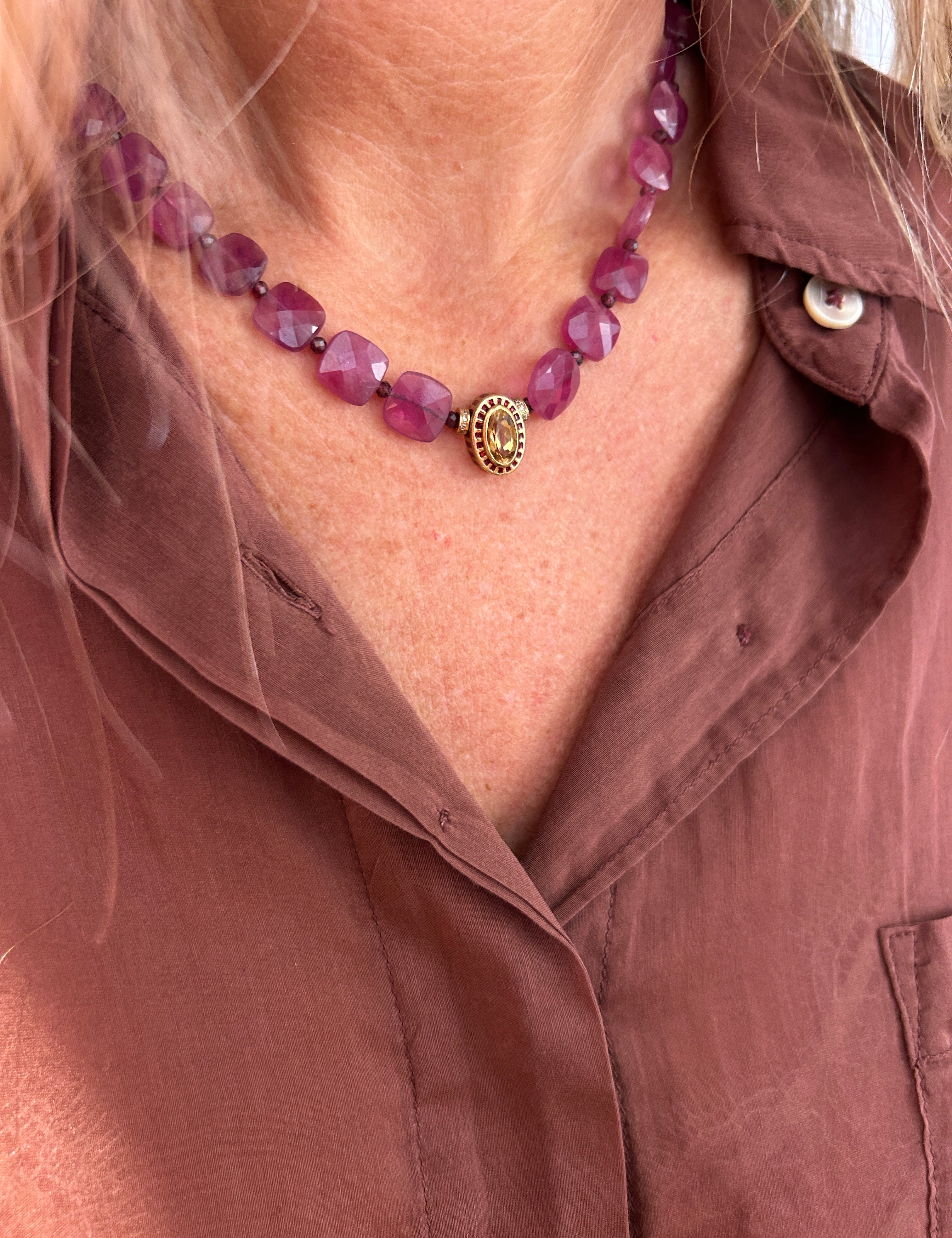 Ruby and Grenat HENRI Necklace with Citrine Pendant / BOHEMIAN RHAPSODIE