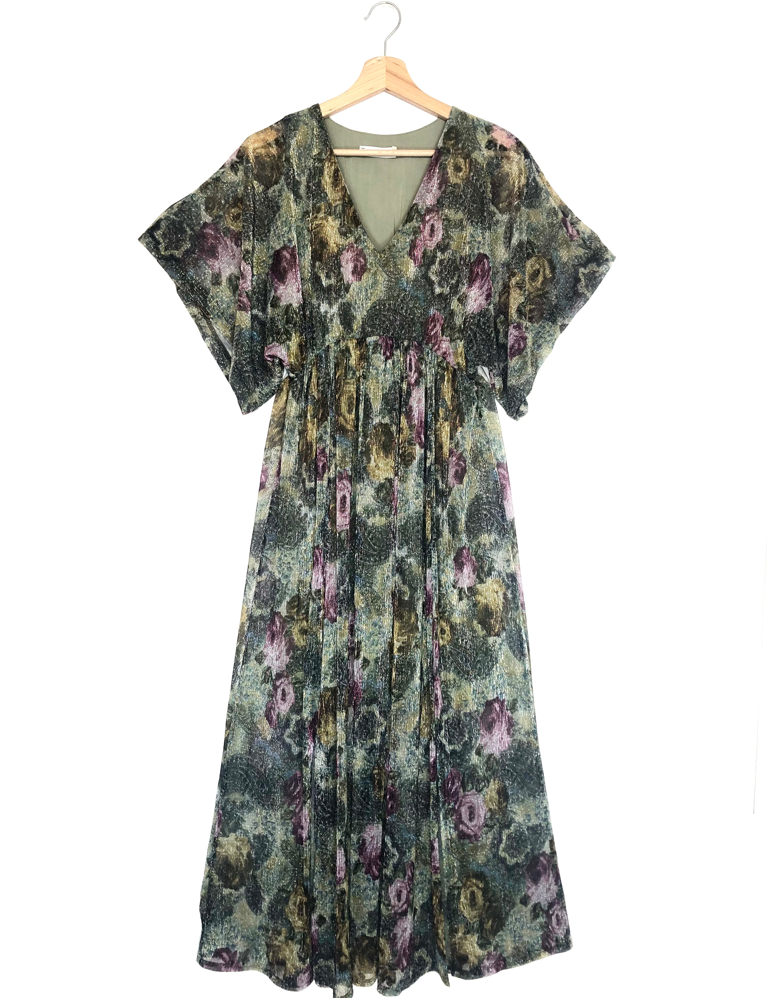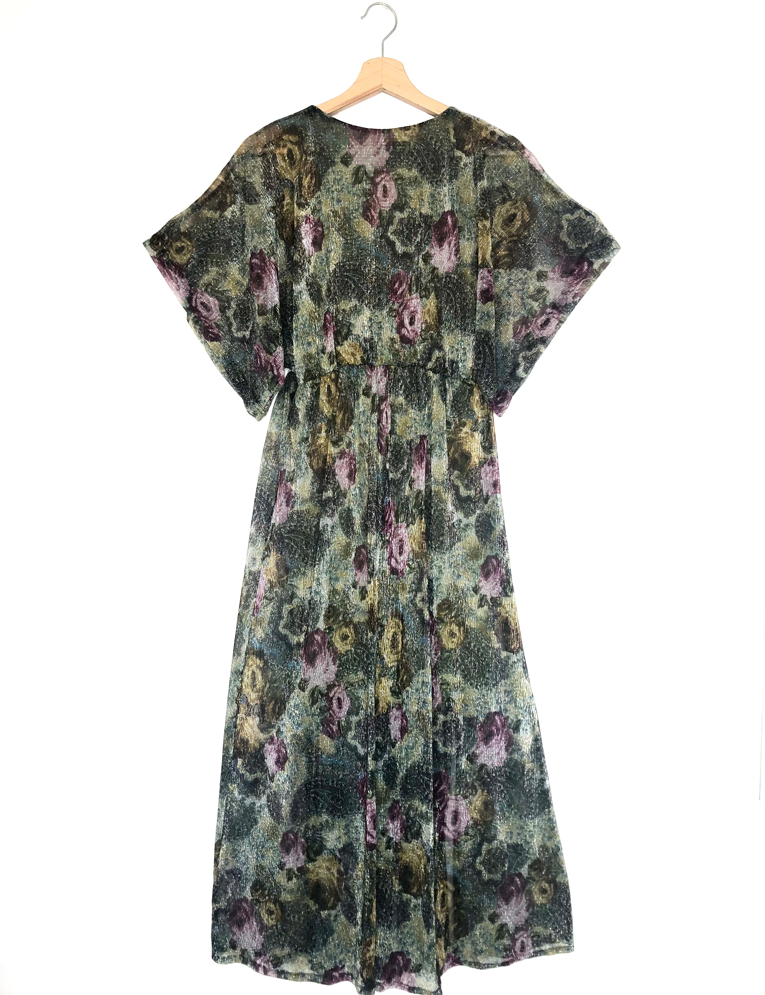 Green Floral Lurex Midi Dress / Vintage Love - One Size