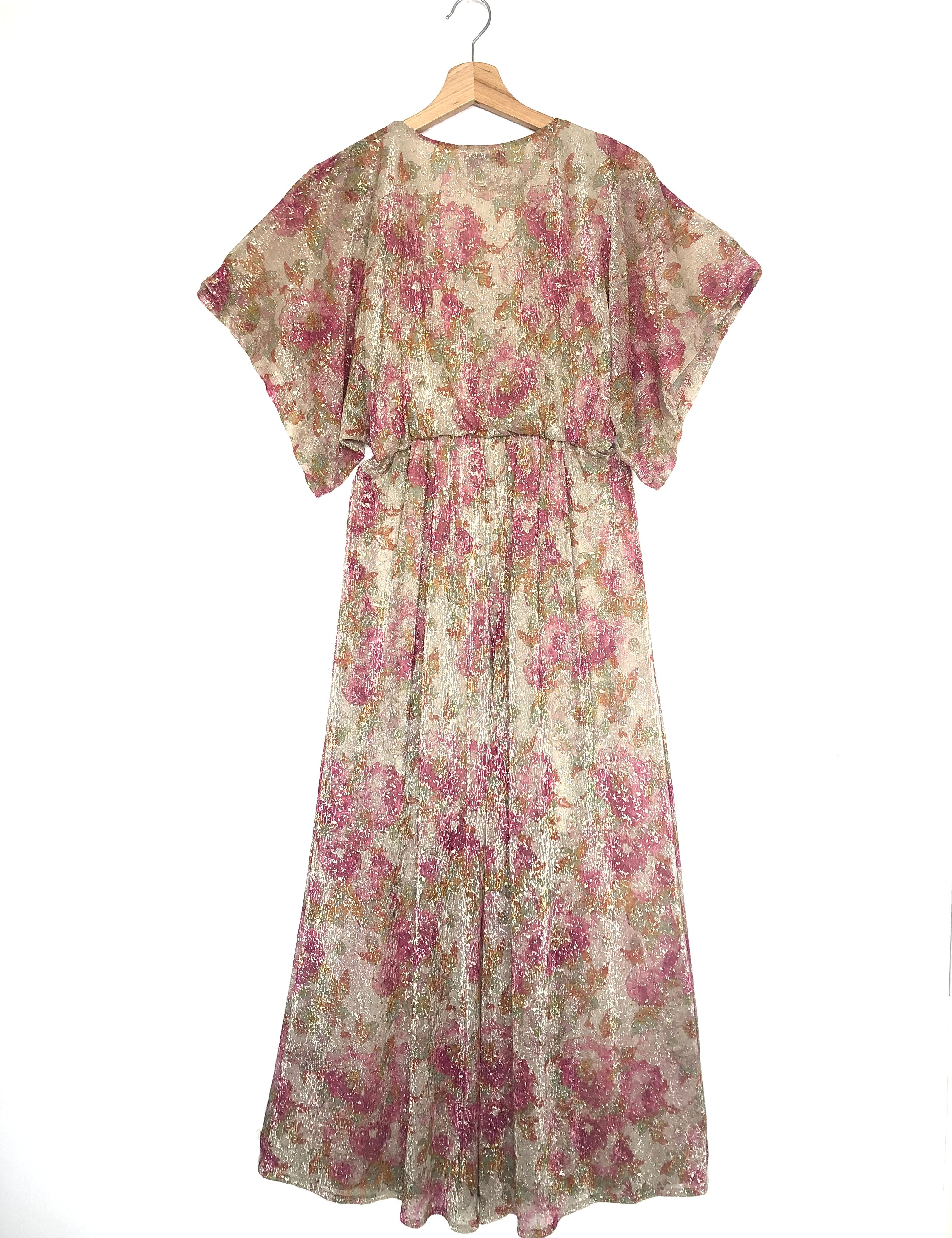 Pink Floral Lurex Midi Dress / VINTAGE LOVE - One Size