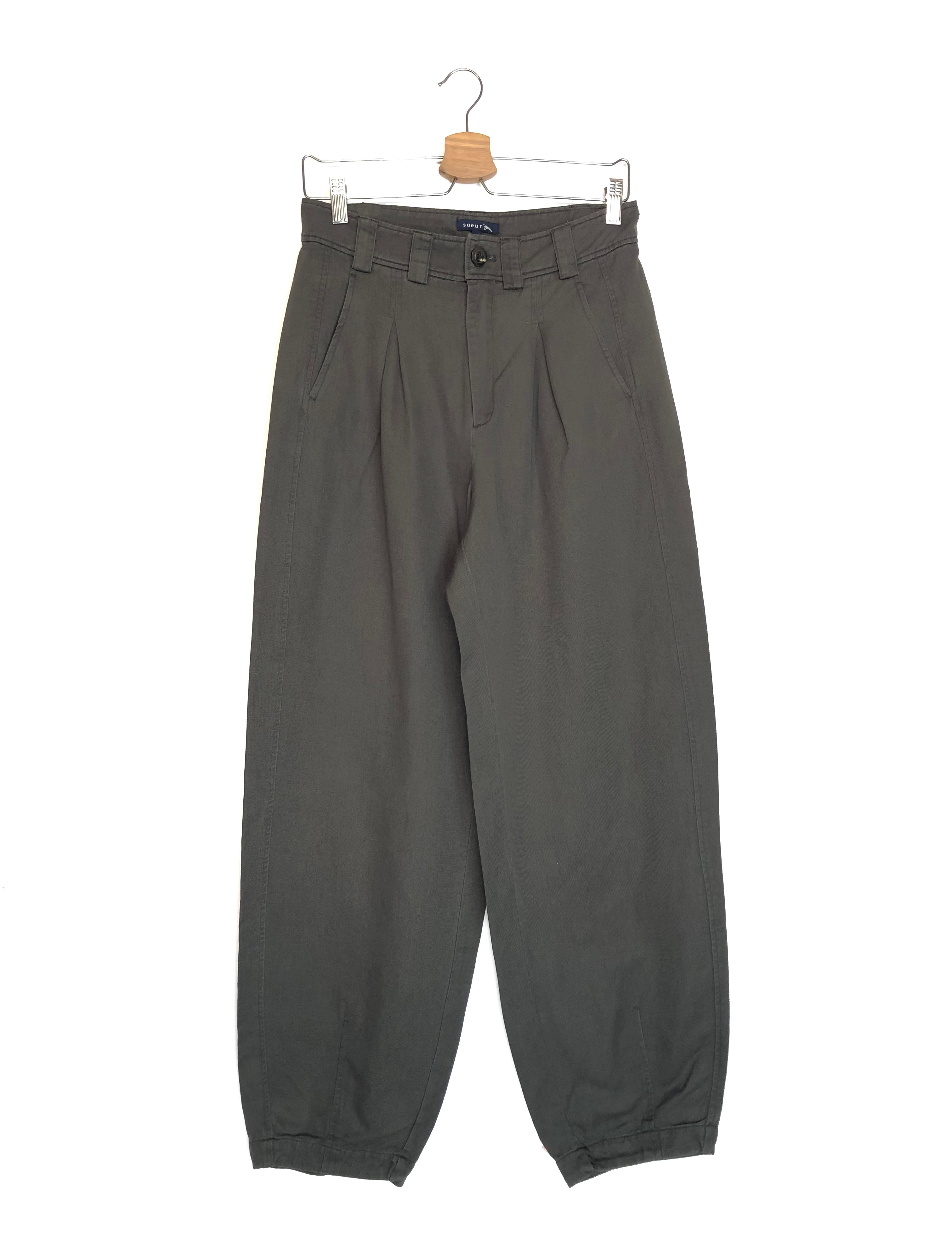 Dark Khaki TIMON Pleated Organic Cotton Trousers / SOEUR - Size 34