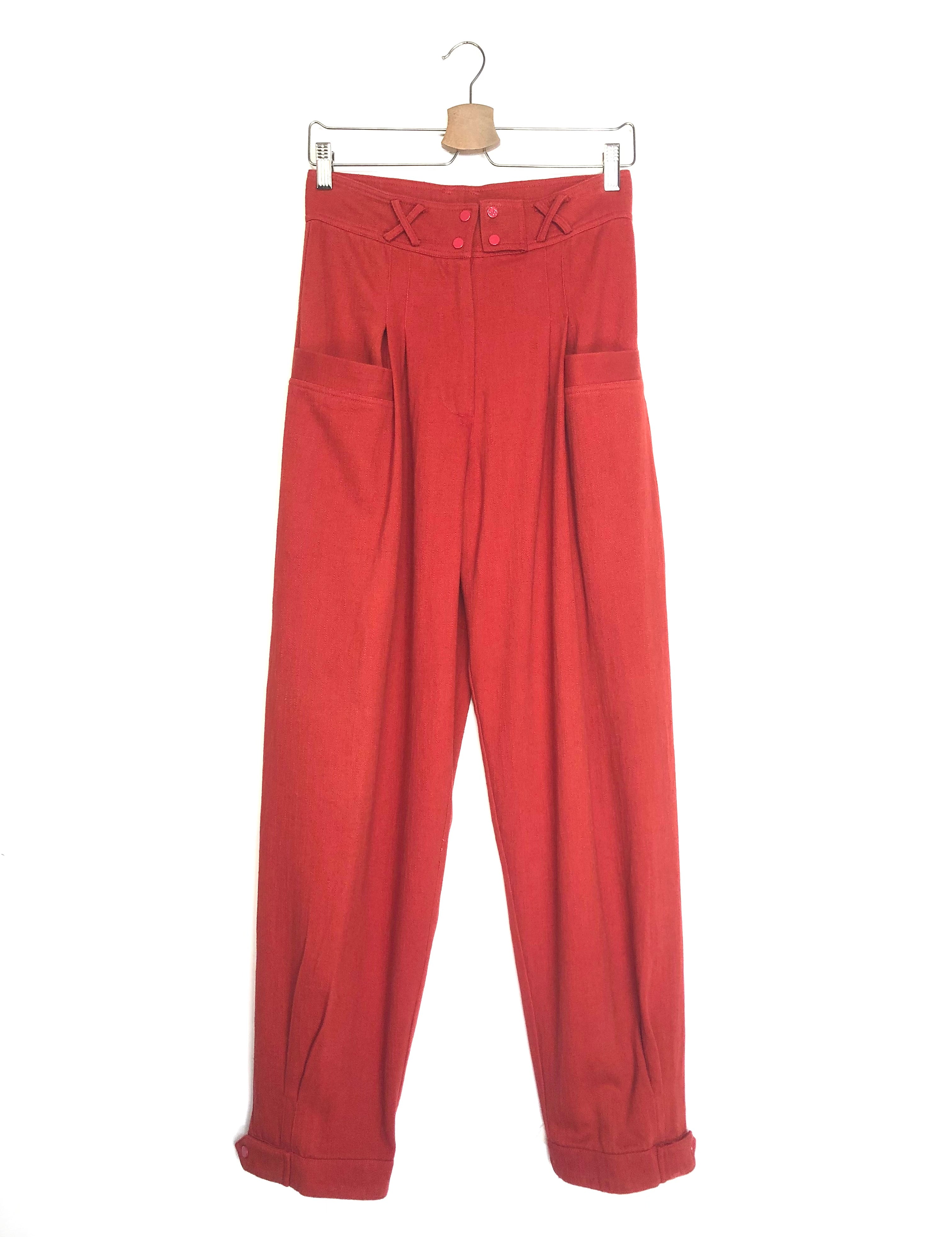 Red ANNE MARIE High Waist Cotton Pants / LAURENCE BRAS - Size 36