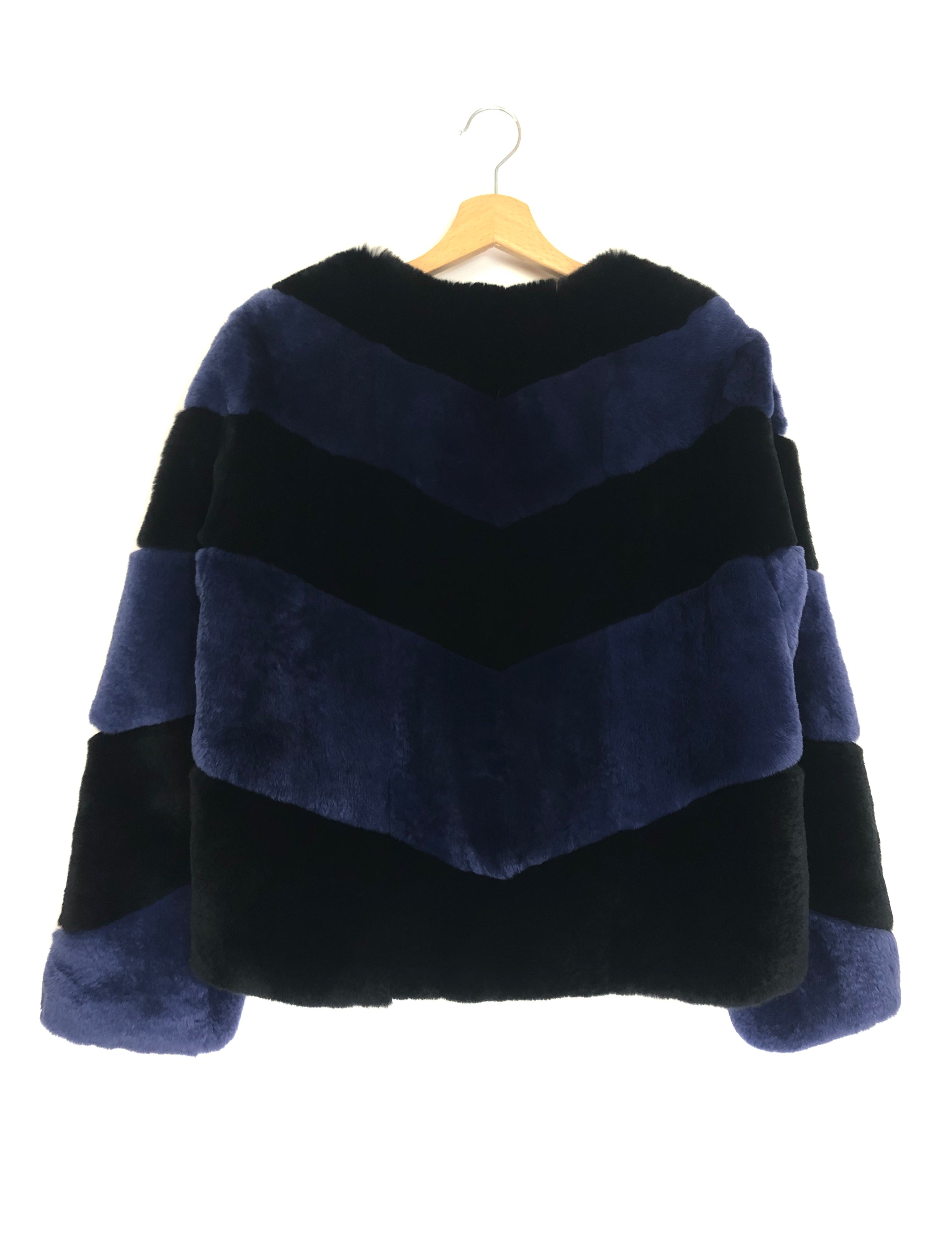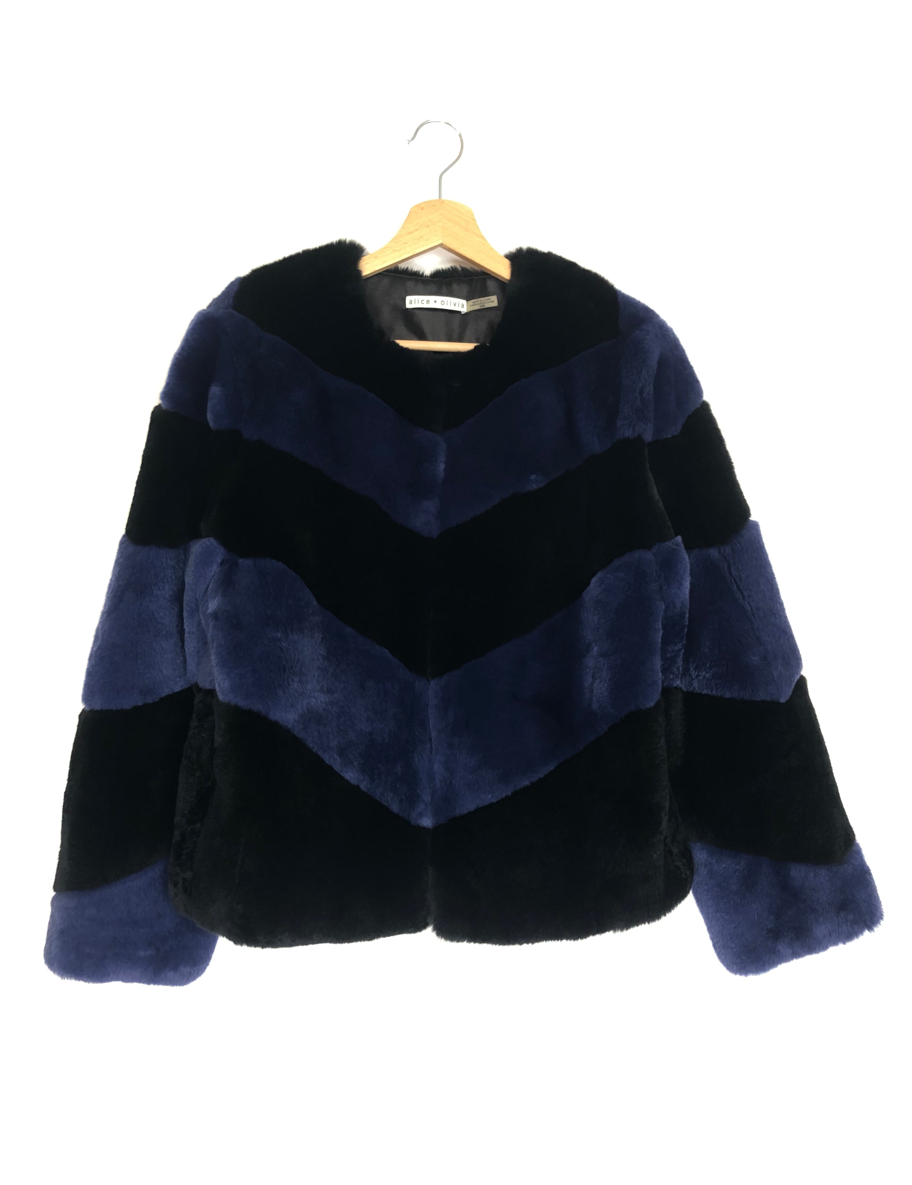 Black and Blue Fully Lined Rabbit Fur Coat / ALICE + OLIVIA - Size S