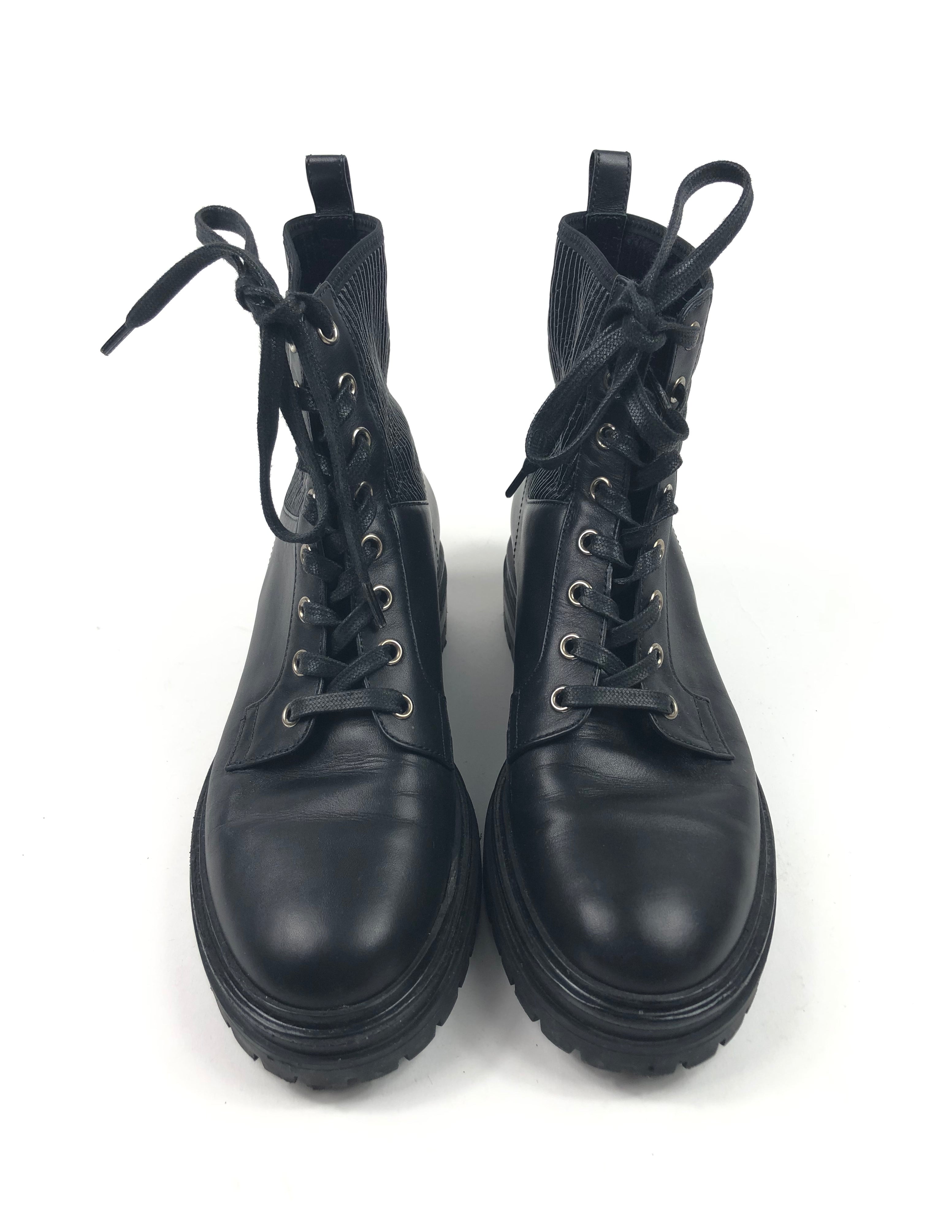 Black MARTIS Leather Combat Shoes / GIANVITTO ROSSI - Size 38.5