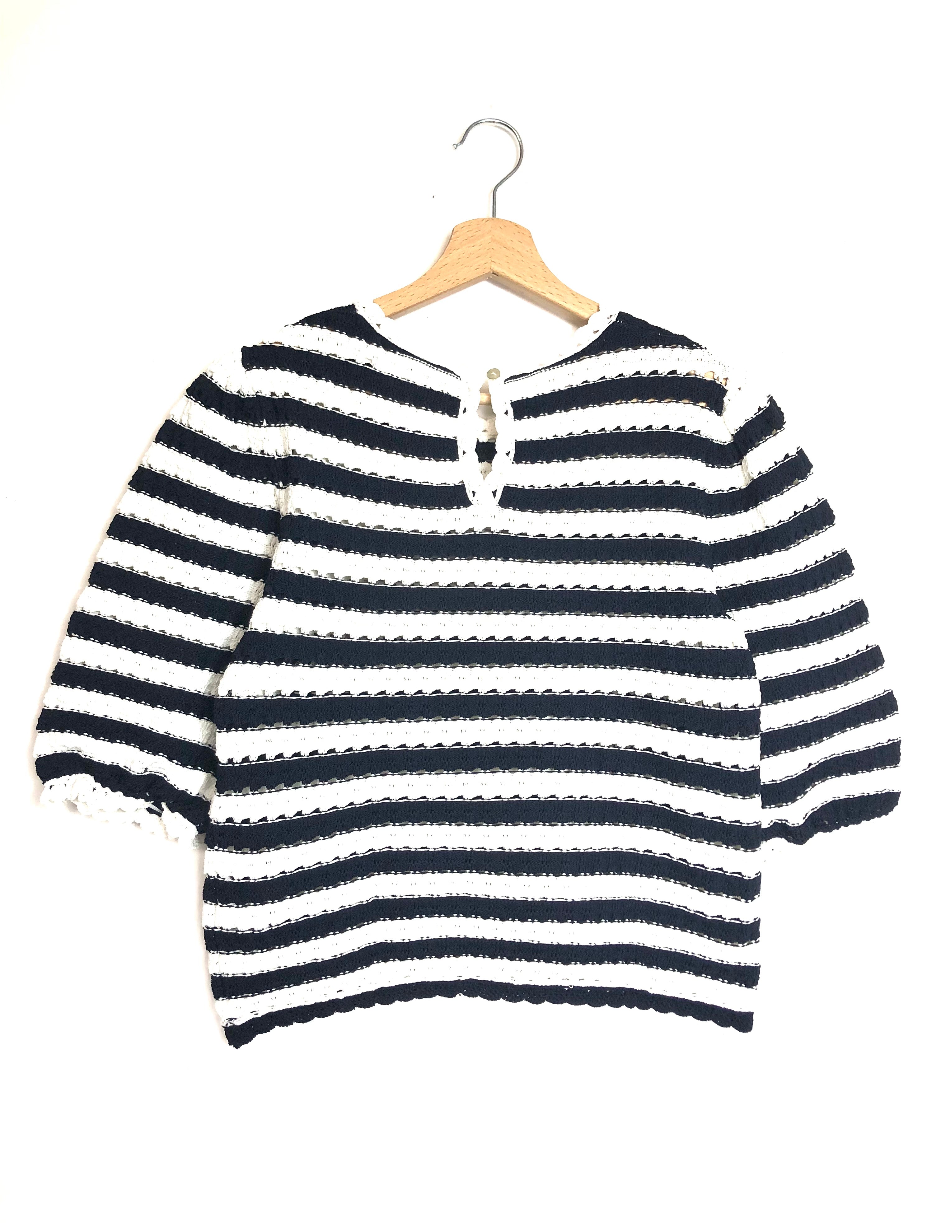Black and White Striped Crochet Effect Top / MAJE - Size 1