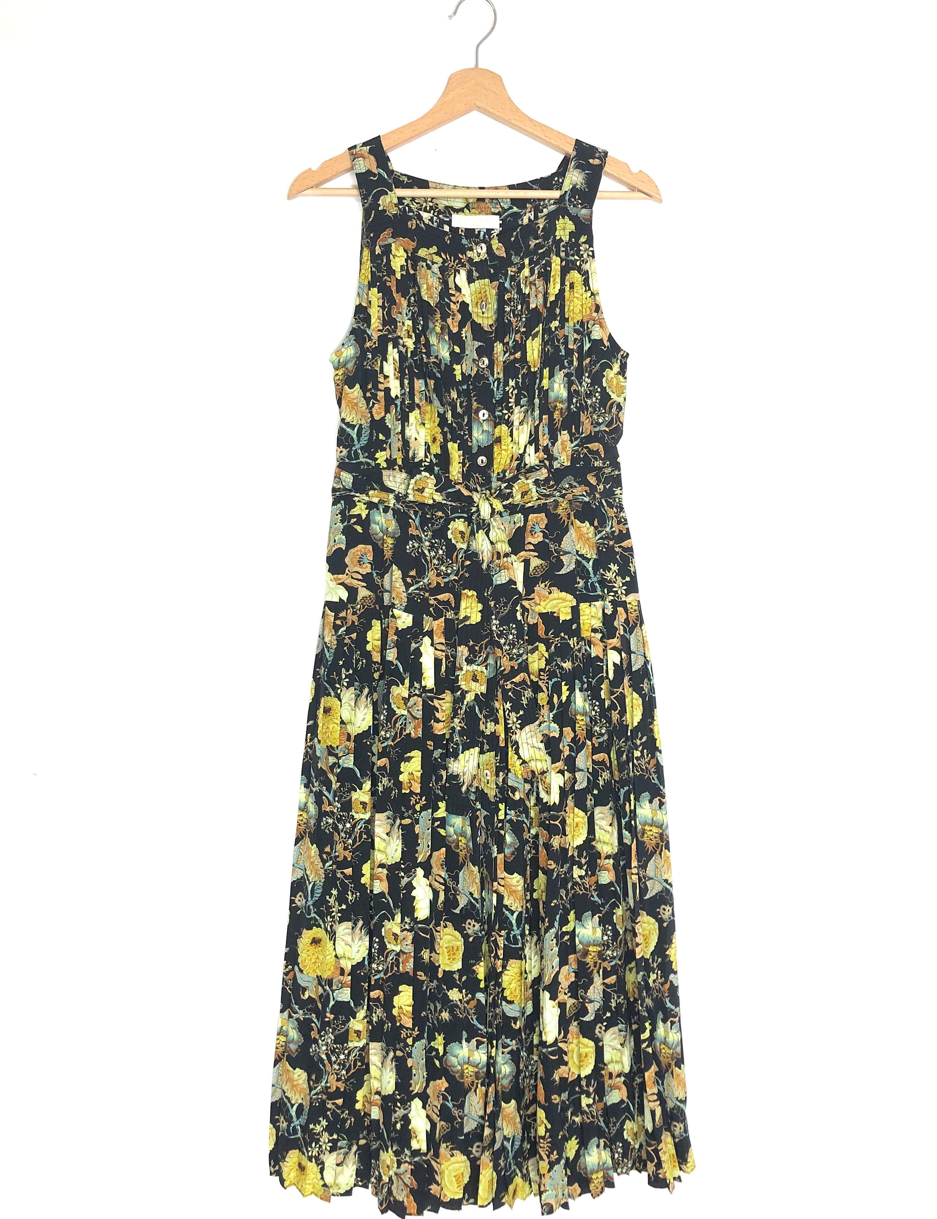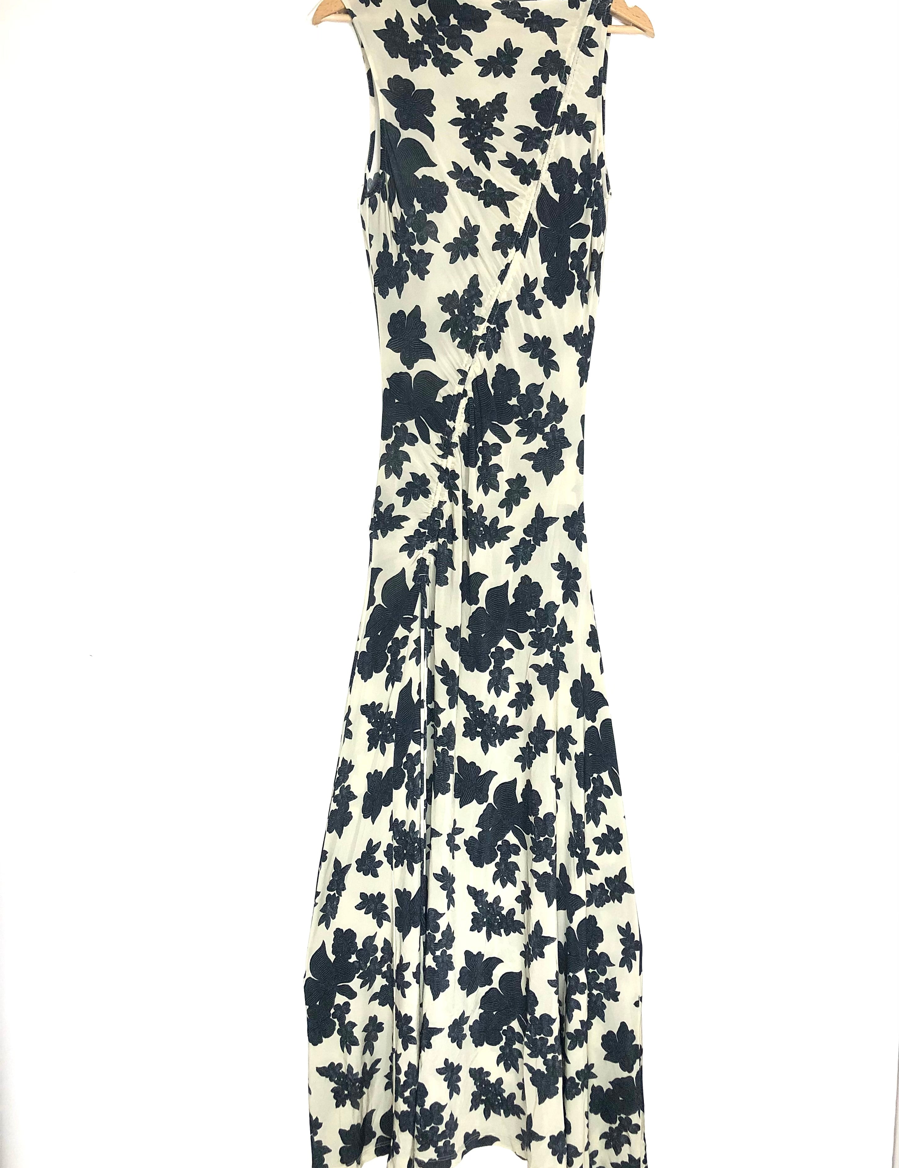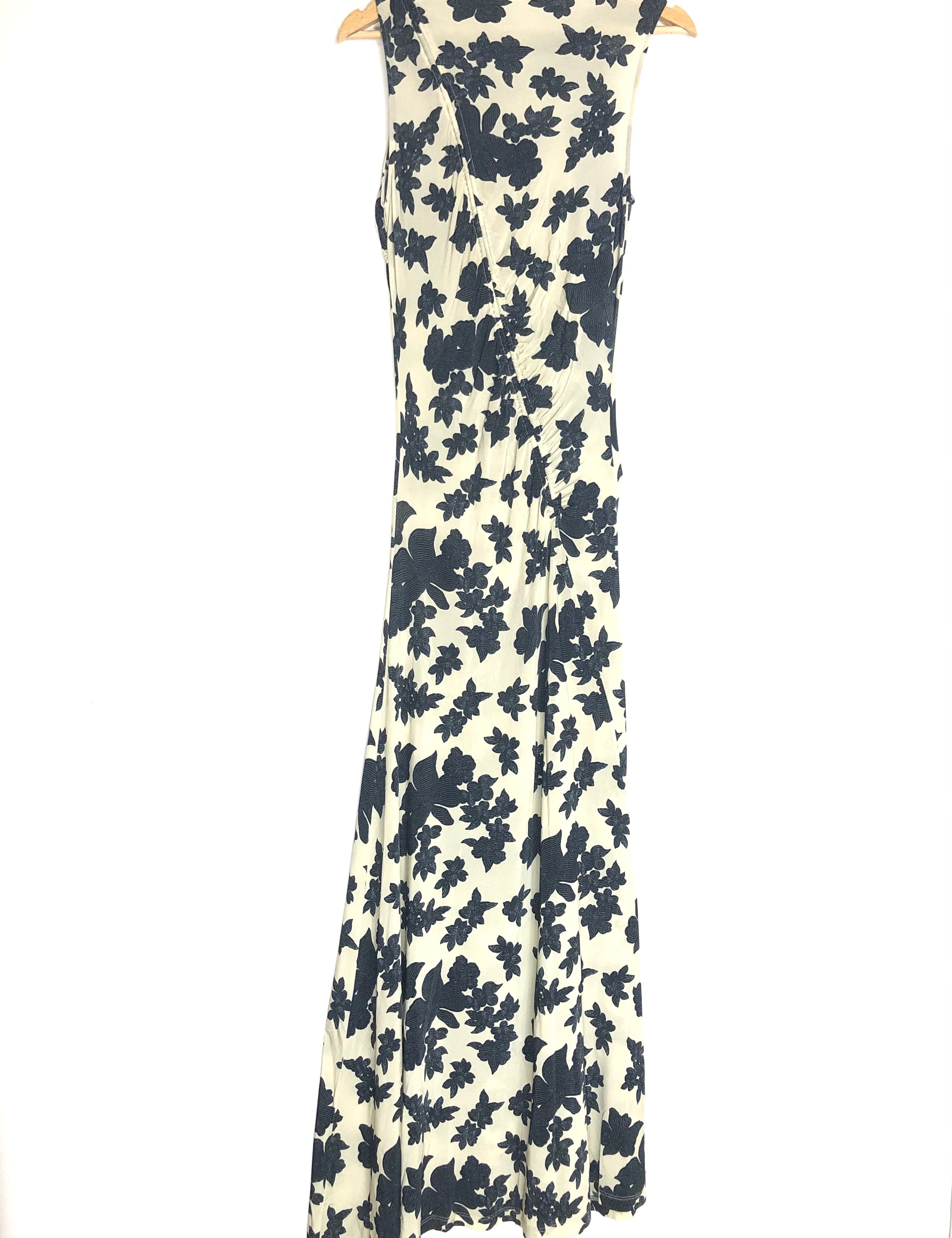 Black NATALIA Floral Print Stretch Jersey Pleated Maxi Dress / ULLA JOHNSON - Size US 4