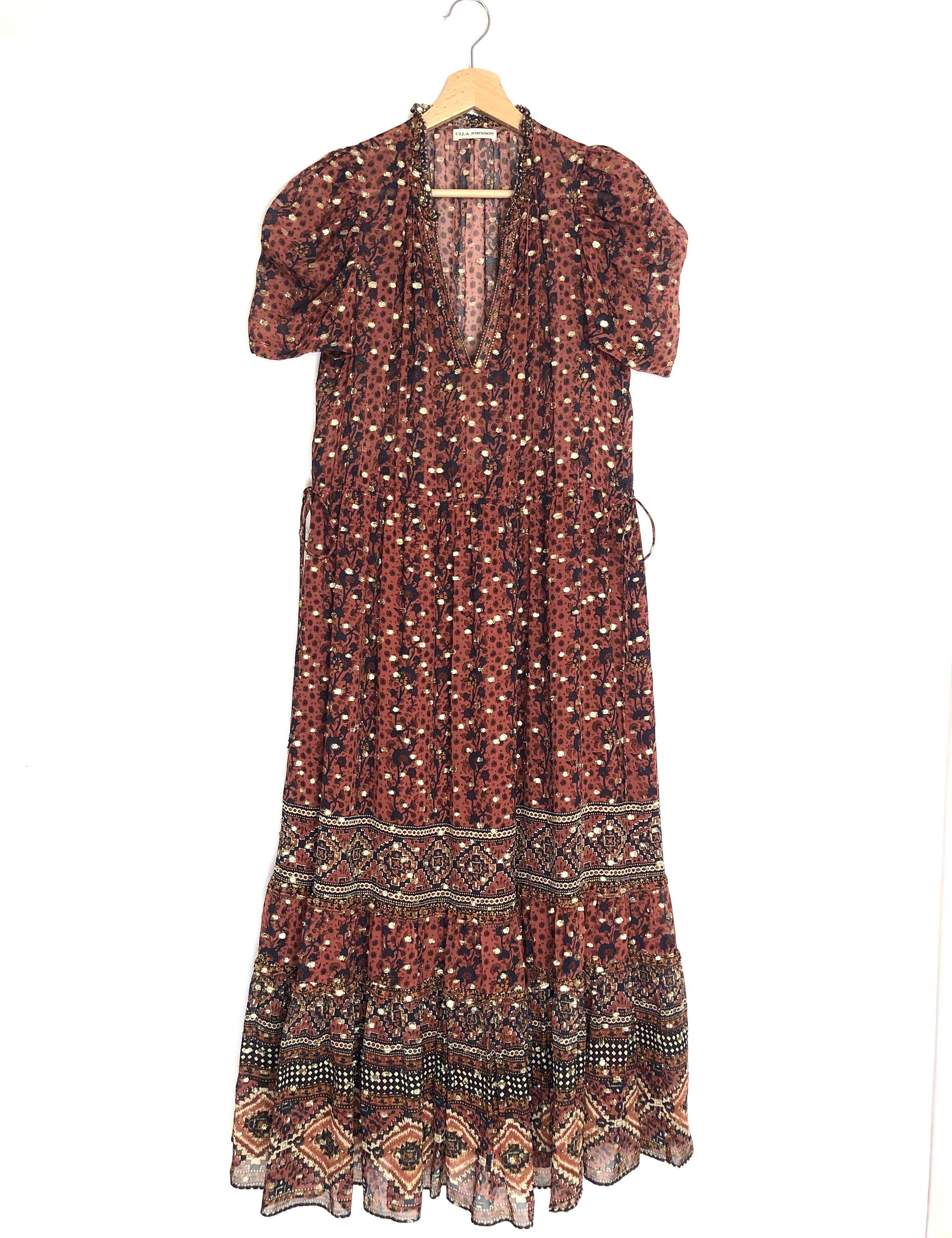 Brick ALASTAIR Floral Printed Georgette Midi Dress / ULLA JOHNSON - Size US 6
