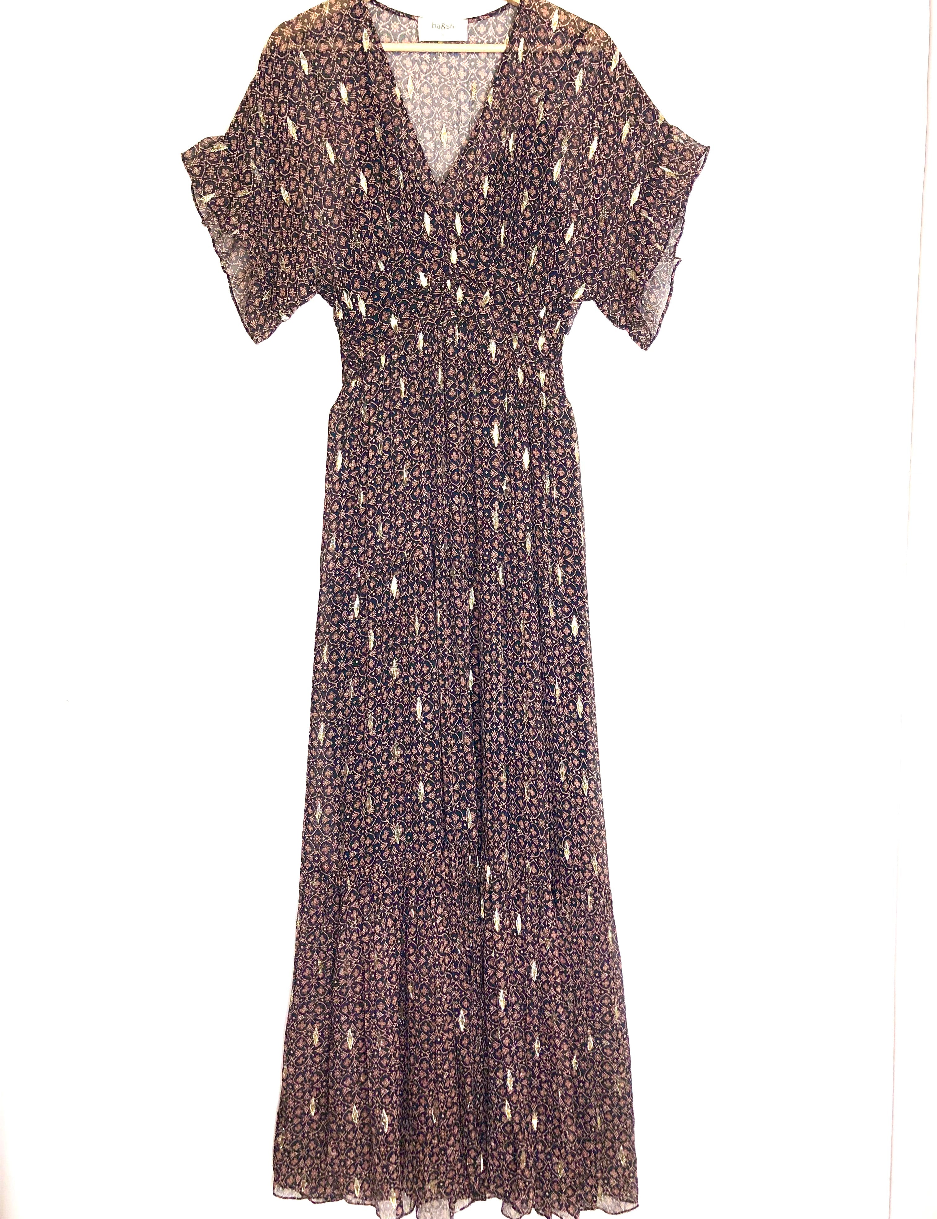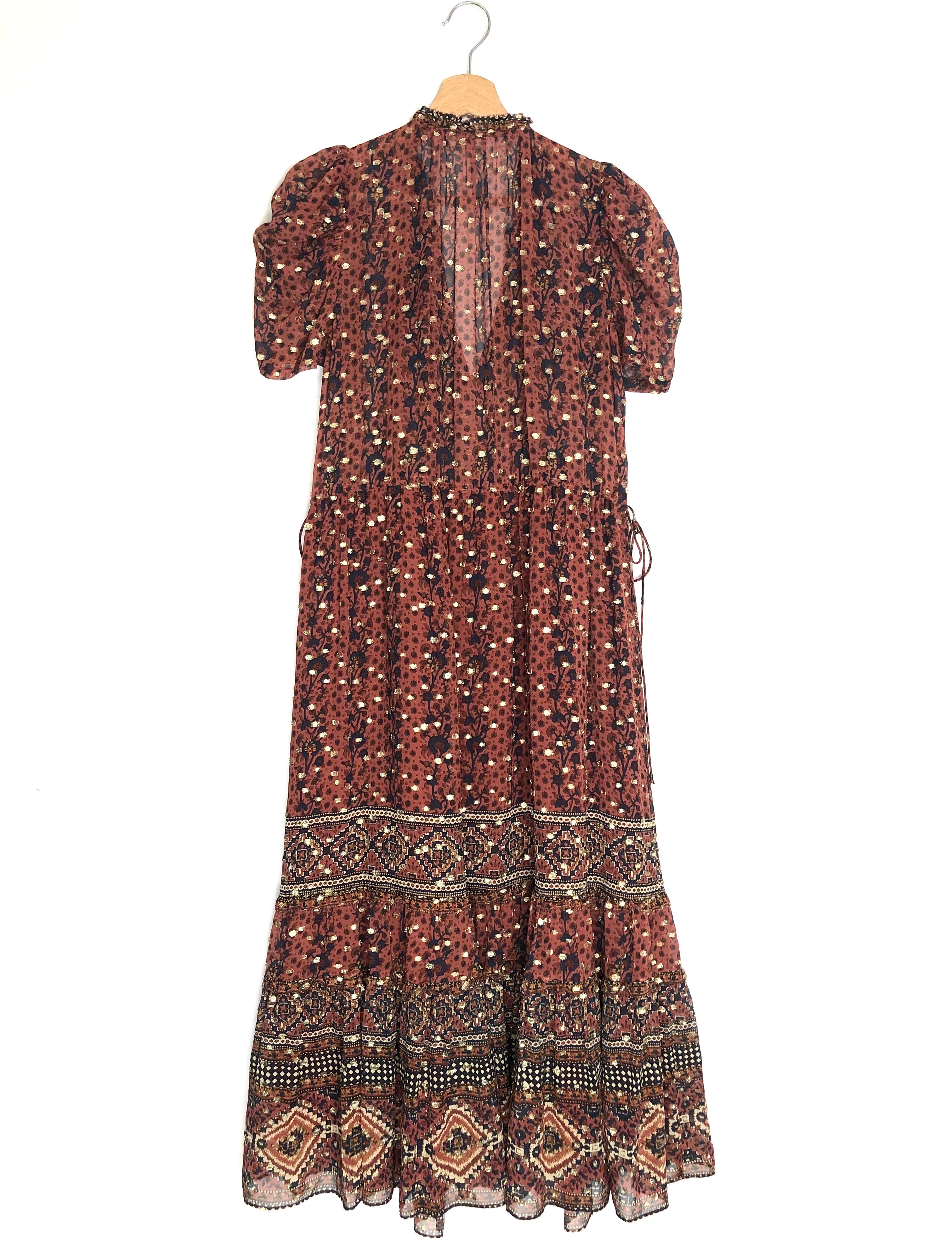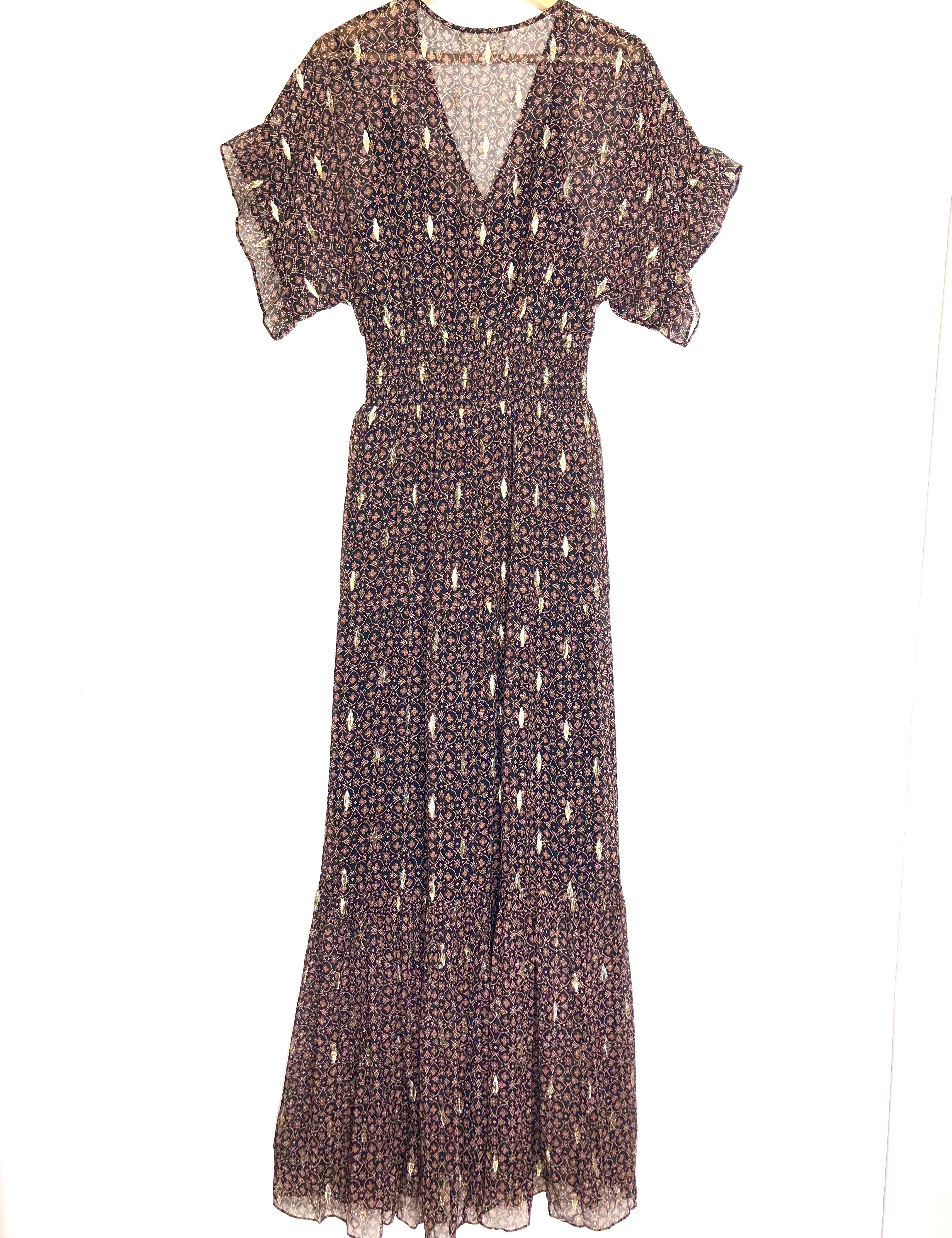 Brown/Black Metallic MELA Embroidered Silk Chiffon Maxi Dress / BA&SH - Size 1