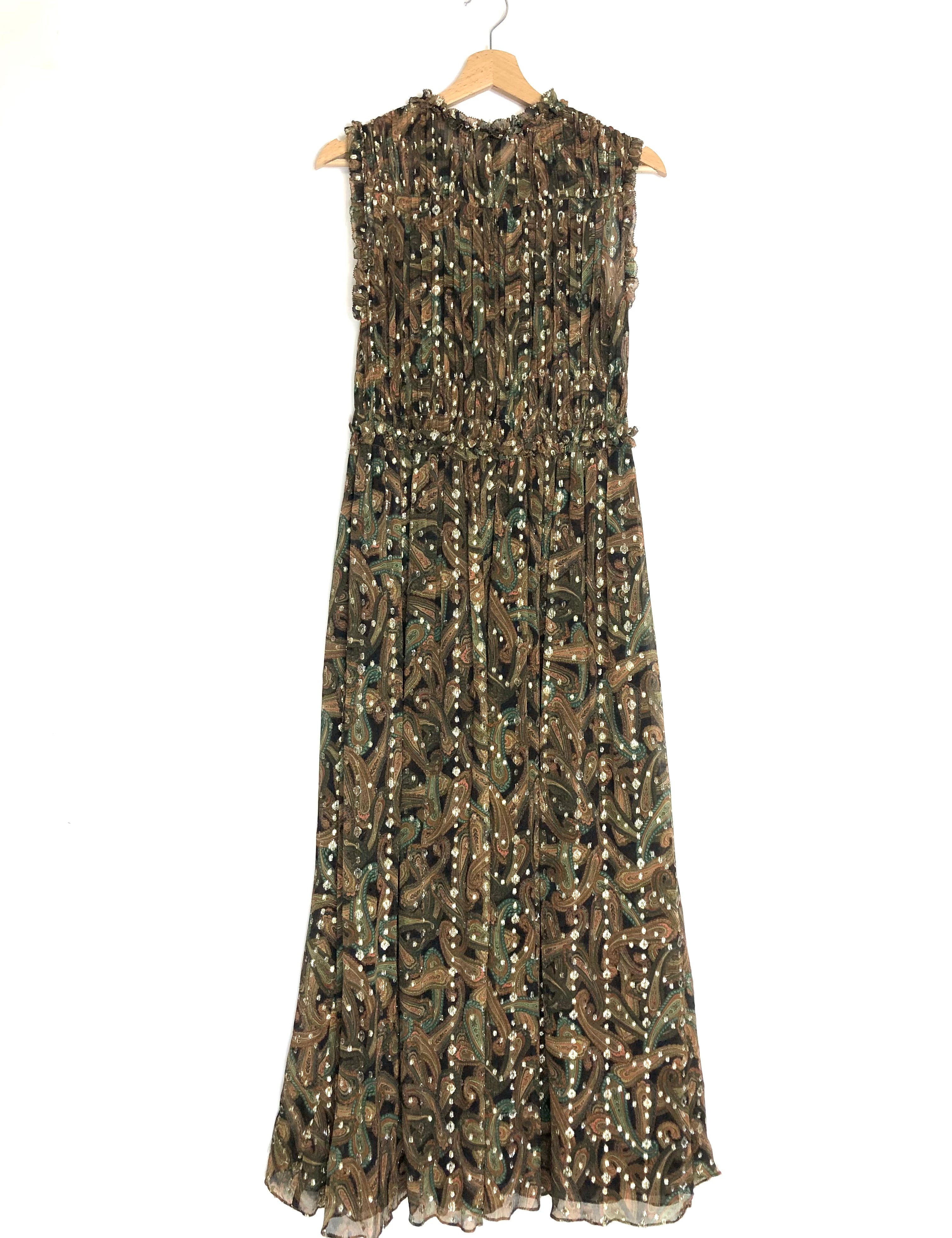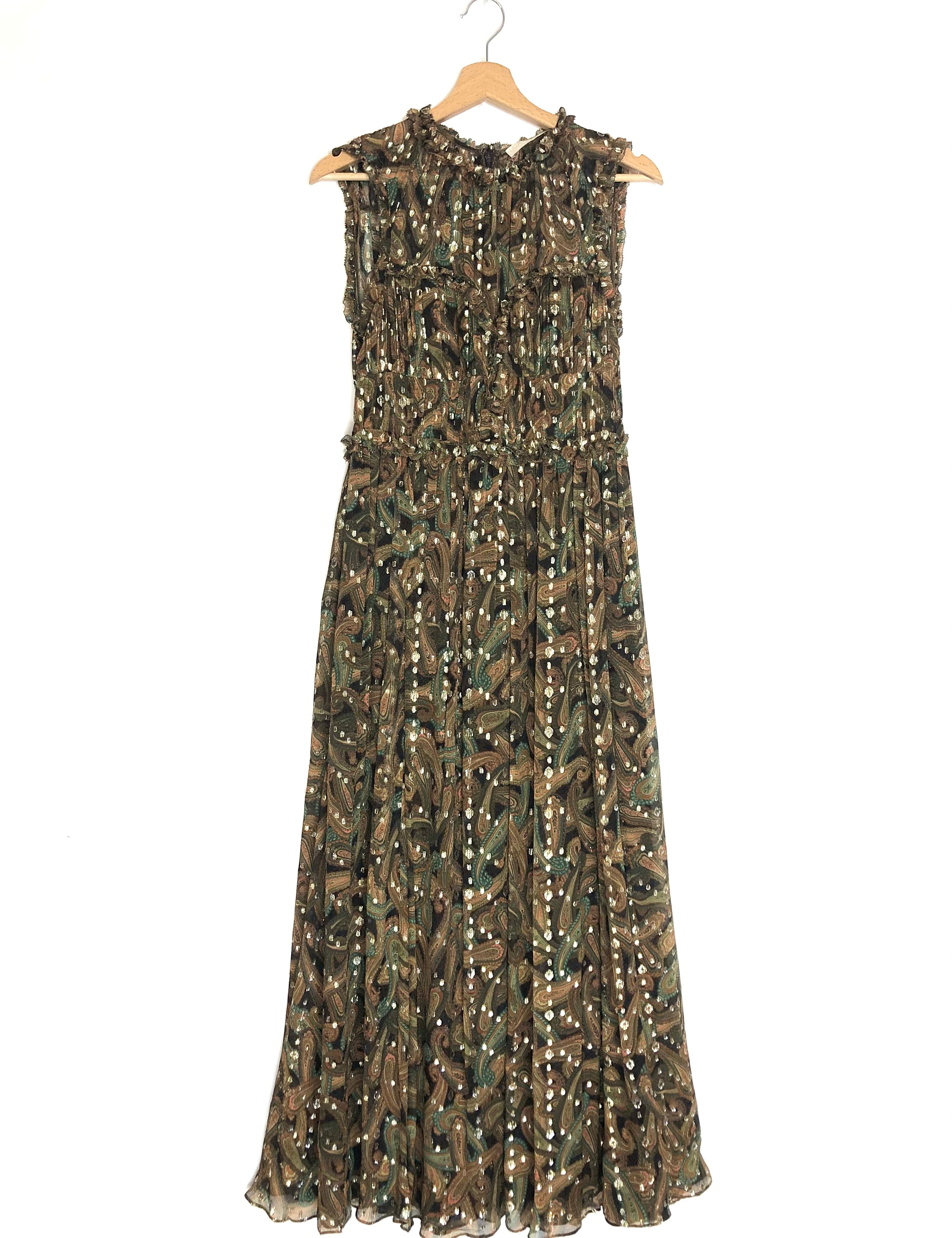 Brown/Khaki KASIA Paisley Silk-blend Sleeveless Midi Dress / ULLA JOHNSON - Size US 4