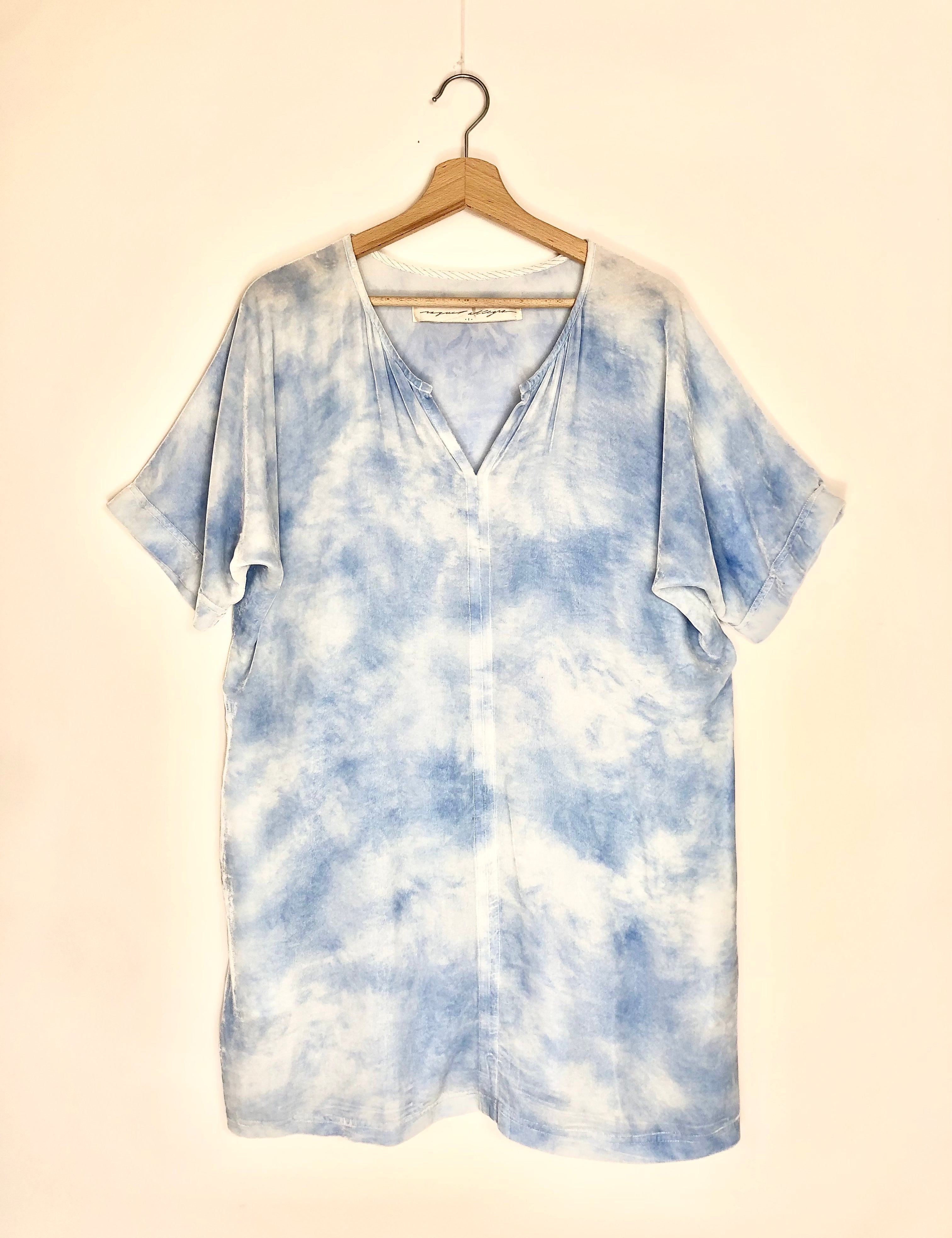 Sky Blue Tie Dyed Velvet Shift Mini Dress / RAQUEL ALLEGRA - Size 1