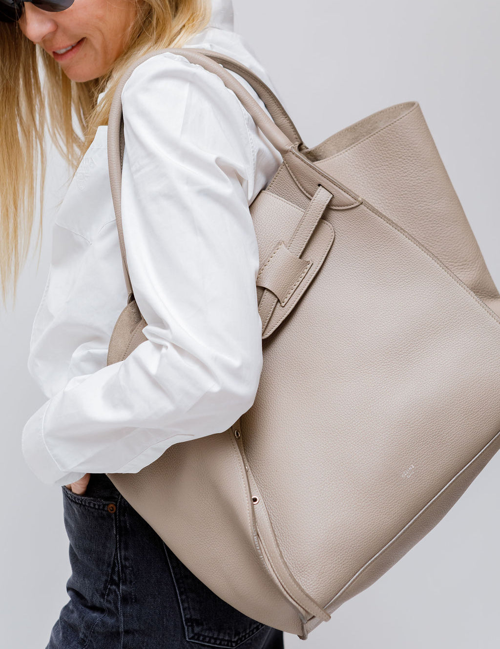Taupe BIG BAG Calf Leather Medium Tote Bag / CELINE
