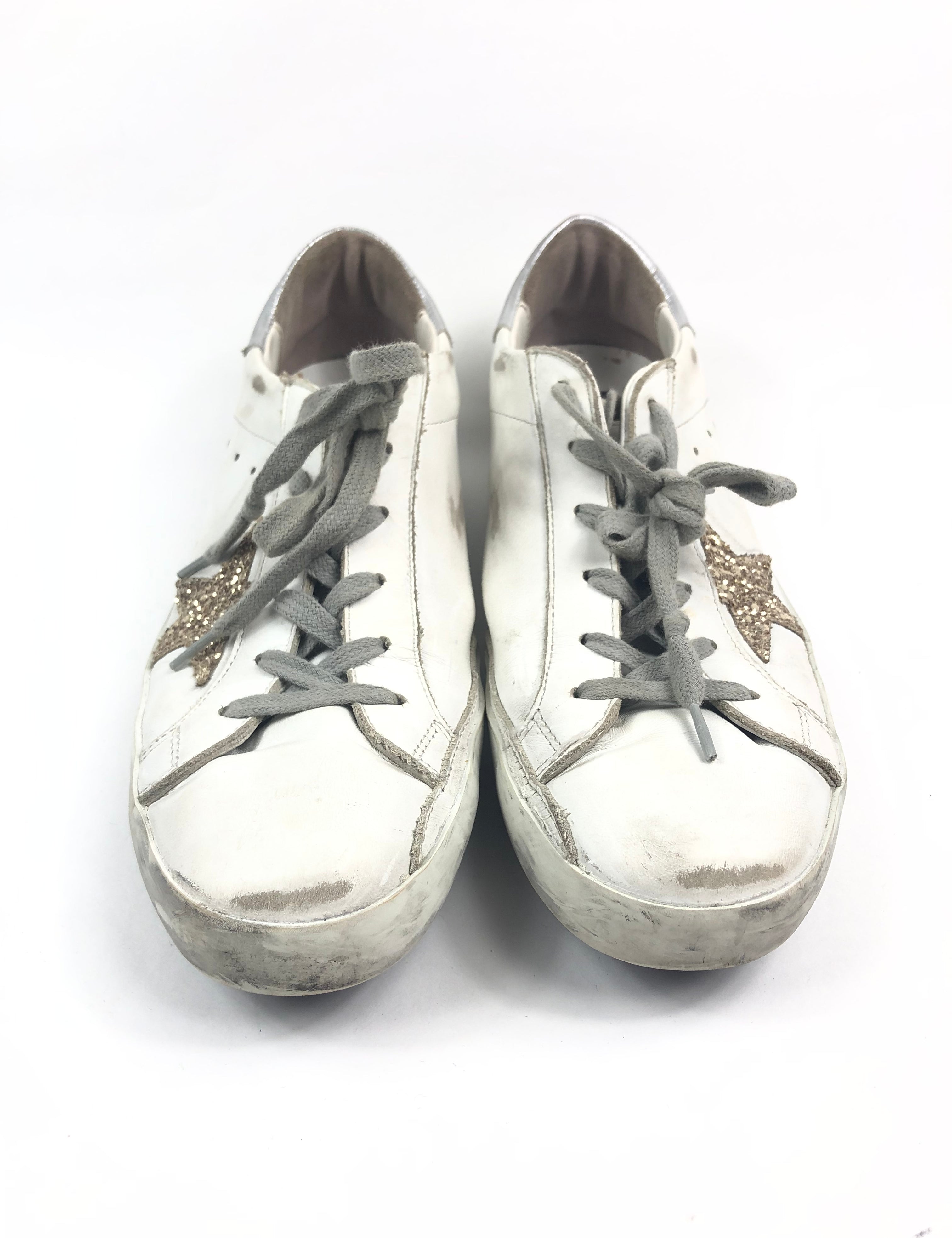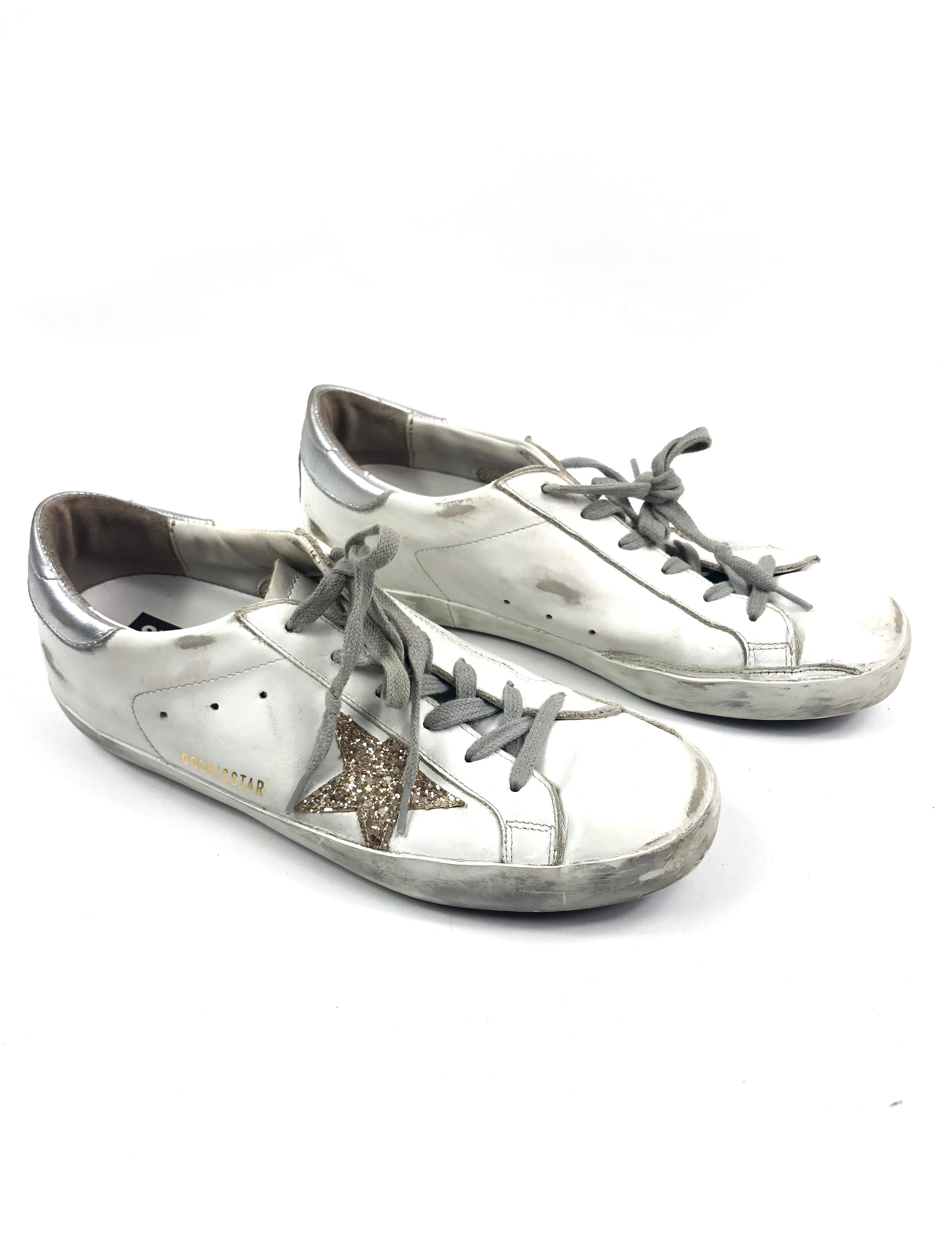 White SUPERSTAR Gold Glitter Star Leather Sneakers / GOLDEN GOOSE - Size 41