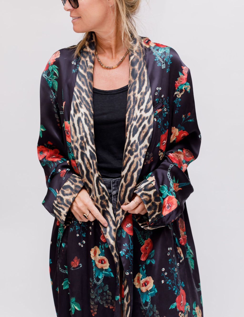 Black Useless Treasures Floral Print Silk Kimono Dress / R13 - Size M