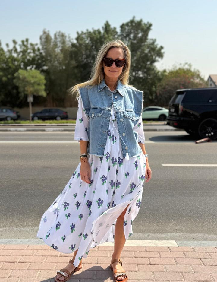 White SHERAZADE Floral Cotton Fluid Dress / MII AUX 4 SAISON - Size S