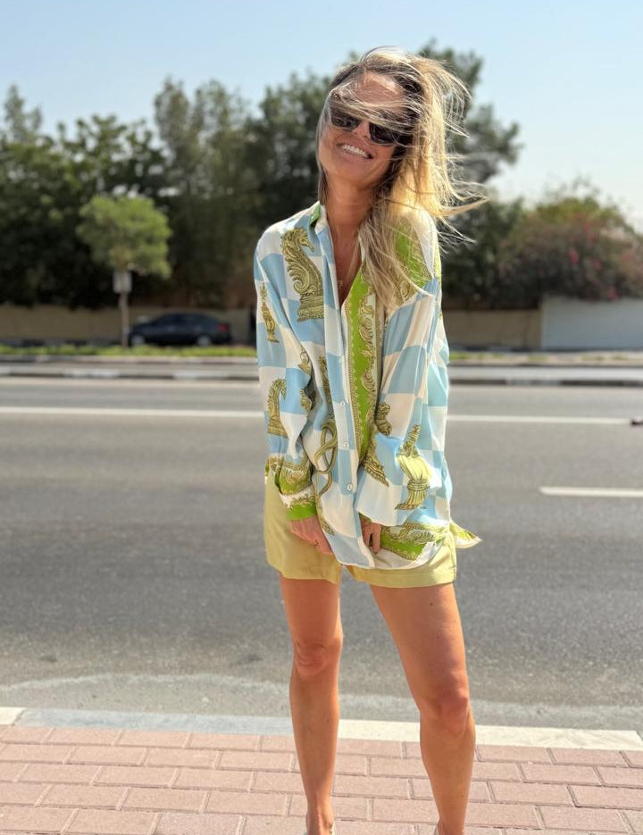 Blue and Green Checkmate Silk Long Sleeves Shirt / ALEMAIS - Size US 4