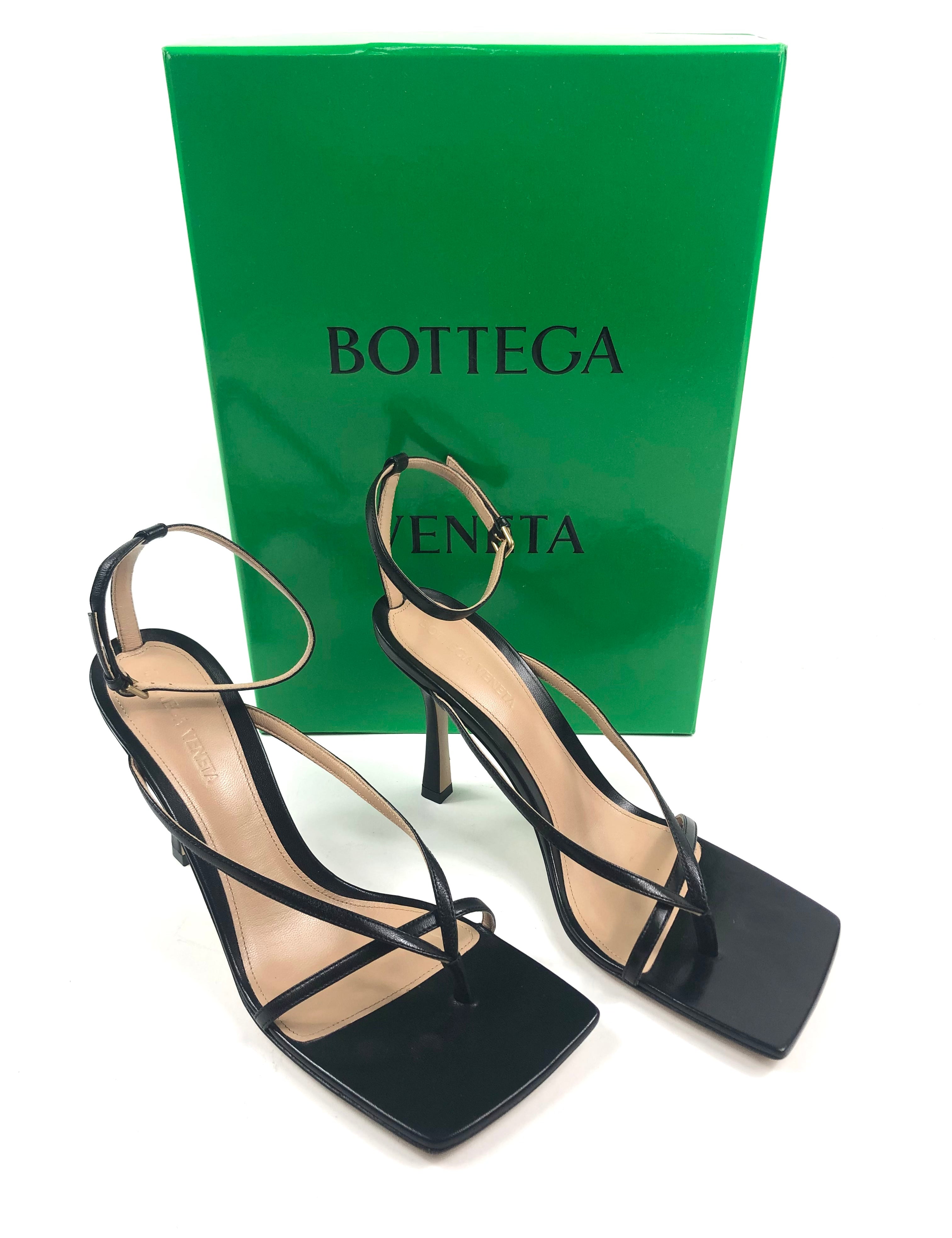Black STRETCH Square Sole Leather Sandals / BOTTEGA VENETA - Size 39