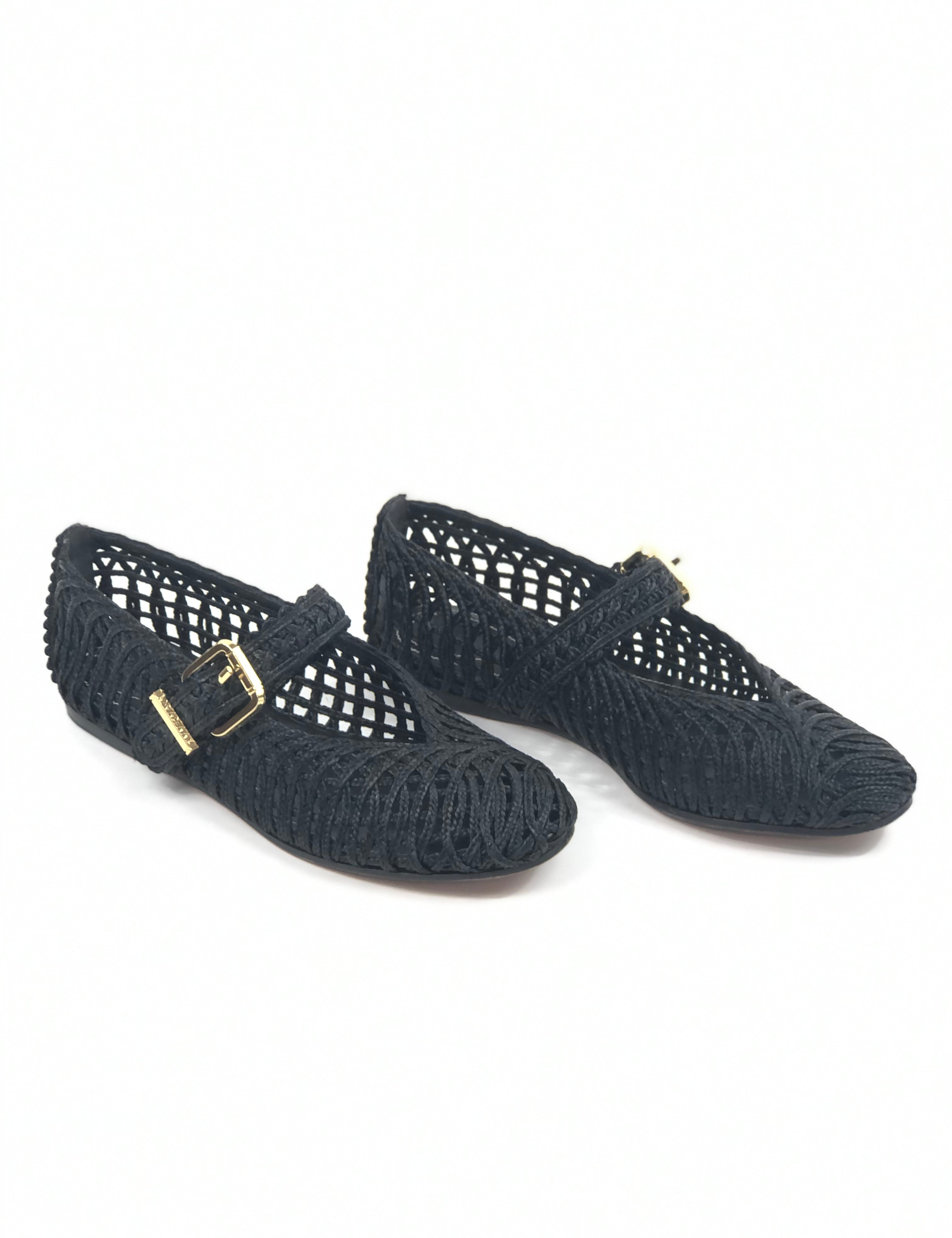 Black REEF Braided Raffia Mary Jane Flats / ZIMMERMANN - Size 38
