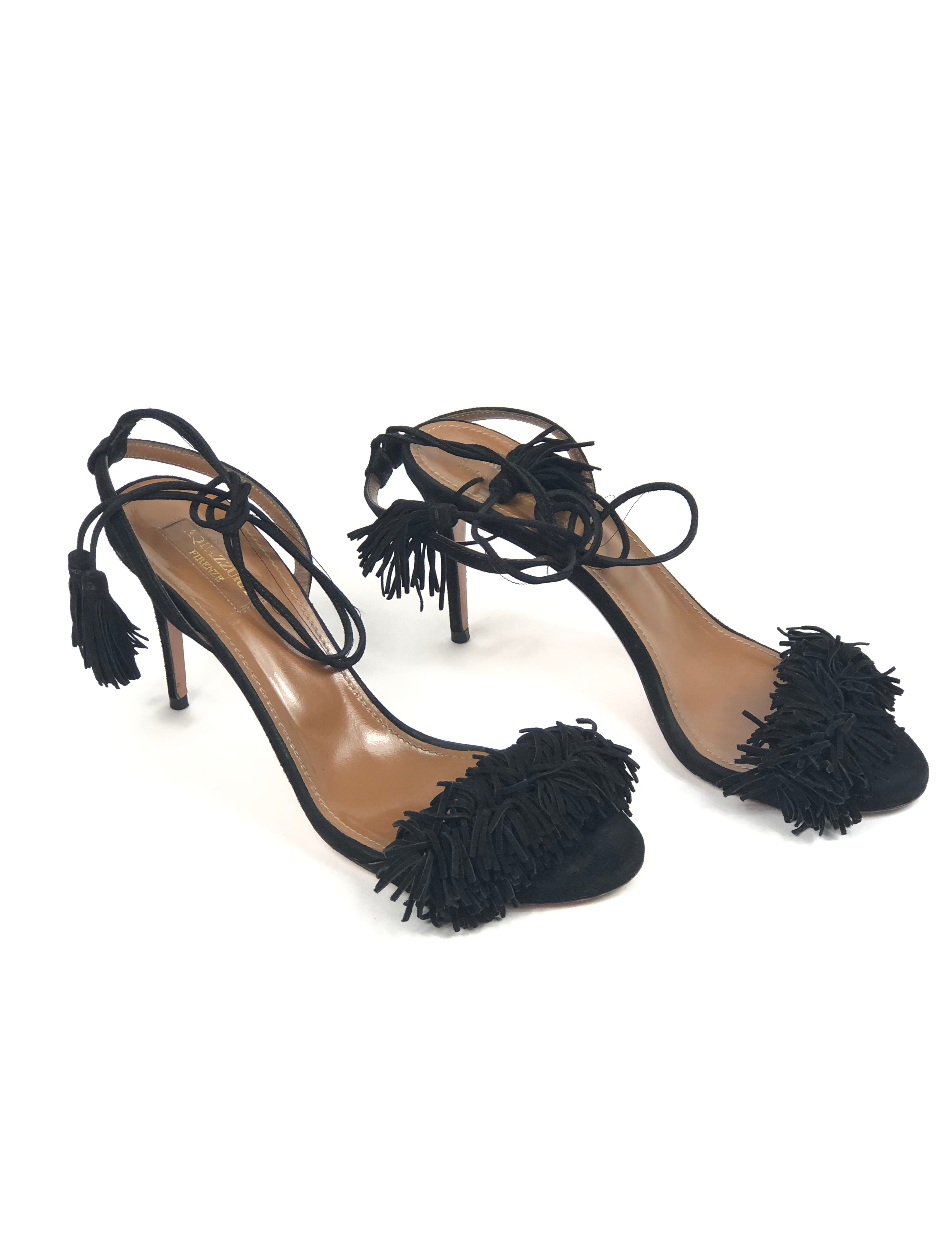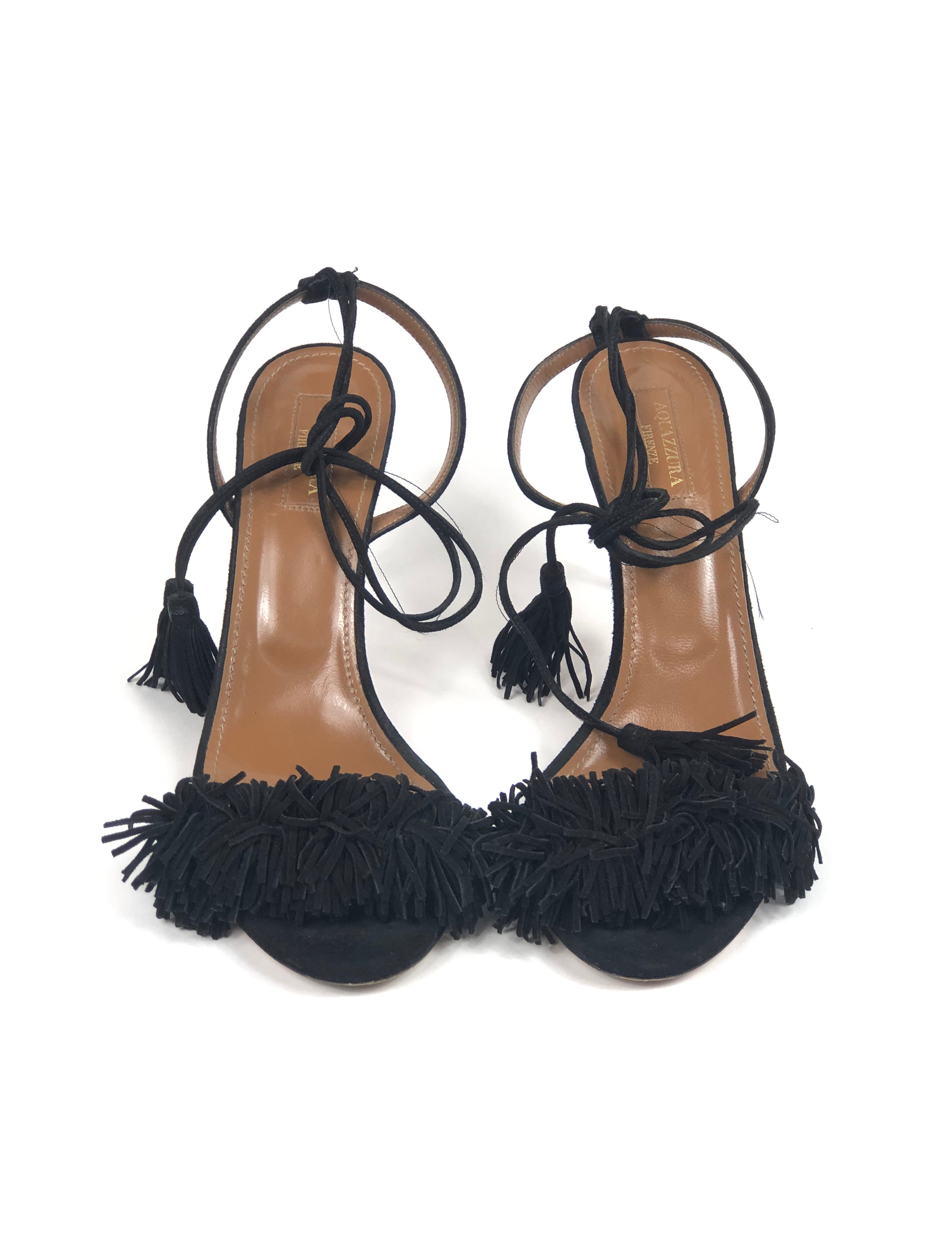 Black WILD THING 85 Fringed Suede Heeled Sandals / AQUAZURRA - Size 38