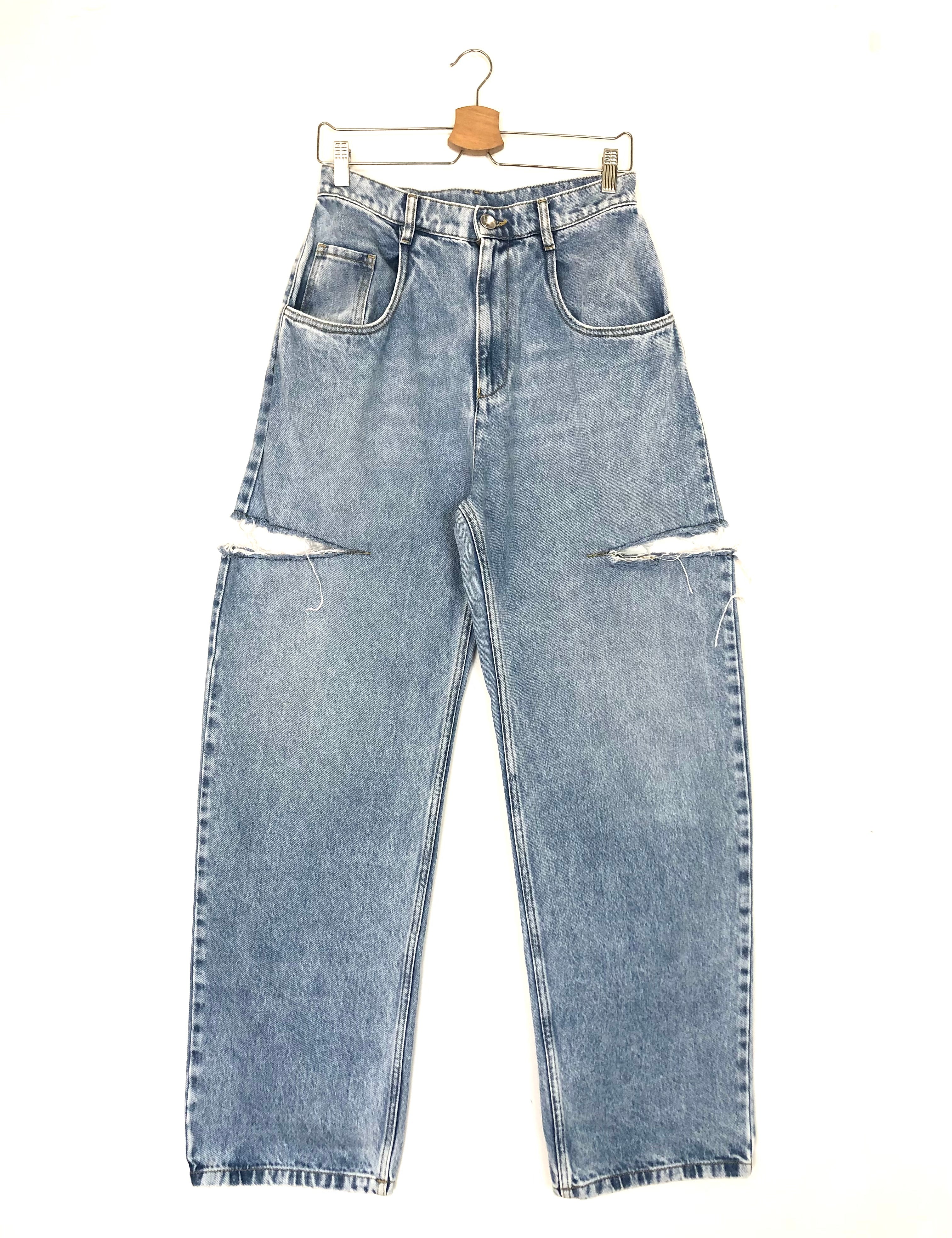 Blue Cutout High-rise Wide-leg Jeans / MAISON MARGIELA - Size 38