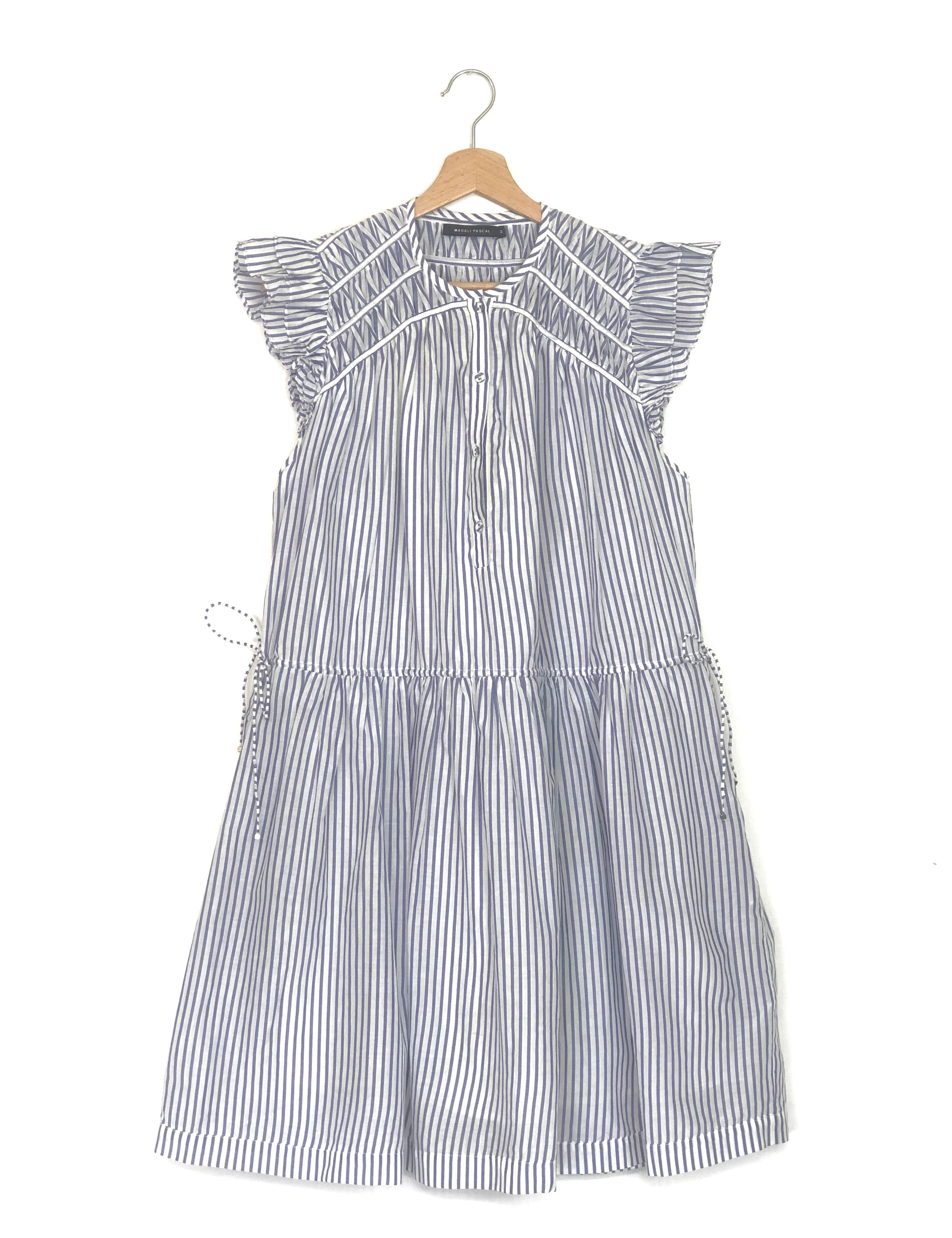 Blue Stripe VALERIA Cotton and Silk-blend Mini Dress / MAGALI PASCAL - Size M