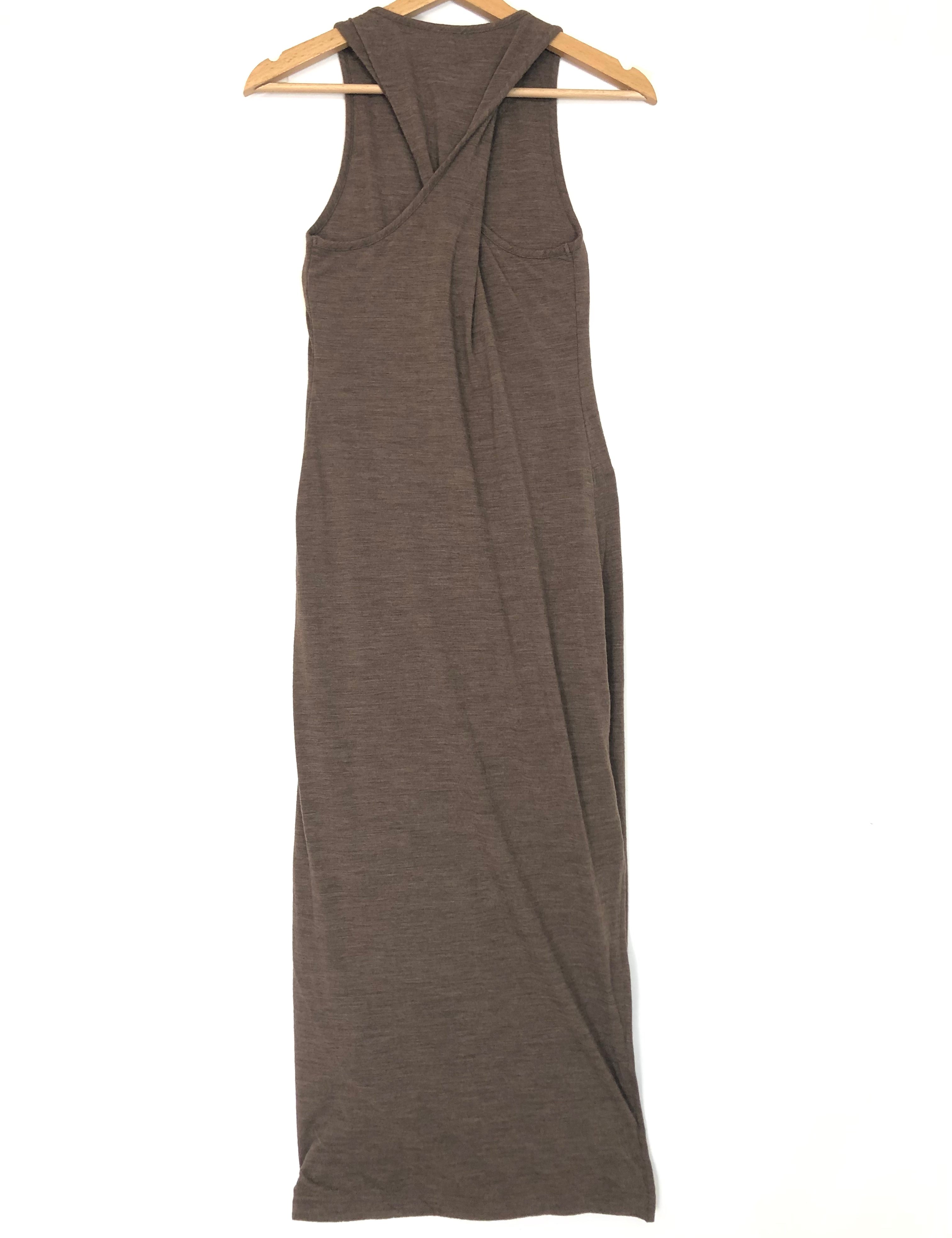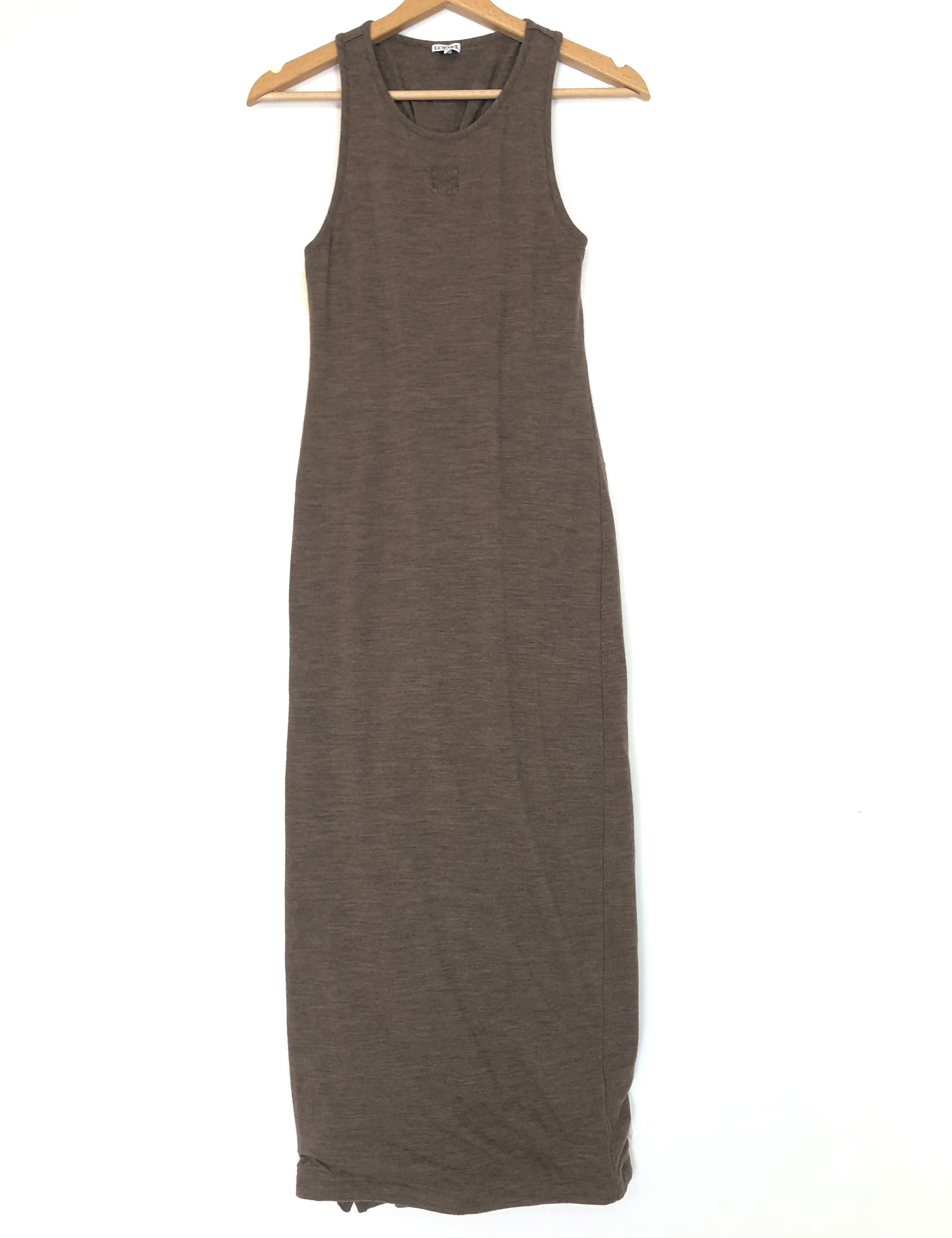 Brown Anagram Embroidered Twist-back Wool-blend Jersey Maxi Dress / LOEWE - Size S