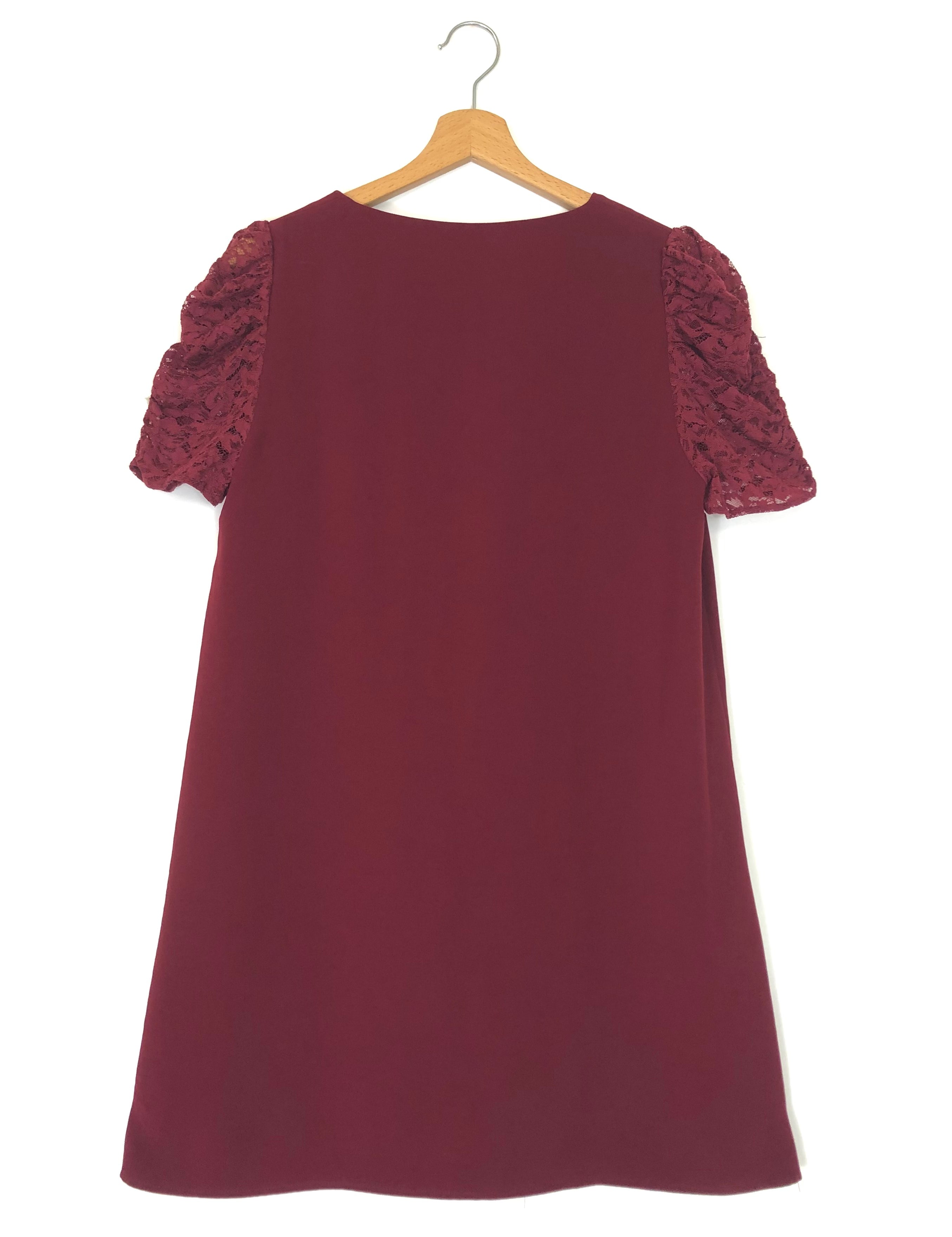 Burgundy COLETTA Lace Short Sleeves Mini Dress / SEZANE - Size 38