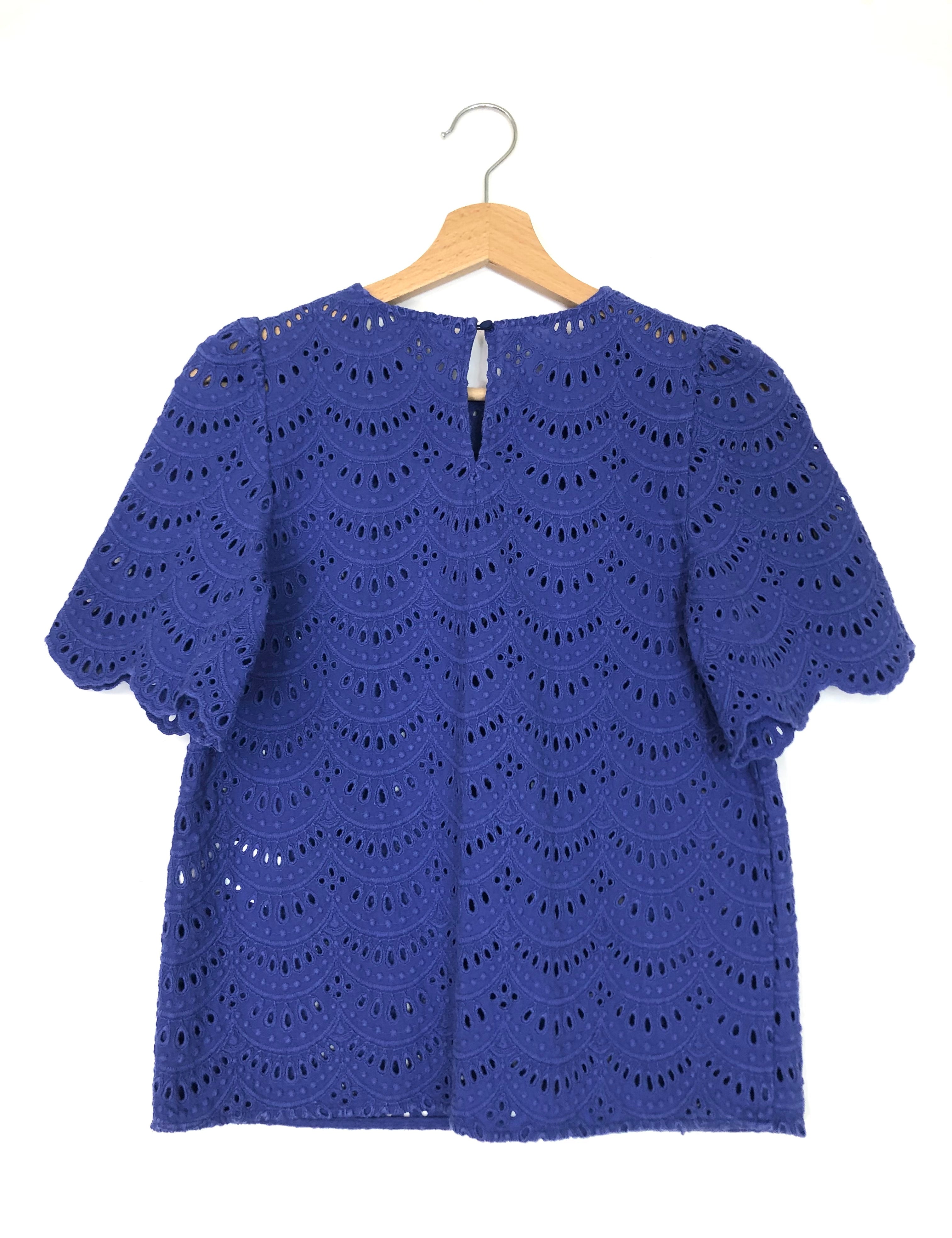 Electric Blue LISA Cotton Openwork Short Sleeves Blouse / SEZANE - Size 34