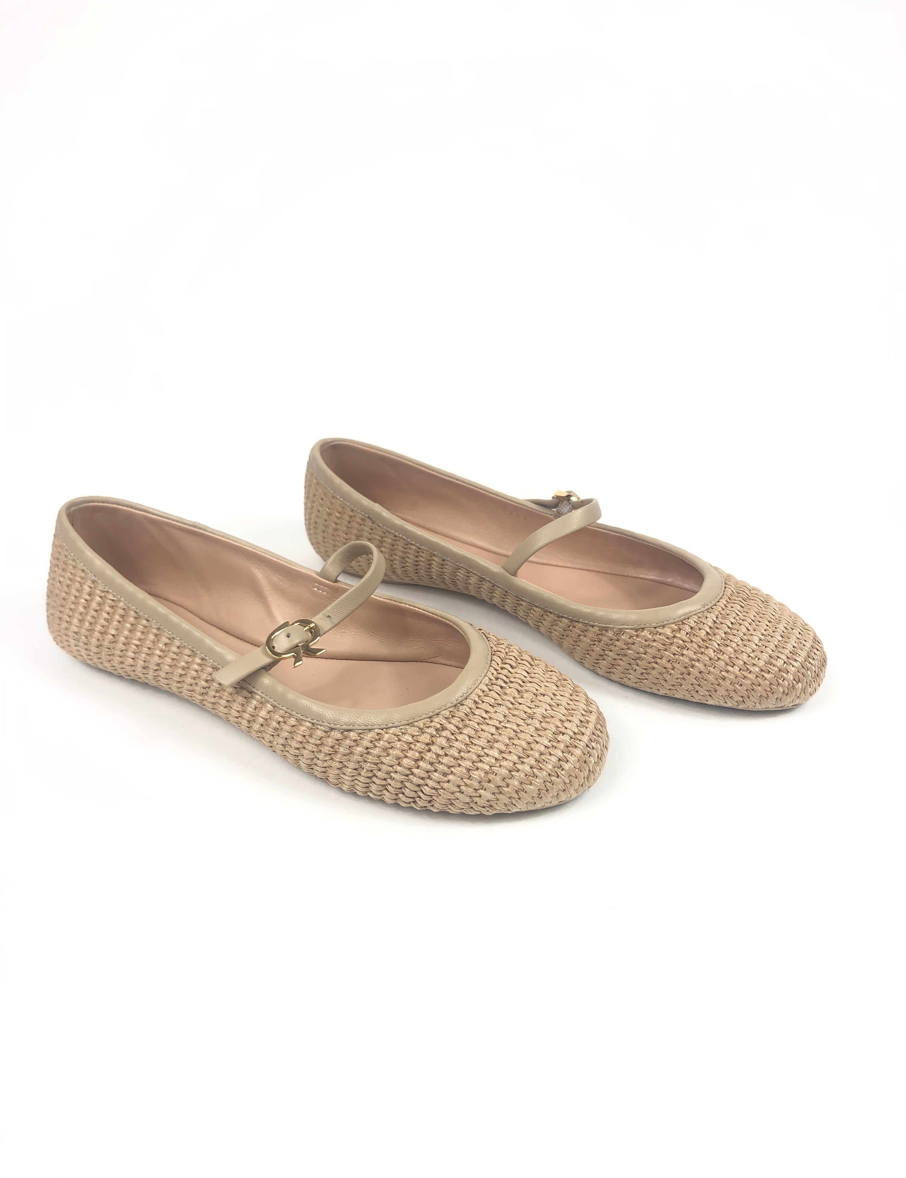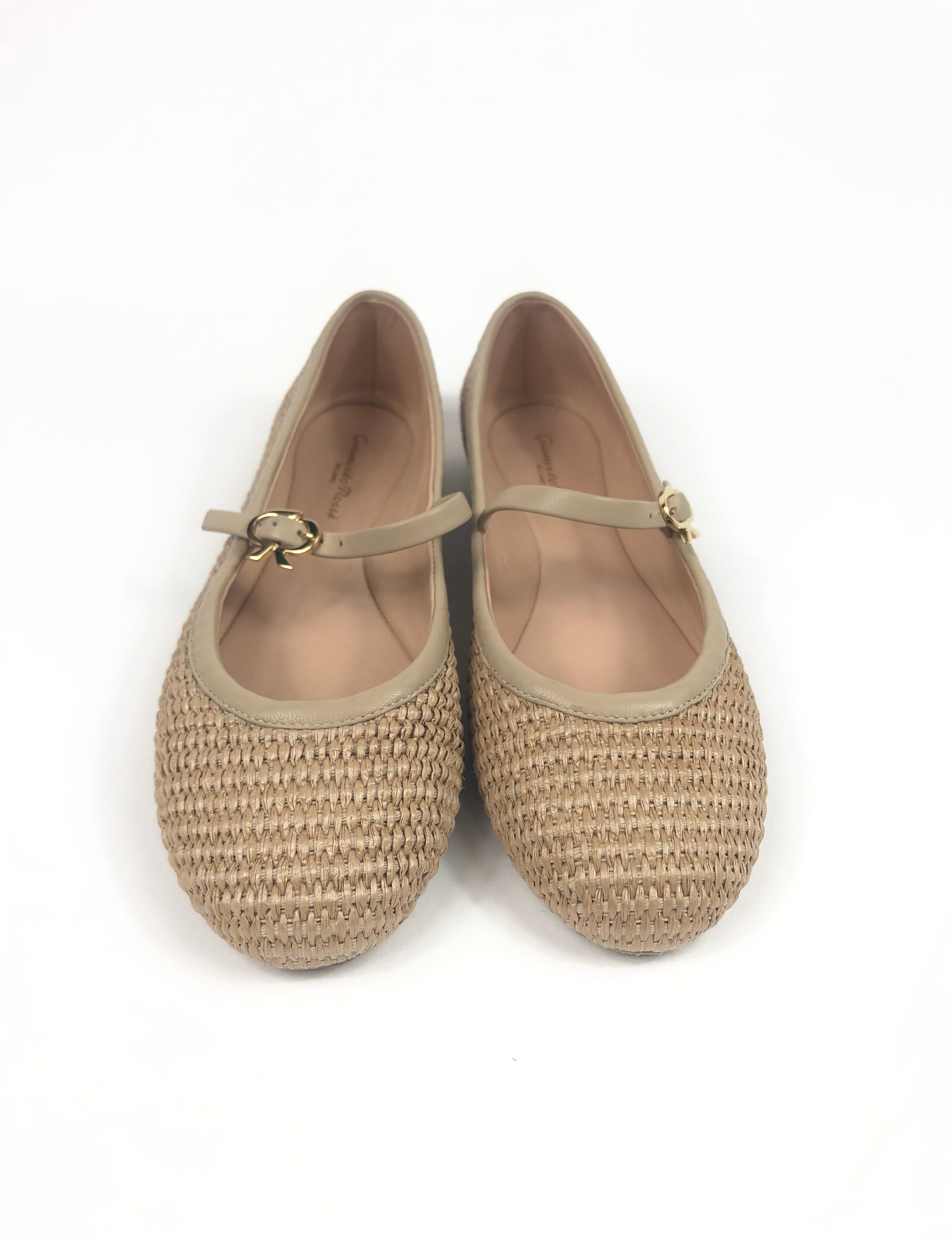Natural CARLA Leather-trimmed Raffia Mary Jane Ballet Flats / GIANVITO ROSSI - Size 38