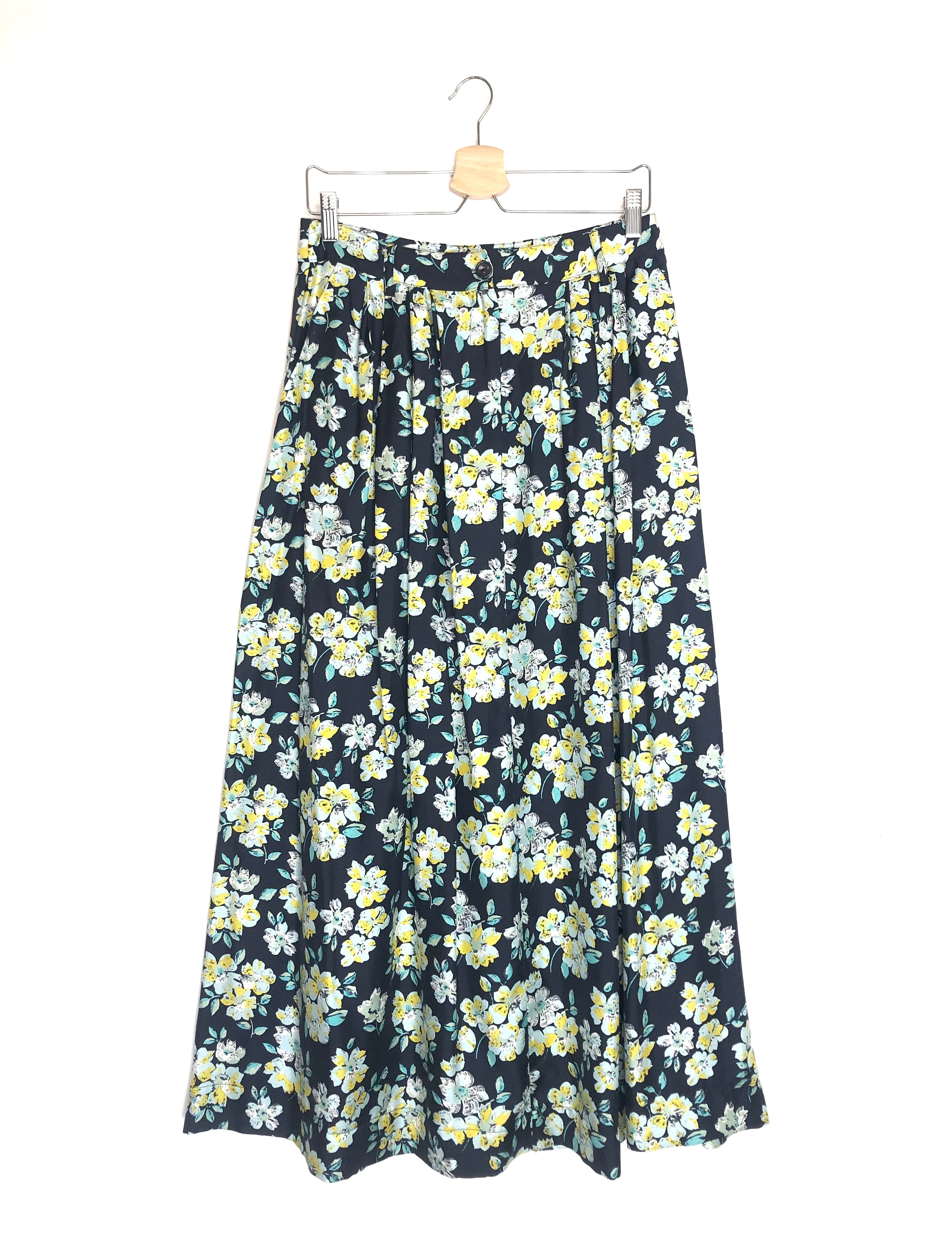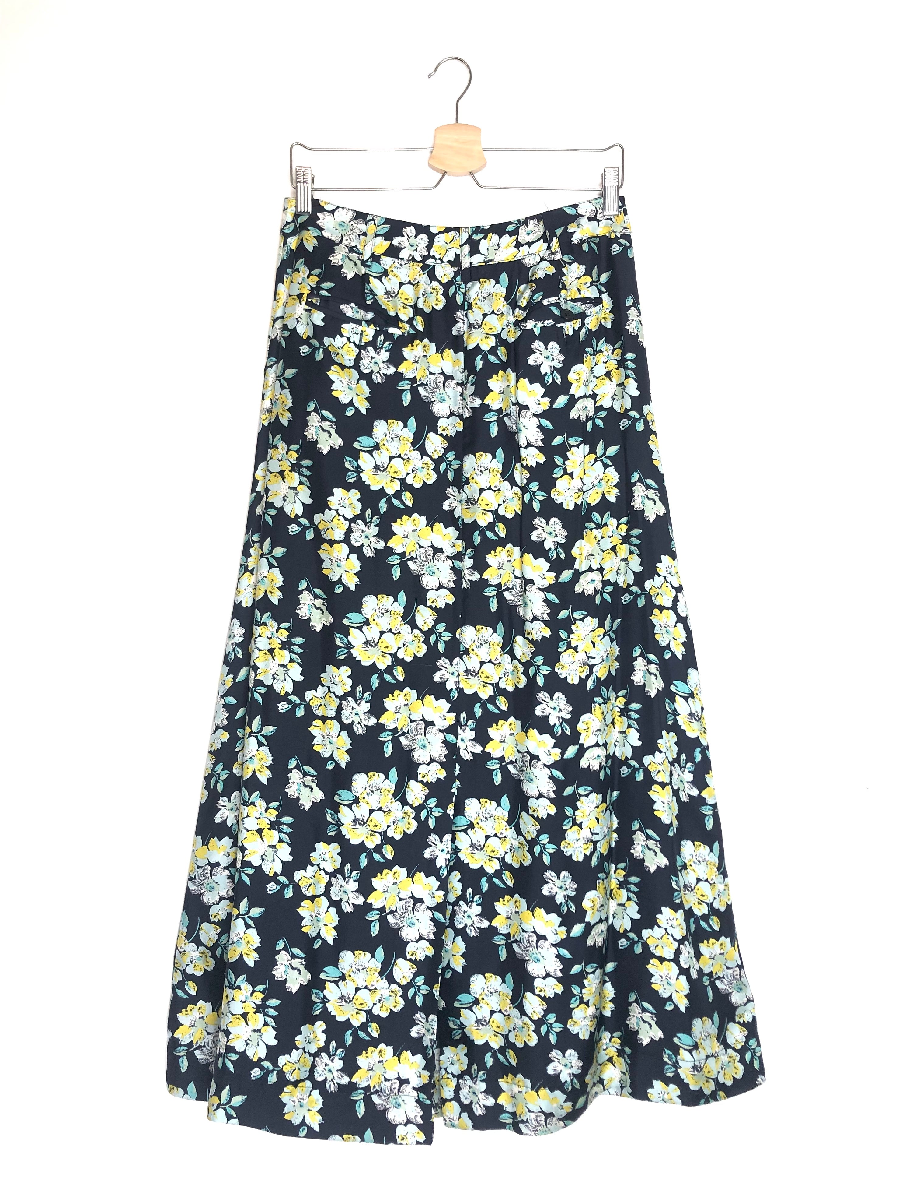 Navy Floral Printed Silk Maxi Skirt / ESSENTIEL - Size 36
