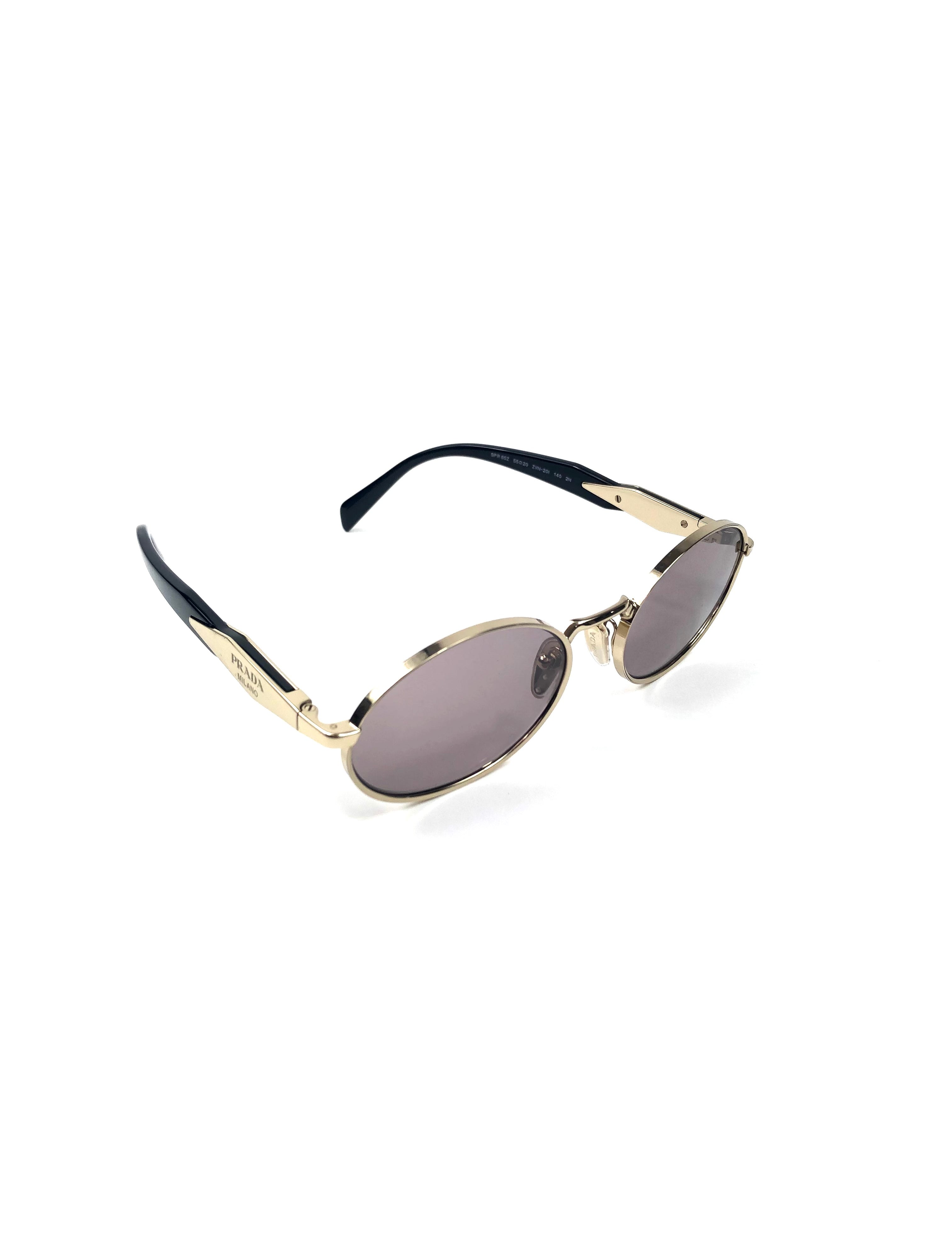 Pale Gold / Light Purple Engraved Logo Oval Sunglasses / PRADA