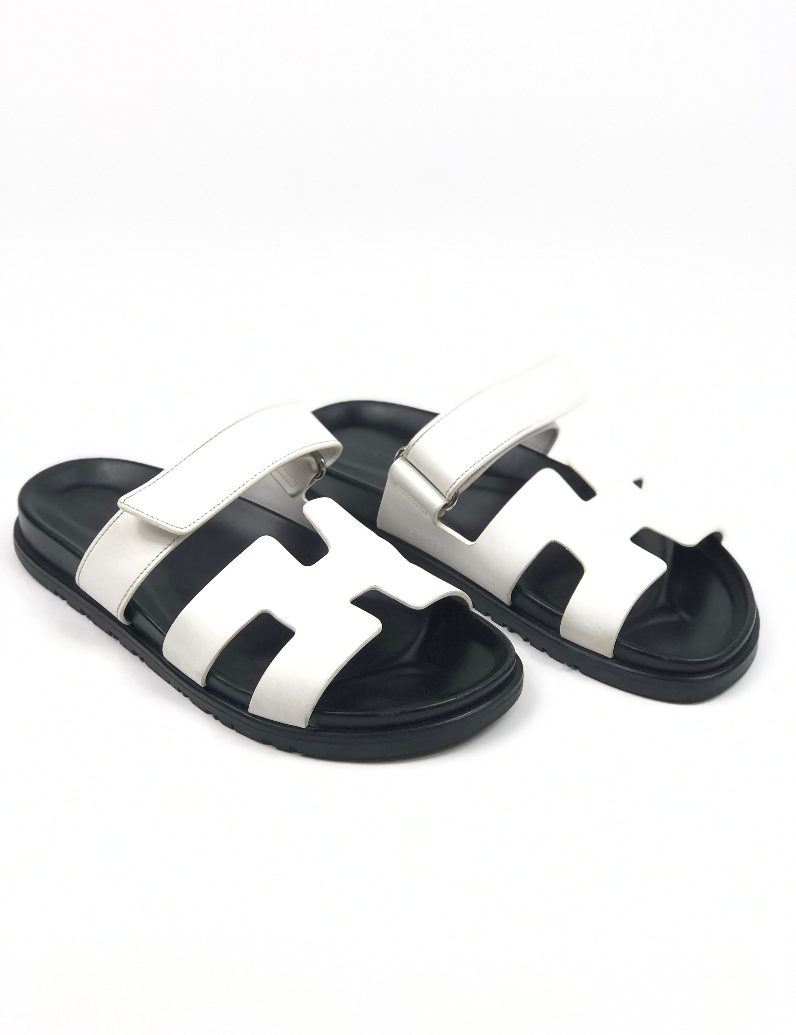 White CHYPRE Leather Sandals / HERMES - Size 39.5