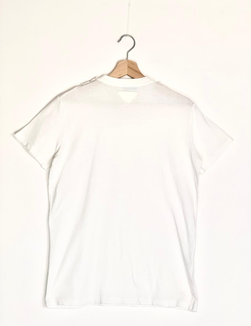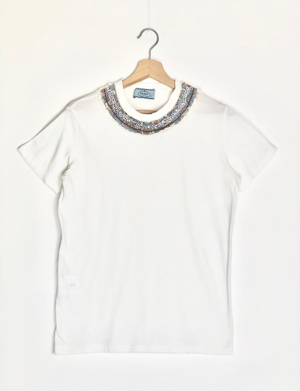 White Crystal Embroidered Cotton Jersey T-Shirt / PRADA - Size S