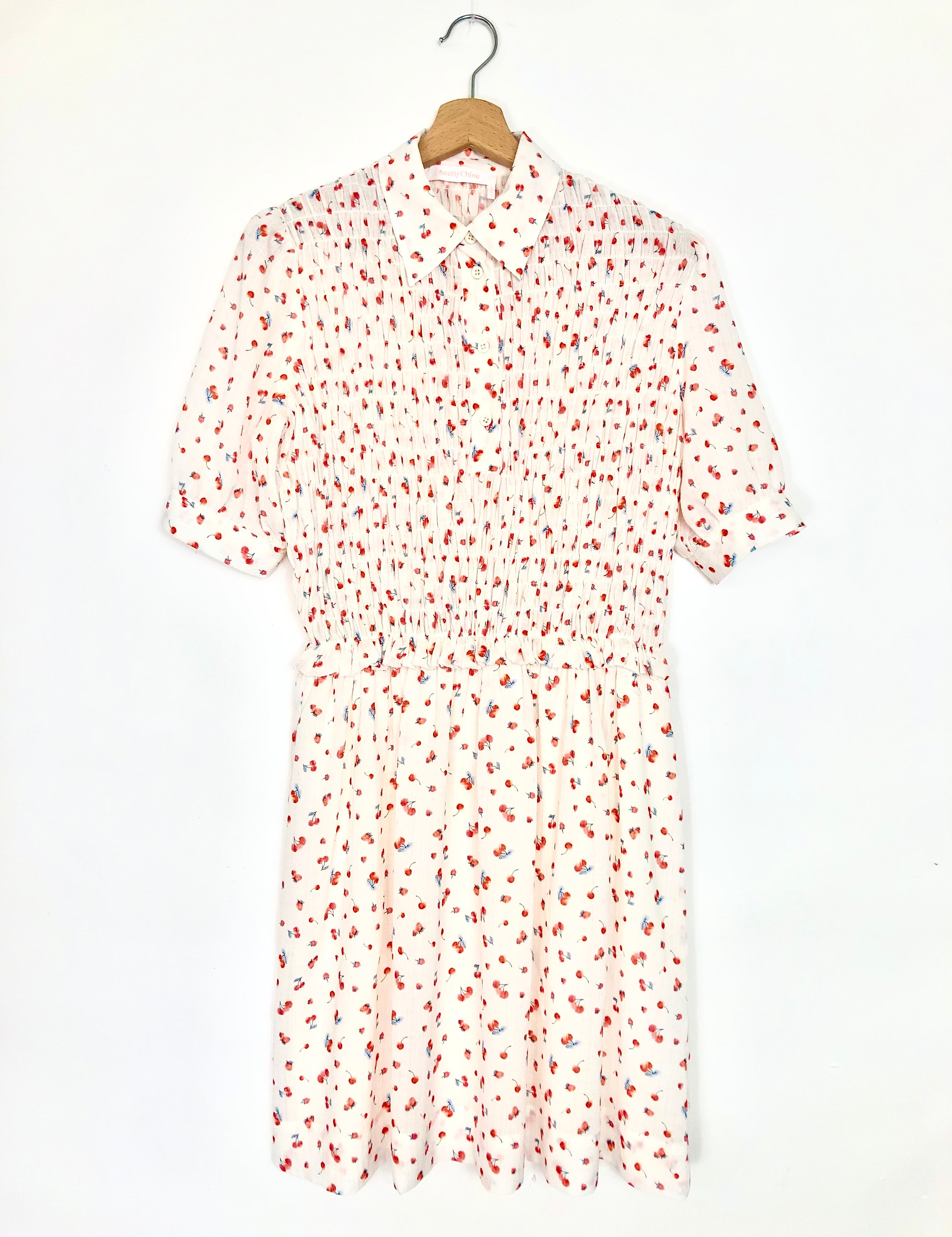 White Floral Print Georgette Smocked Mini Dress / SEE BY CHLOE - Size 38