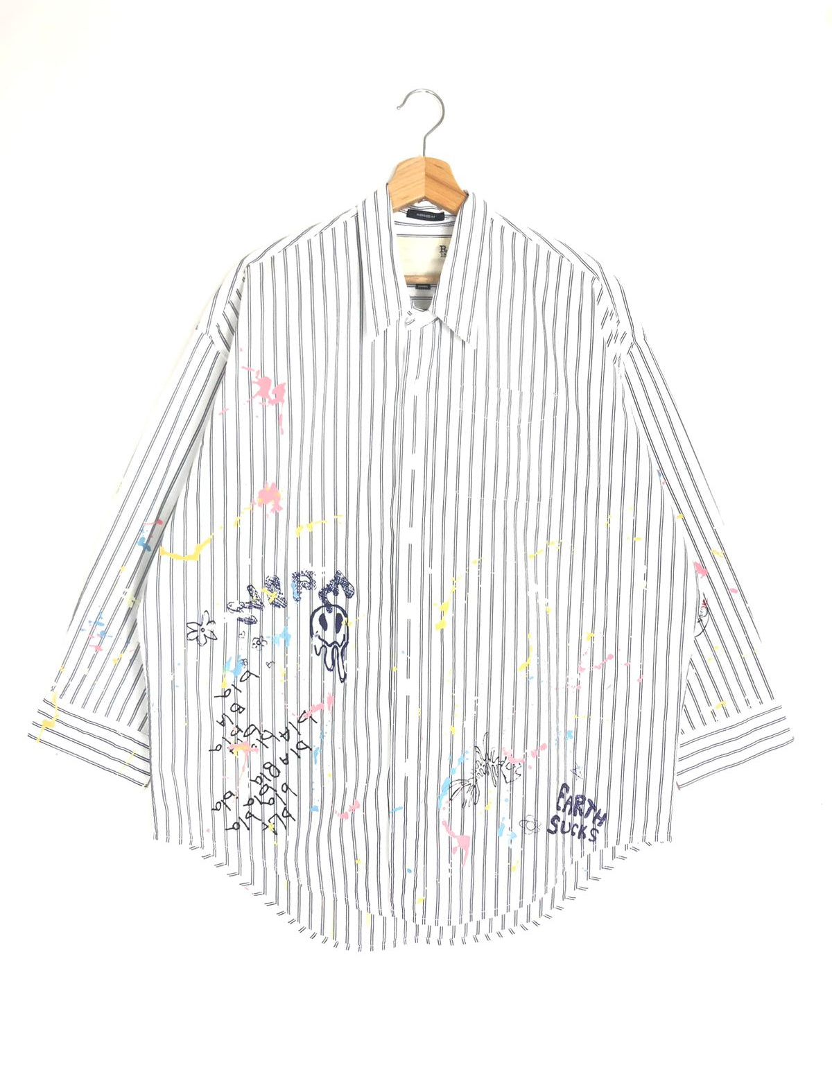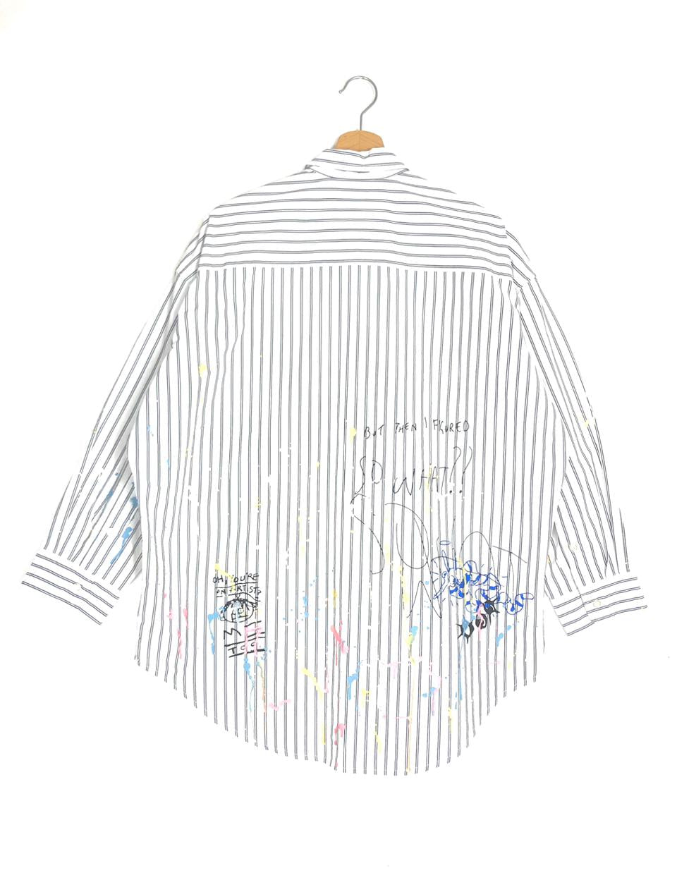 White Striped Paint Splatter Scribble Drop Neck Oversize Shirt / R13 - Size XS