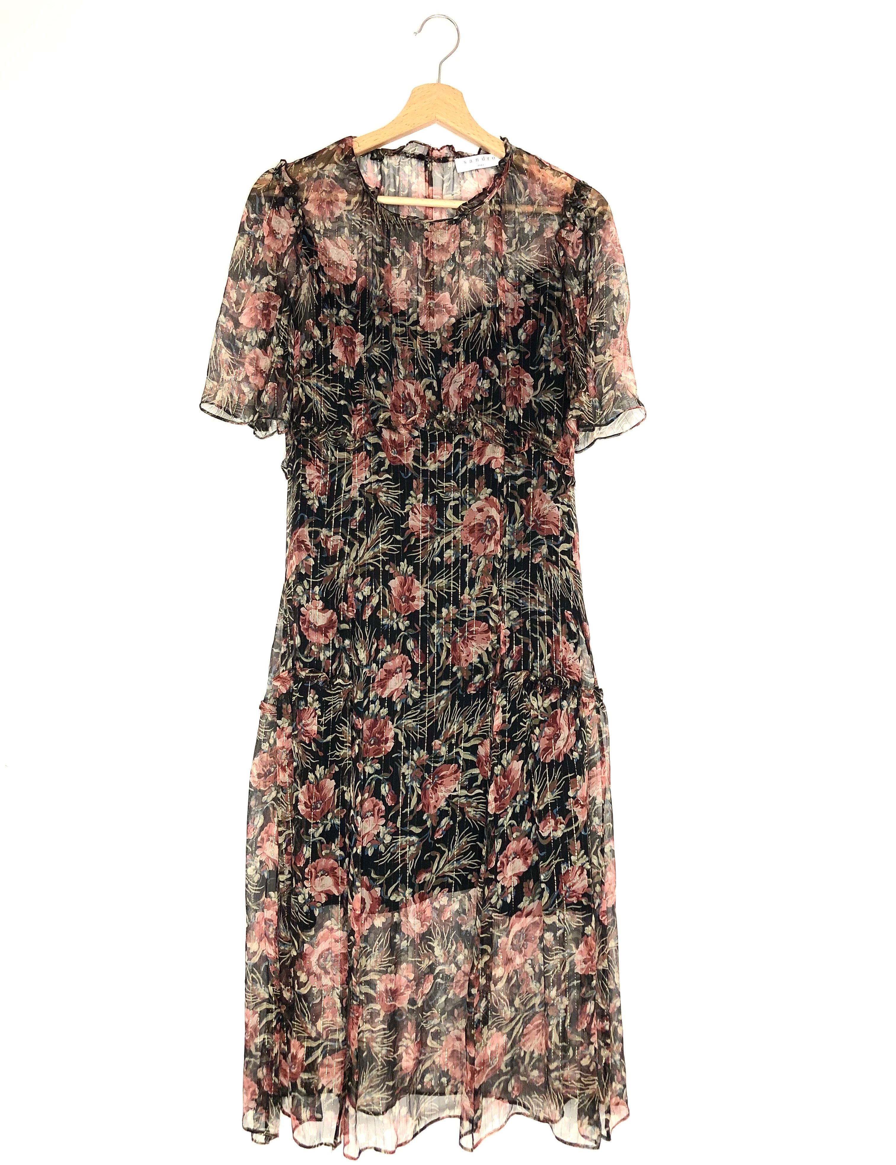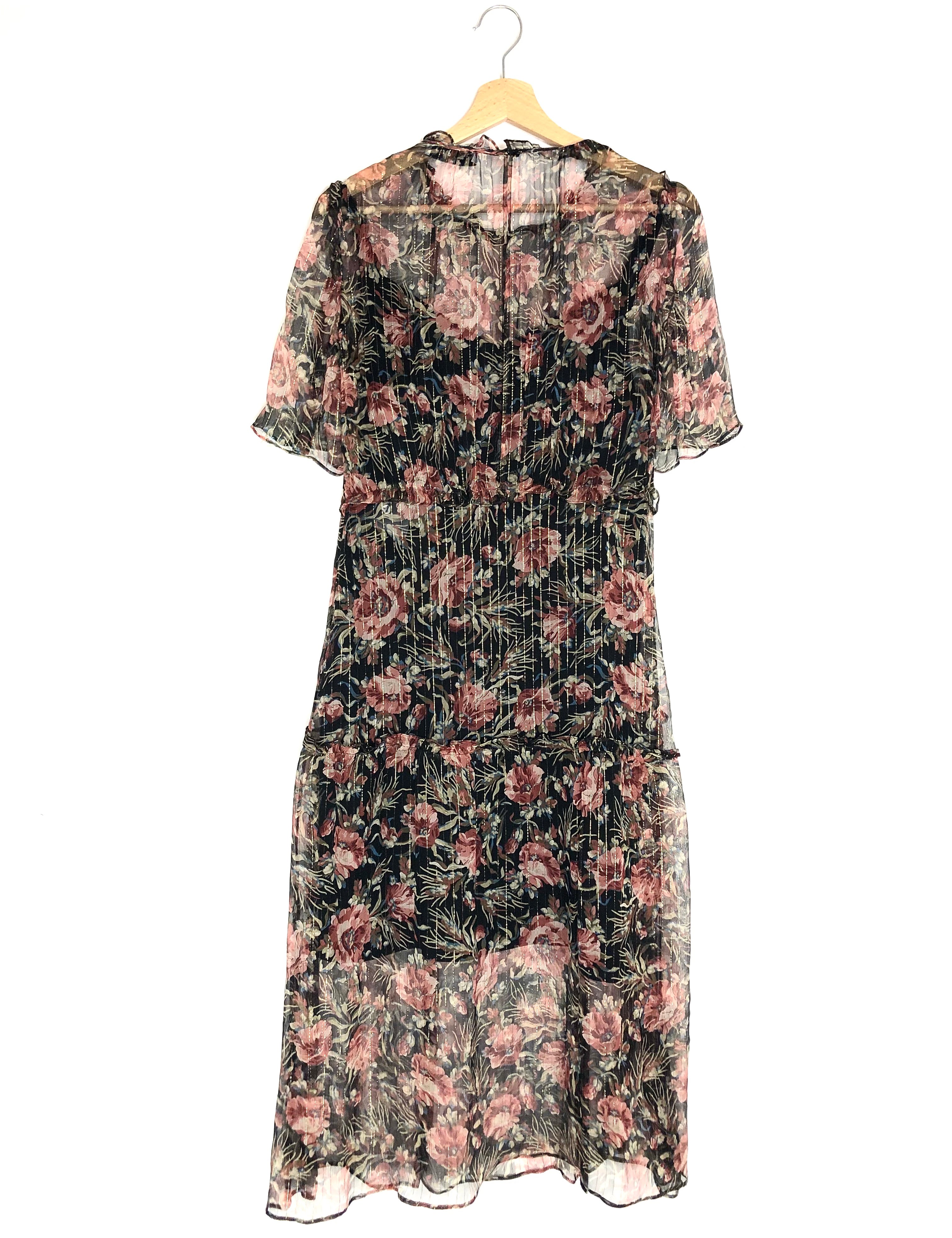 Black BIANCA Floral-print Midi Dress / SANDRO - Size 2