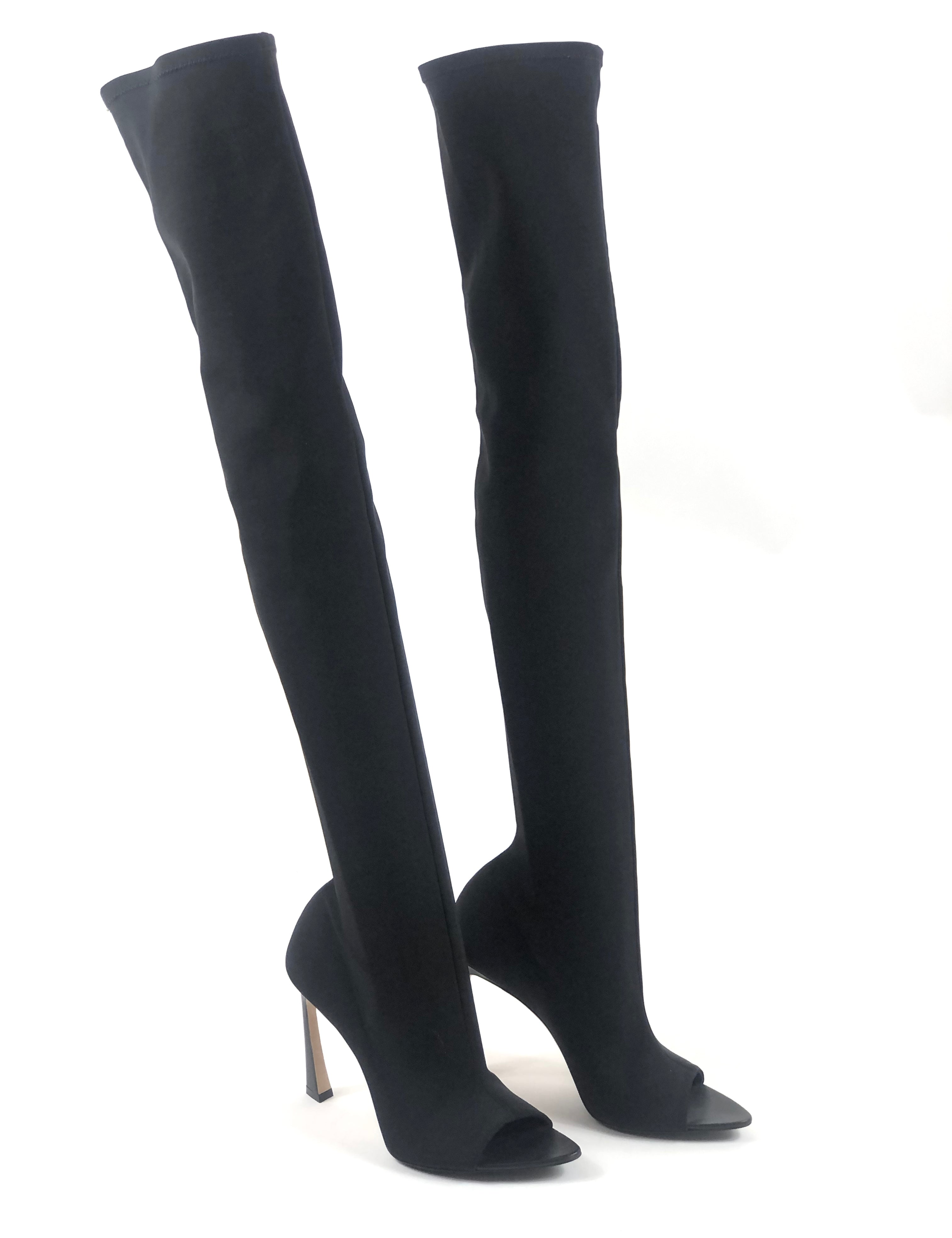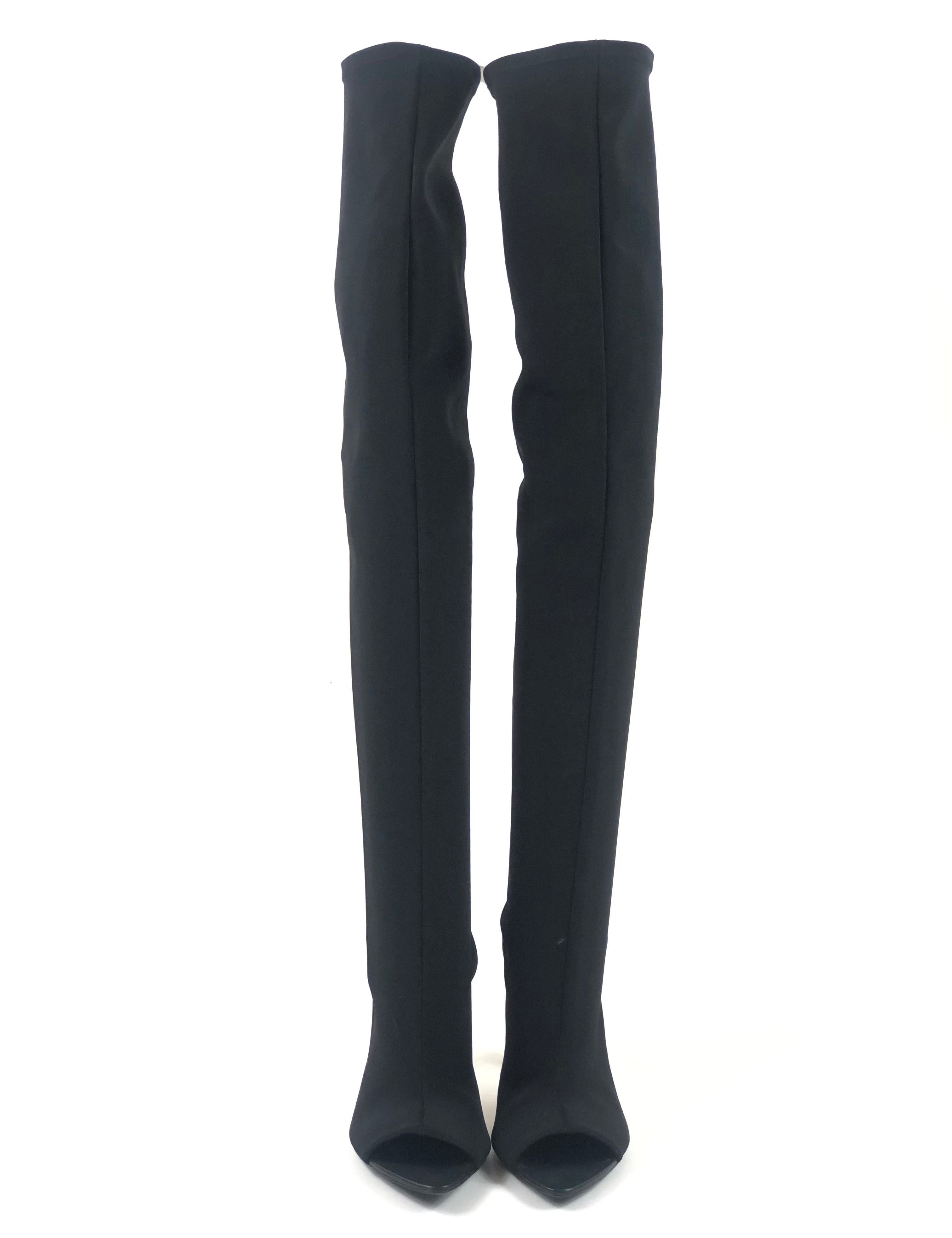 Black Jersey Peep-toe Over-the-knee Boots / VICTORIA BECKHAM - Size 39