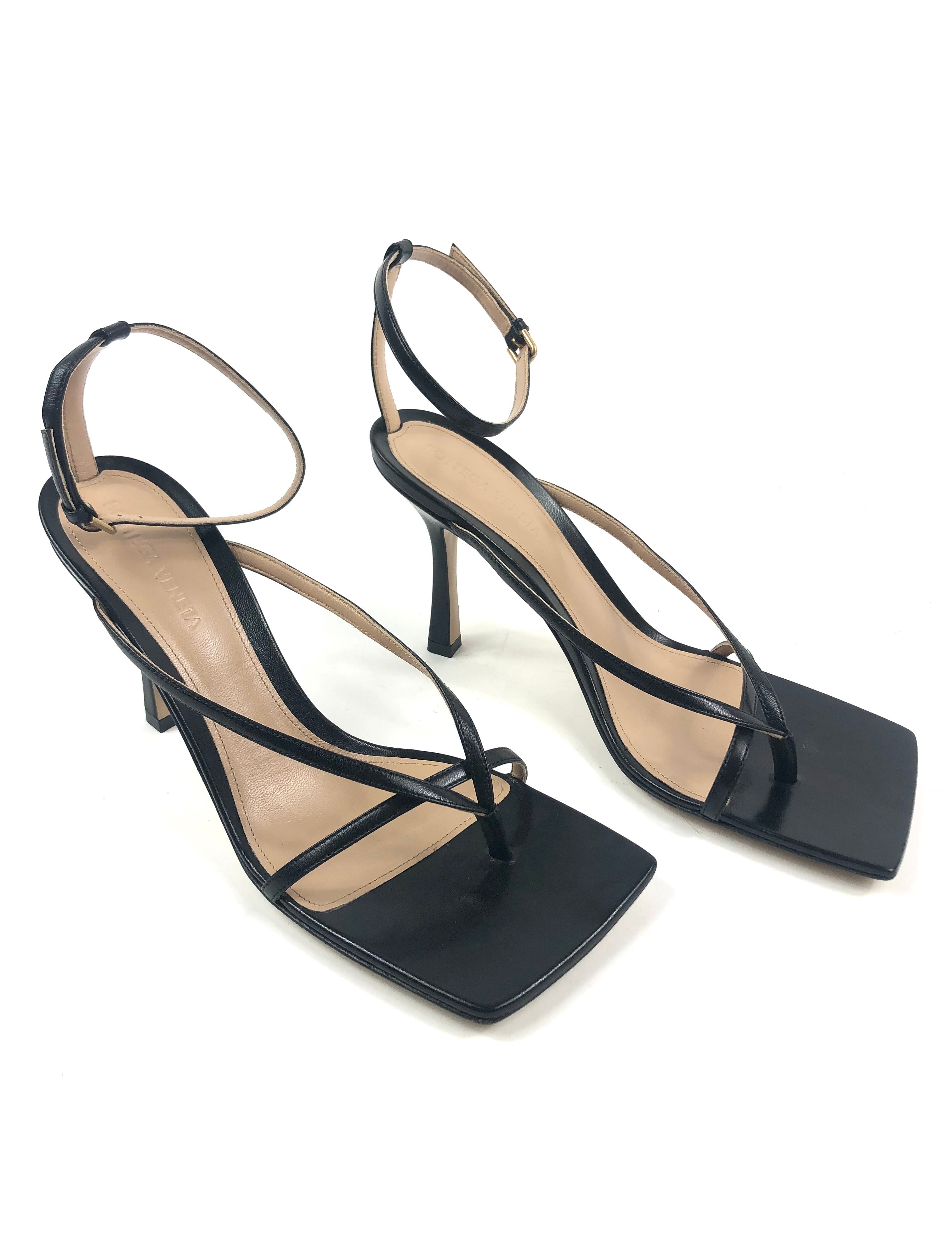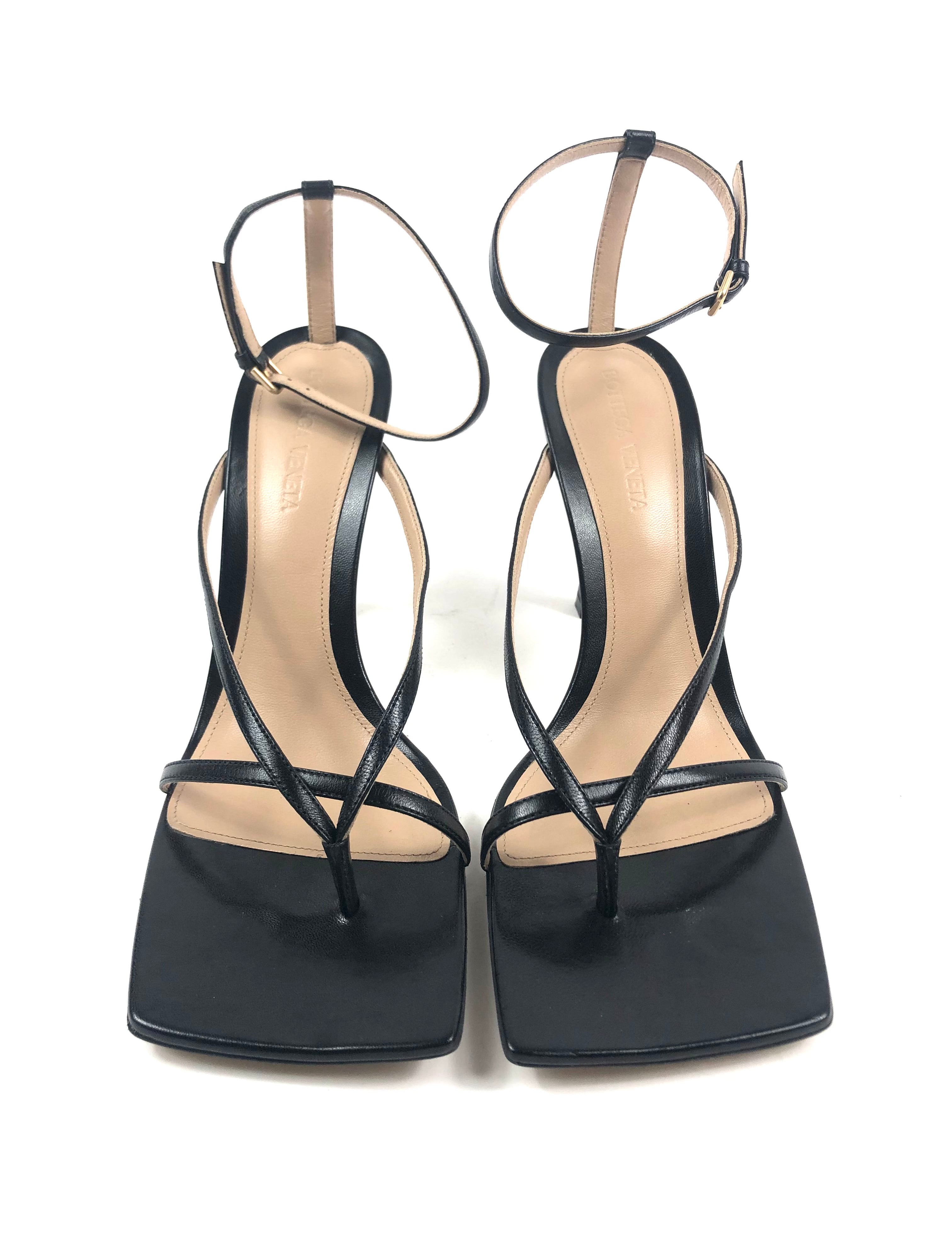 Black STRETCH Square Sole Leather Sandals / BOTTEGA VENETA - Size 39