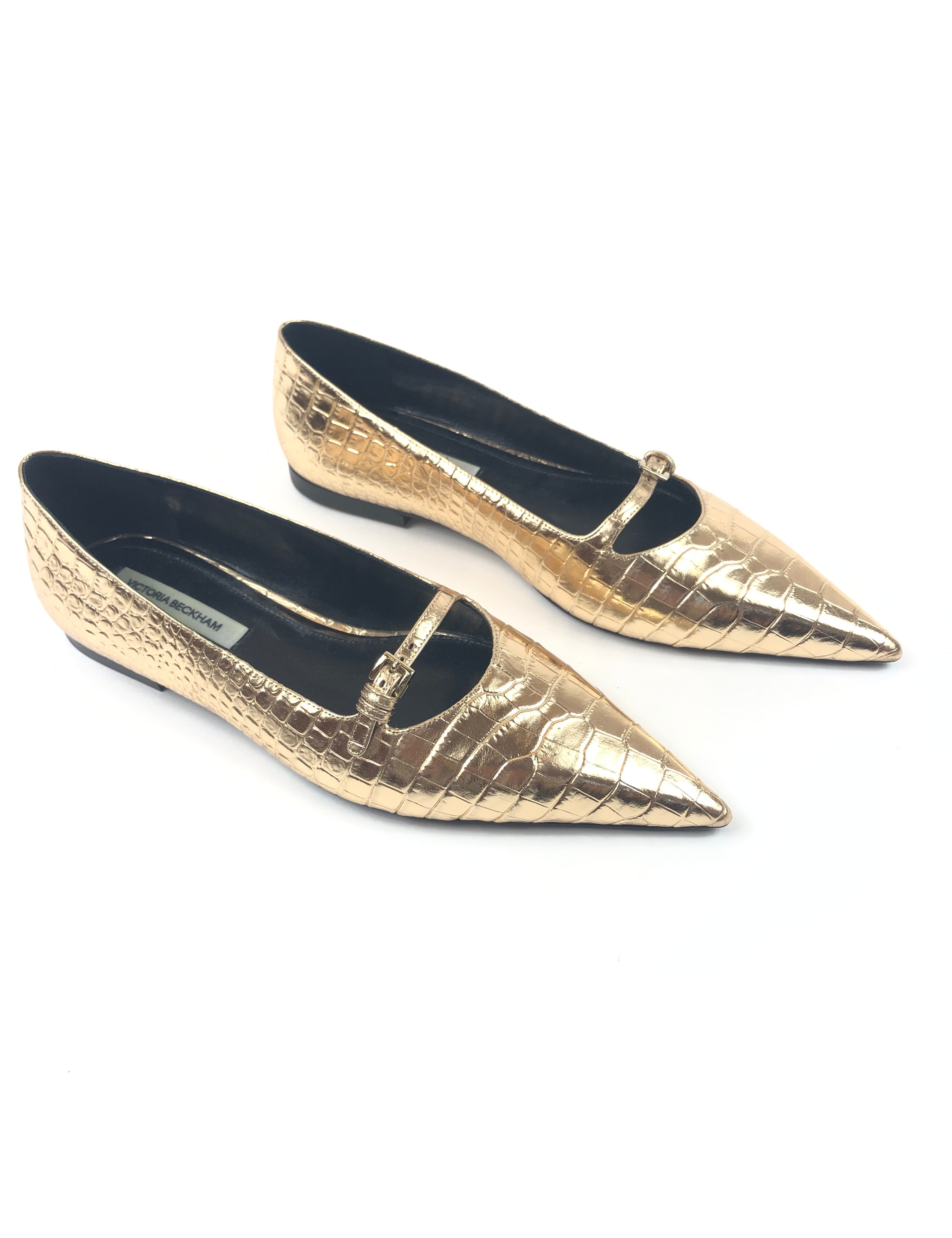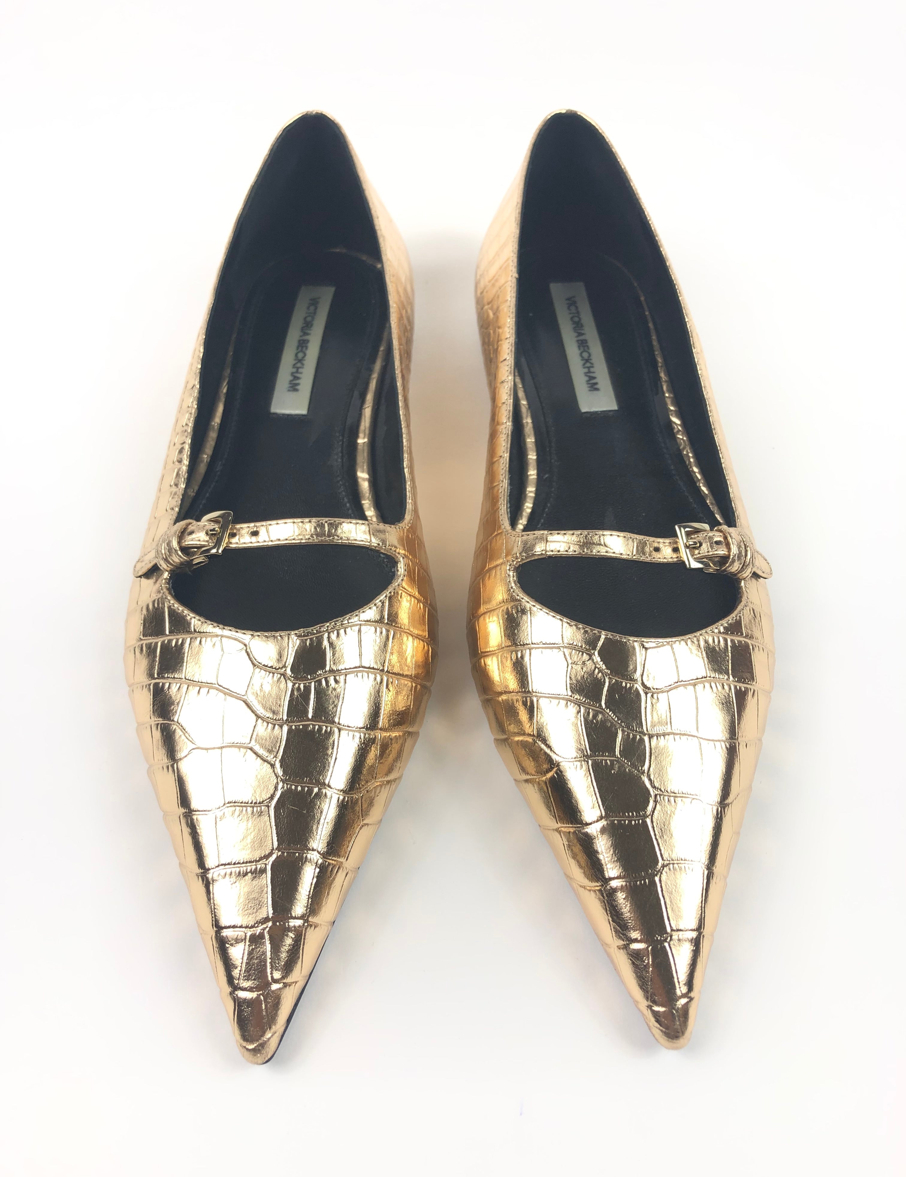 Metallic Gold Croc-effect Leather Ballet Flats / VICTORIA BECKHAM - Size 39