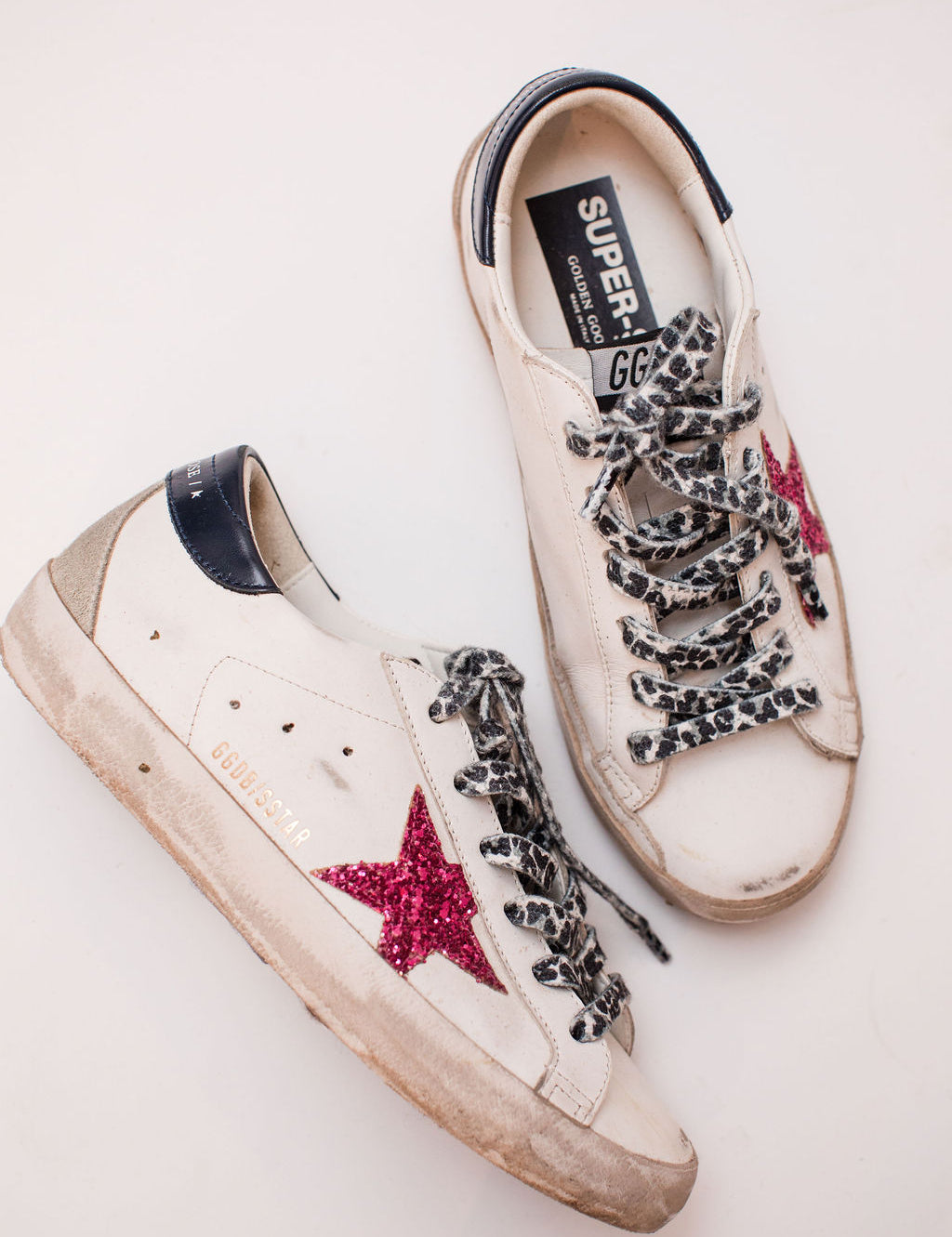 White SUPERSTAR Leather with Pink Glitters Star Low Top Sneakers / GOLDEN GOOSE - Size 37
